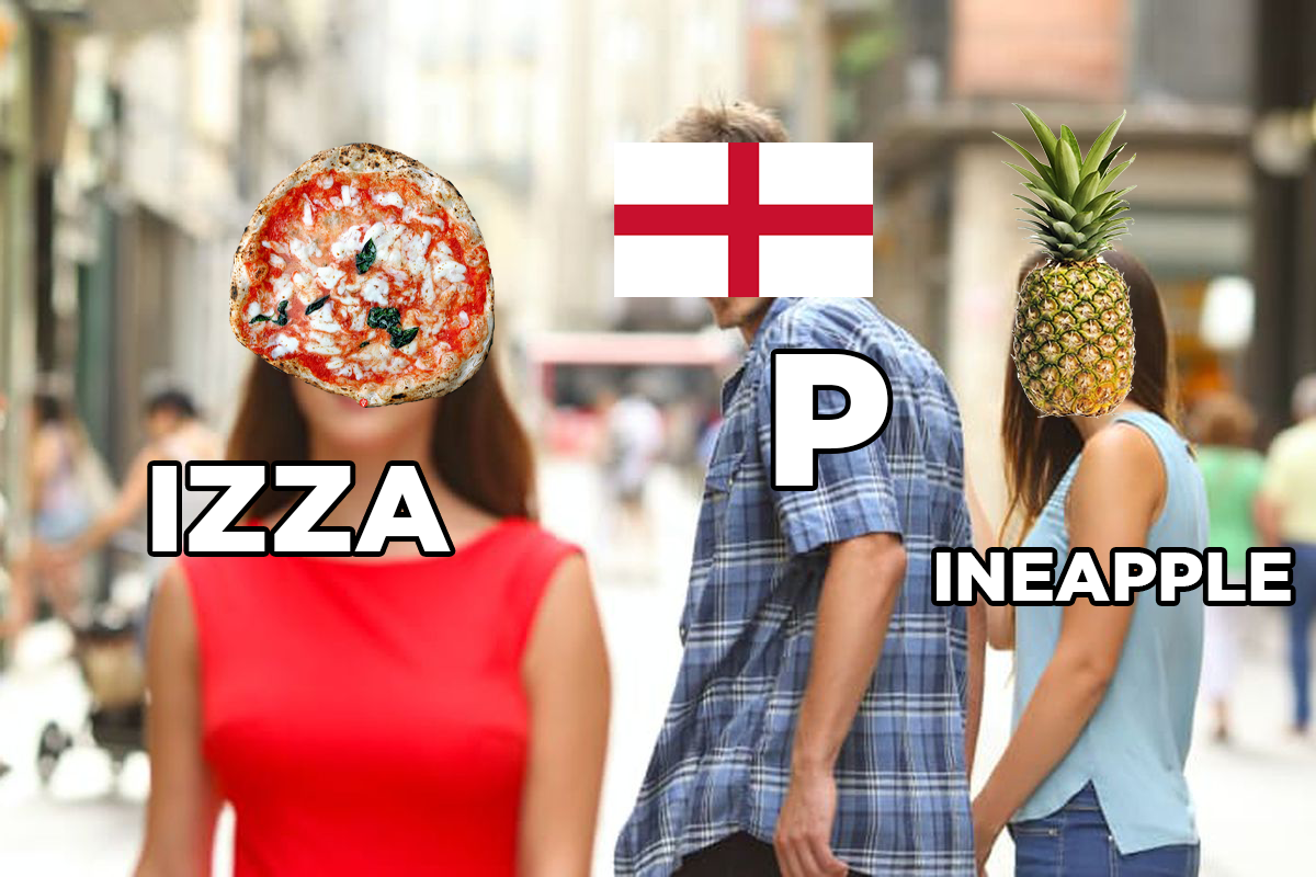 Un’altra presa in giro prende spunto da un momento preciso di Italia Inghilterra ovvero quando, verso la fine della partita, il Capitano Giorgio Chiellini ha interrotto bruscamente l’avanzata di un giocatore inglese, guadagnandosi così un cartellino giallo e gli applausi di una parte di stadio. Questa immagine però, come vedete, è stata interpretata diversamente: quasi come se il nostro difensore fermasse, appena in tempo, il contatto tra uno spicchio di ananas e una gustosa pizza margherita.