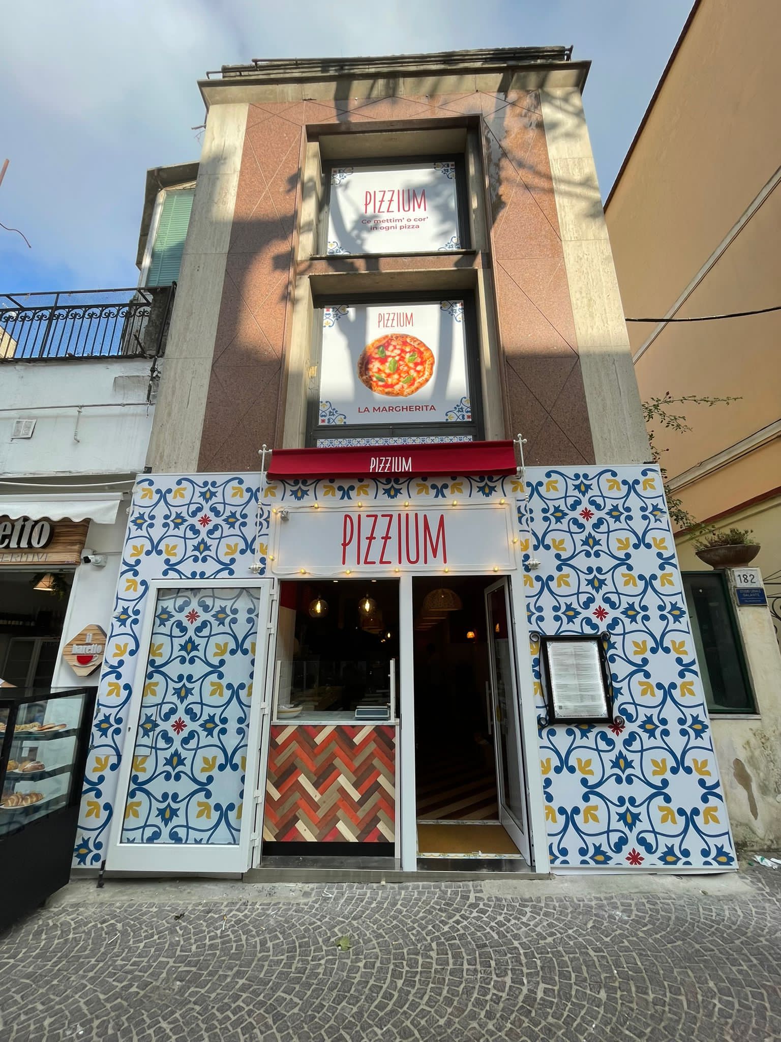 Partiti da Milano, dove attualmente sono ben 7 le pizzerie aperte, domani quindi aprirà la prima pizzeria a Napoli, situata in via Luca Giordano 182, quartiere Vomero. A un giorno dall’apertura siamo felici di mostrarvi le foto del locale, partendo dall’insegna esterna con tanto di tavoli già pronti e arrivando fino alle sale interne, arredate in pieno stile Pizzium ovvero celebrativo verso i gusti e i sapori di tutte le regioni d’Italia.