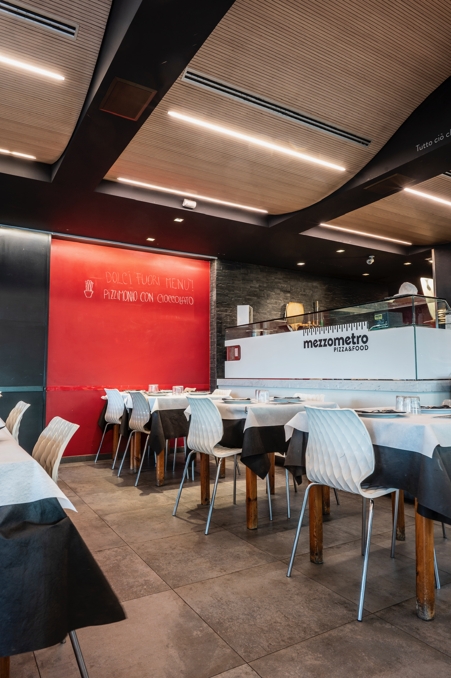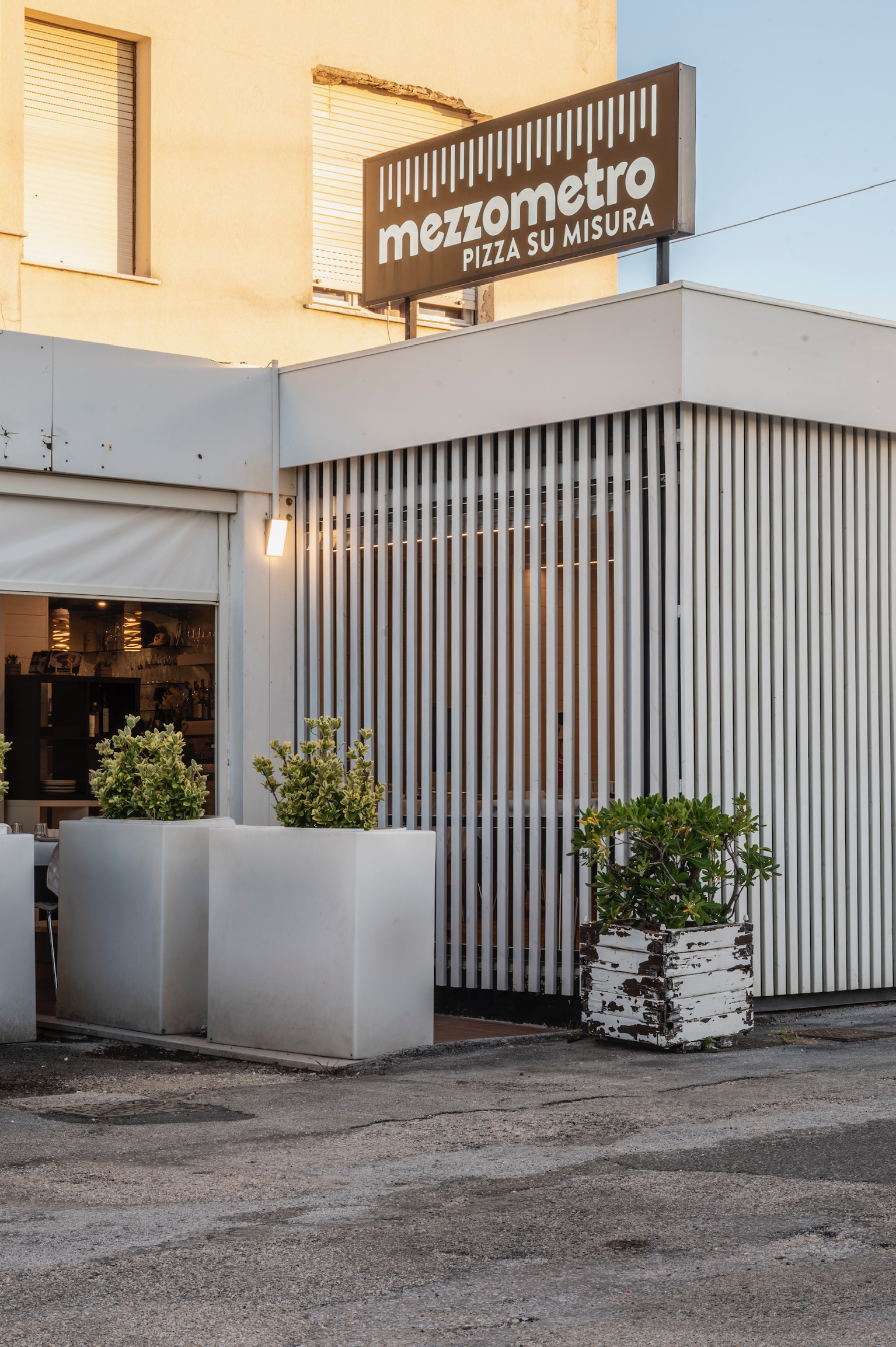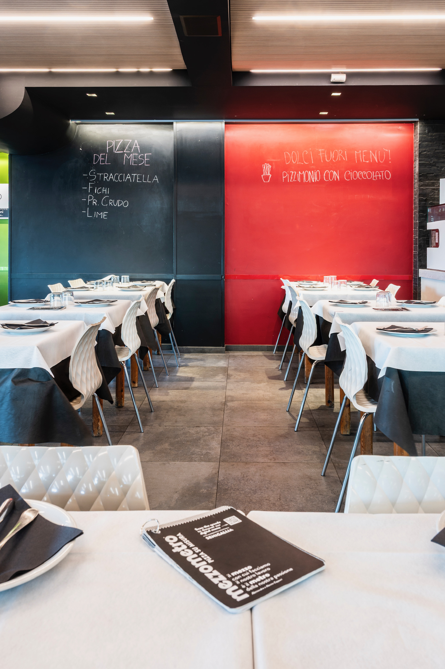 Mezzometro si trova sul lunghissimo lungomare Da Vinci, a Senigallia. Il locale presenta grandi pareti utilizzate come gigantesche lavagne con lo scopo di raccontare la novità del giorno, gli impasti e la filosofia di vita. Gli spazi si prestano sia per grande tavolate che per cene intime con coperti sia all’interno che all’esterno.