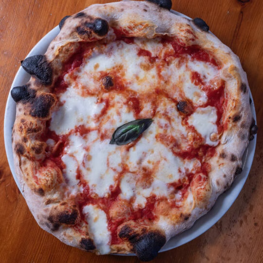 Alessandro Coppari, titolare e maestro pizzaiolo, ha creato, oltre all’impasto classico, un impasto specifico per celiaci e intolleranti alle farine raffinate. La proposta in menu prevede la possibilità di scelta del formato della pizza: la Mezzometro (da condividere, 2 persone e due gusti), 1 Metro (da condividere 4persone e 4 gusti), e la Pizza Tonda (pizza personale, unico gusto). Per quanto riguarda i topping invece, sono presenti abbinamenti classici in versione rivisitata come nel caso della Perchè Margherita è Vera fatta con filetti di pomodoro San Marzano DOP, mozzarella di bufala, Parmigiano Reggiano DOP e basilico; e una selezione di pizze realizzate con prodotti Marchigiani tra cui spiccano La Pecora Rosa fatta con mozzarella fiordilatte, pecorino dei Monti Sibillini, fave di Fratterosa, finocchietto e pancetta, la Carborapa fatta con mozzarella fiordilatte, pecorino dei Monti Sibillini, crema alla carbonara, cime di rapa, bacon croccante, casecc e pepe, e la Suasantità fatta con pomodoro San Marzano DOP, mozzarella fiordilatte, Pecorino dei Monti Sibillini, Pecorino Romano DOP, pancetta affumicata e cipolla rossa.