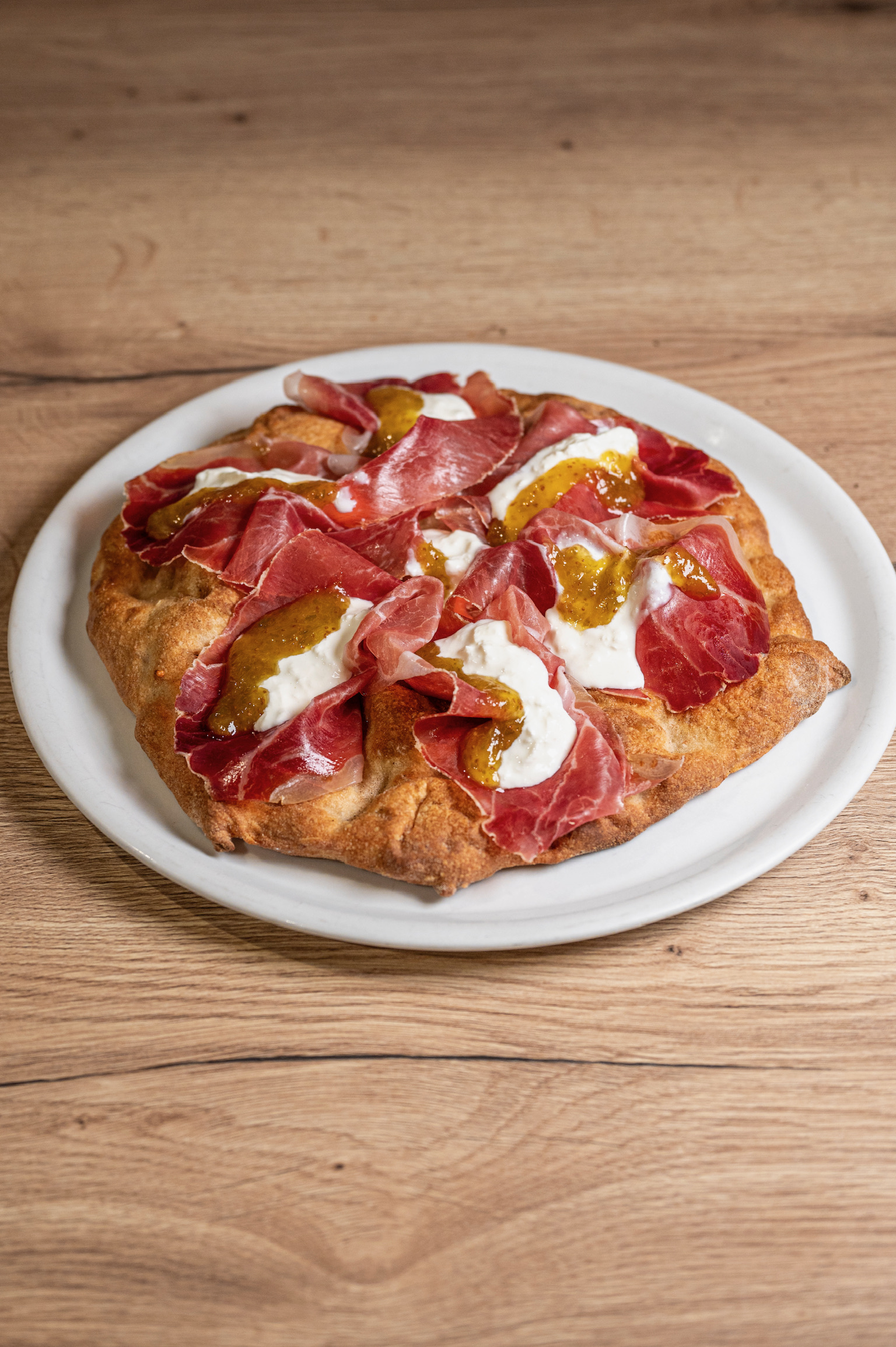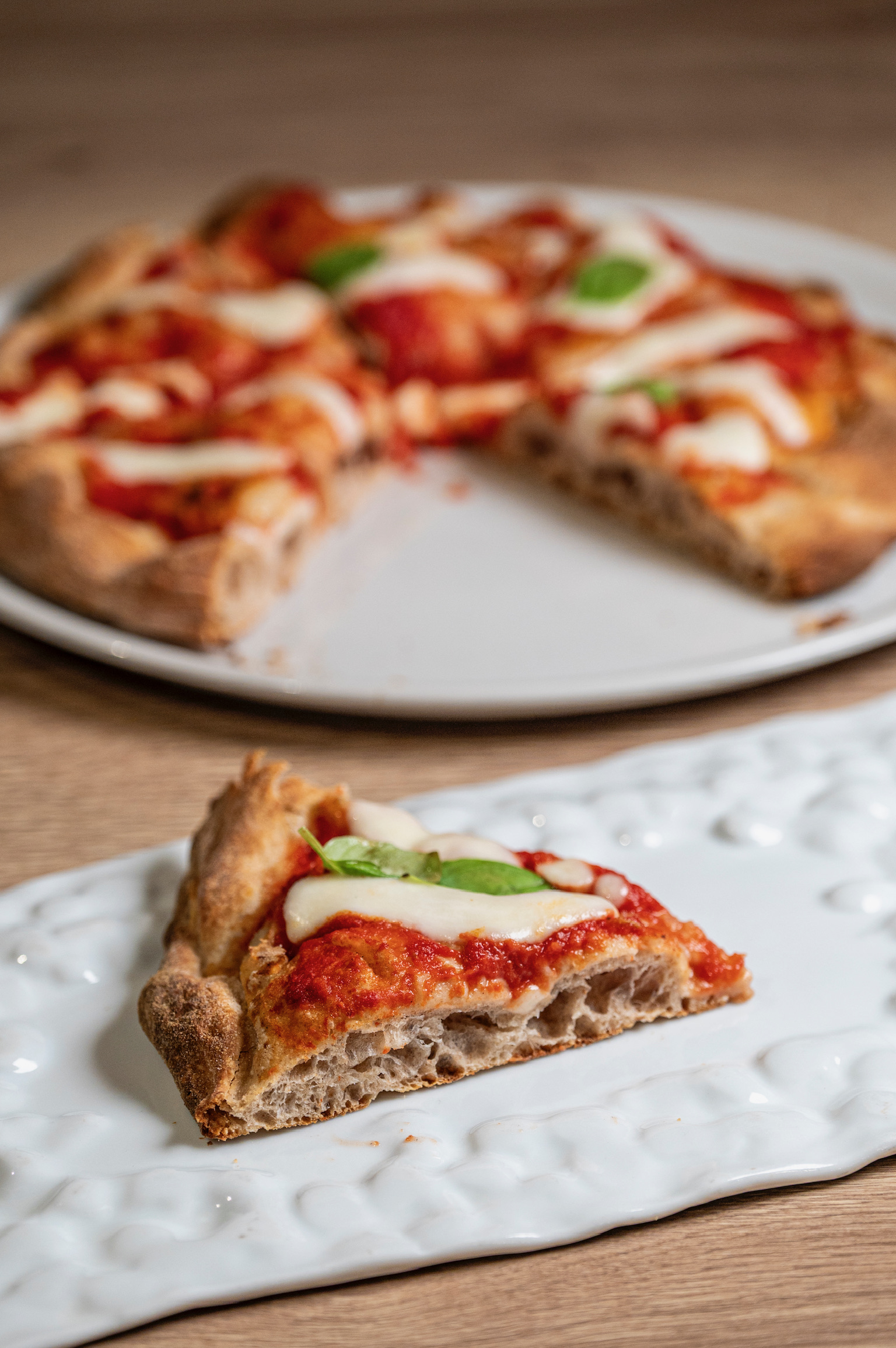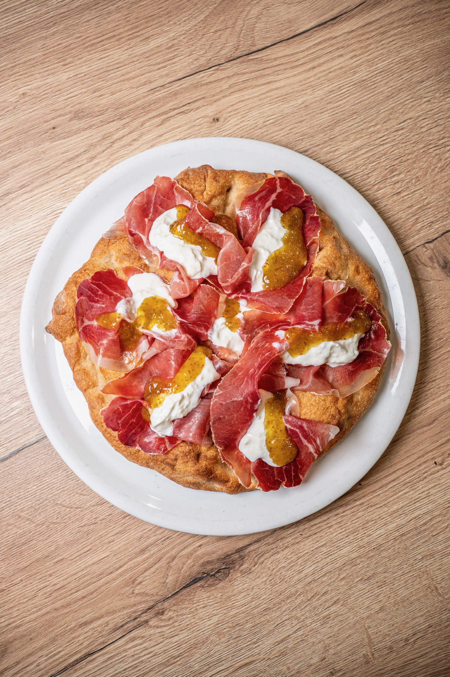 Ogni pizza, realizzata utilizzando ingredienti freschi e di stagione del territorio Marchigiano, nasce da un’impasto chiamato da Mirko ‘Gran’Aria’ che dona una pizza leggera e croccante. Tratto distintivo è l’alta idratazione e il lievito madre naturale, seguito dal procedimento che avviene con tre fasi di prefermento, ognuna realizzata con un diverso tipo di farina. Per quanto riguarda la proposta in menu è varia e prevede sia pizze classiche che gourmet; tra queste ultime spiccano la Scaletta fatta con fiordilatte, salsa tartufata, salsiccia e funghi porcini; e la Che Fico Che Sono fatta con prosciutto crudo stagionato 19 mesi, stracciatella di burrata, marmellata di fichi e germogli.