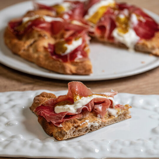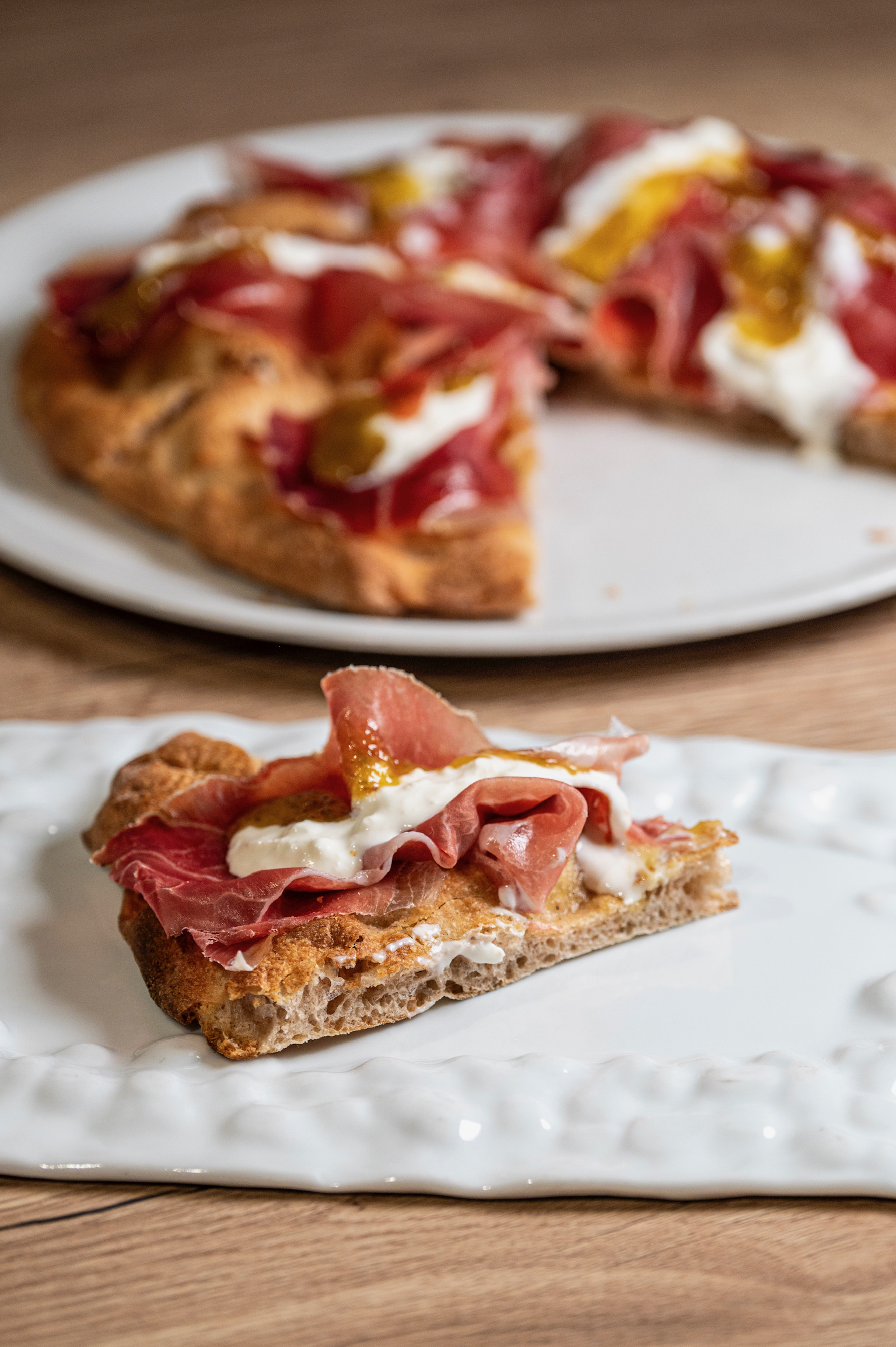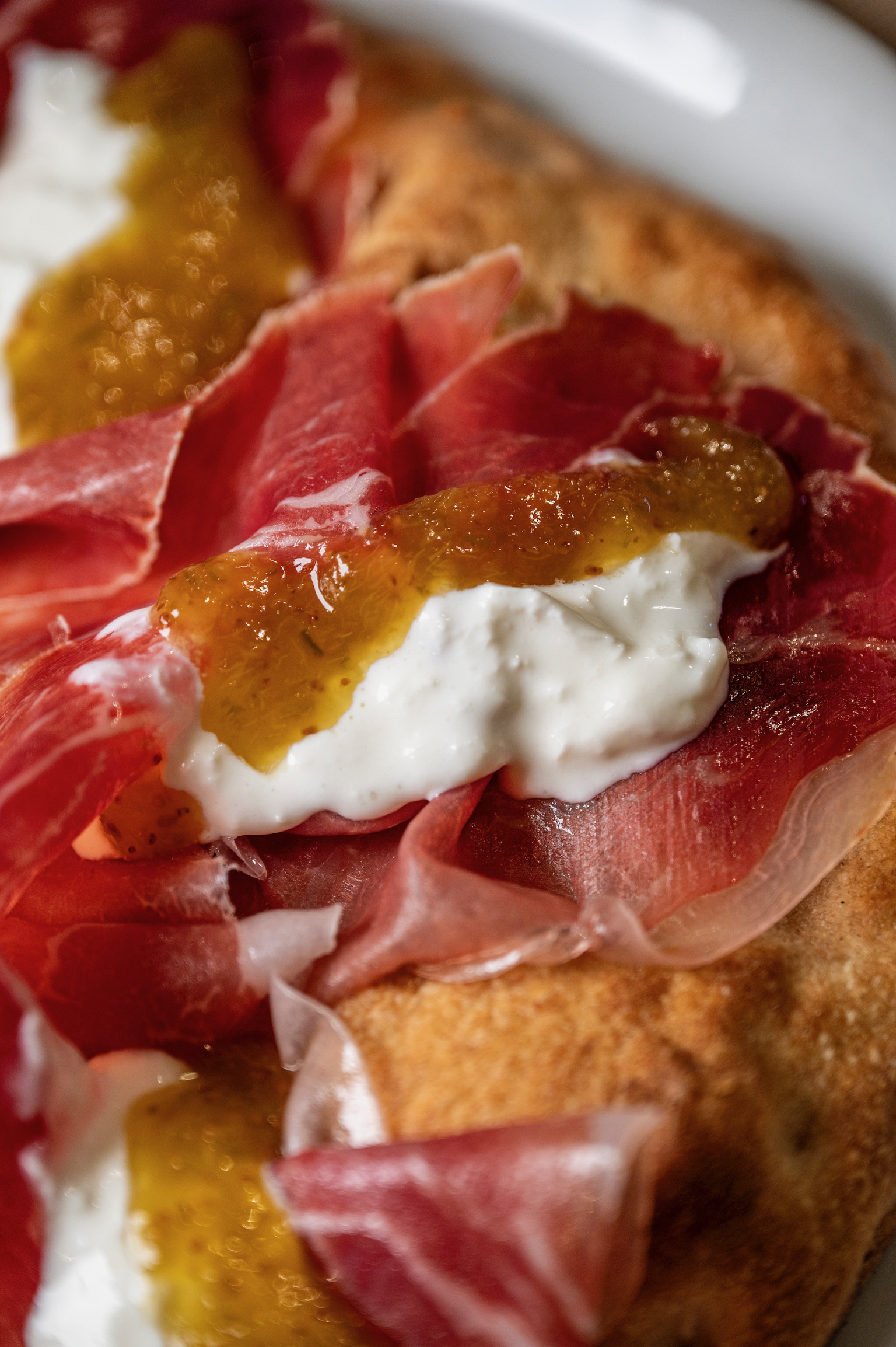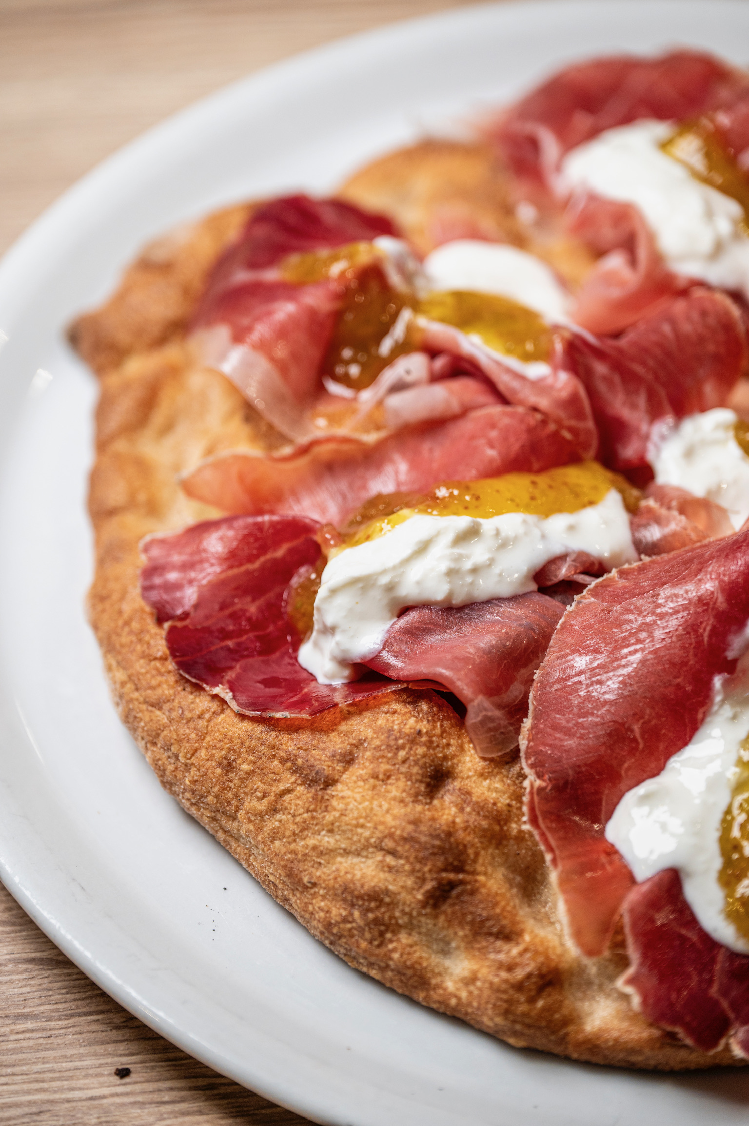 Ogni pizza, realizzata utilizzando ingredienti freschi e di stagione del territorio Marchigiano, nasce da un’impasto chiamato da Mirko ‘Gran’Aria’ che dona una pizza leggera e croccante. Tratto distintivo è l’alta idratazione e il lievito madre naturale, seguito dal procedimento che avviene con tre fasi di prefermento, ognuna realizzata con un diverso tipo di farina. Per quanto riguarda la proposta in menu è varia e prevede sia pizze classiche che gourmet; tra queste ultime spiccano la Scaletta fatta con fiordilatte, salsa tartufata, salsiccia e funghi porcini; e la Che Fico Che Sono fatta con prosciutto crudo stagionato 19 mesi, stracciatella di burrata, marmellata di fichi e germogli.