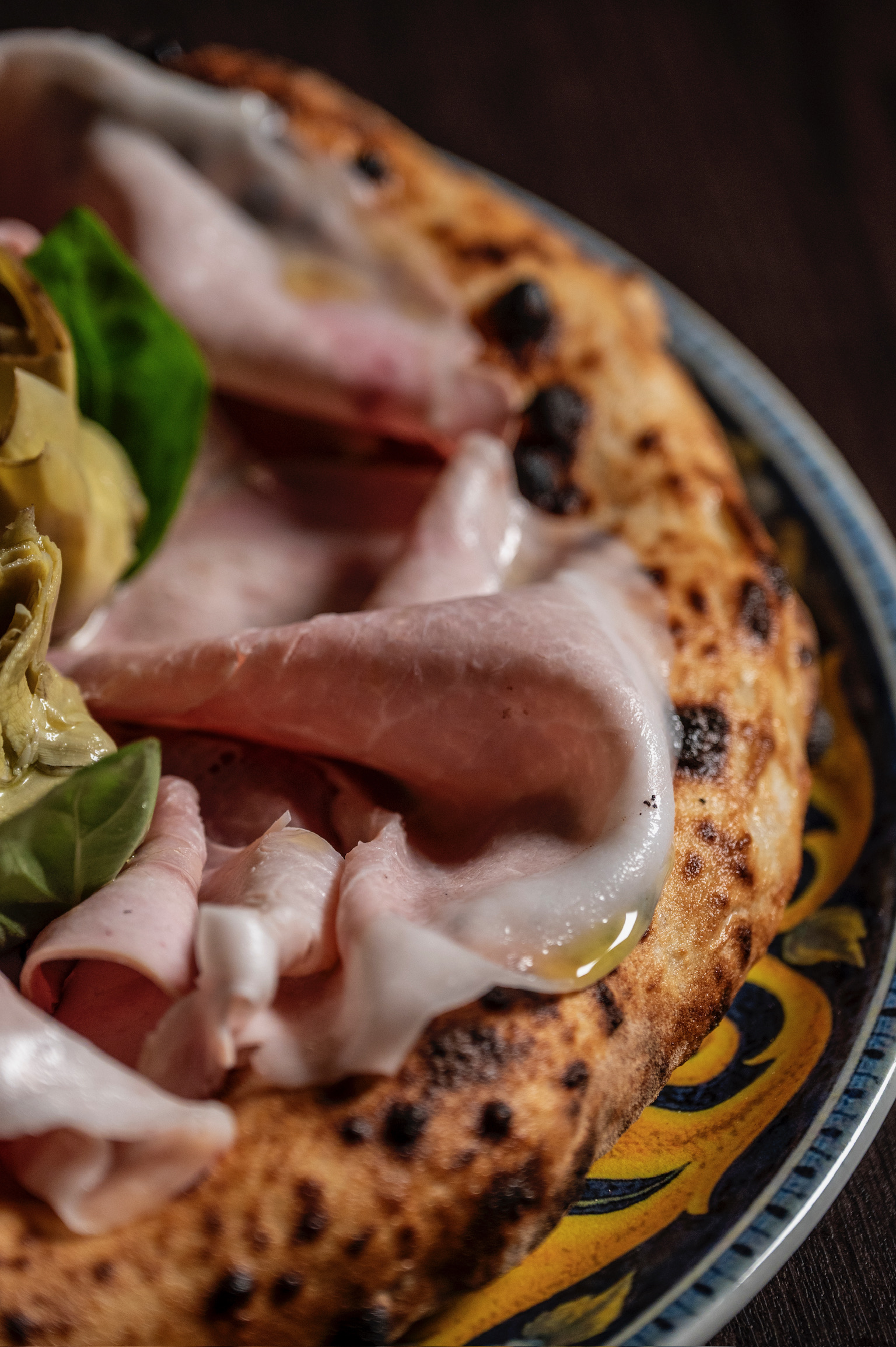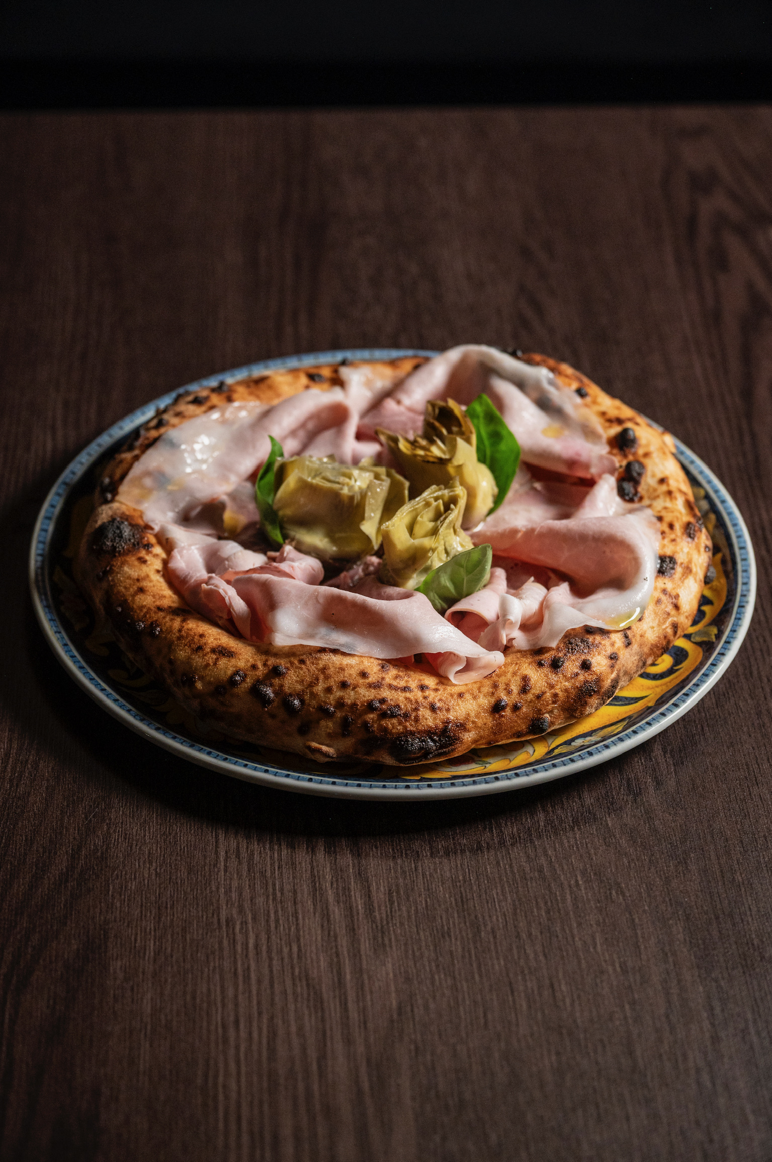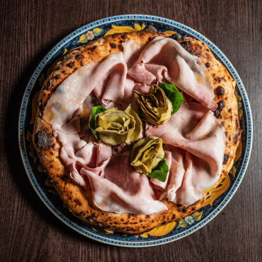 Il menu è suddiviso in antipasti, pizze bianche, e rosse caratterizzate dall’utilizzo di prodotti tipici del territorio. La pizza proposta è la napoletana contemporanea con impasto leggero e cornicione notevole; tra le pizze classiche c’è l’immancabile Margherita fatta con pomodoro, fiordilatte, olio evo e basilico, seguita da pizze con abbinamenti più ricercati. Tra le pizze classiche rivisitate spicca la Capricciosa in versione bianca, fatta con con fiordilatte, funghi champignon freschi, olive taggiasche, e in uscita culatta, arrosto di suino, carciofo arrosto con gambo di Montelupone e basilico fresco.