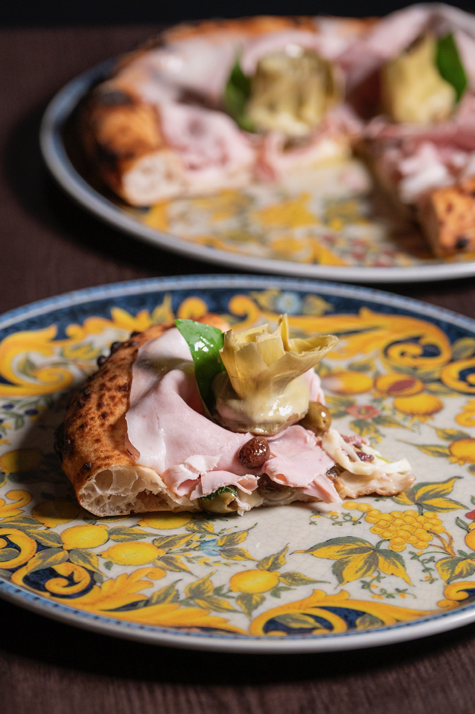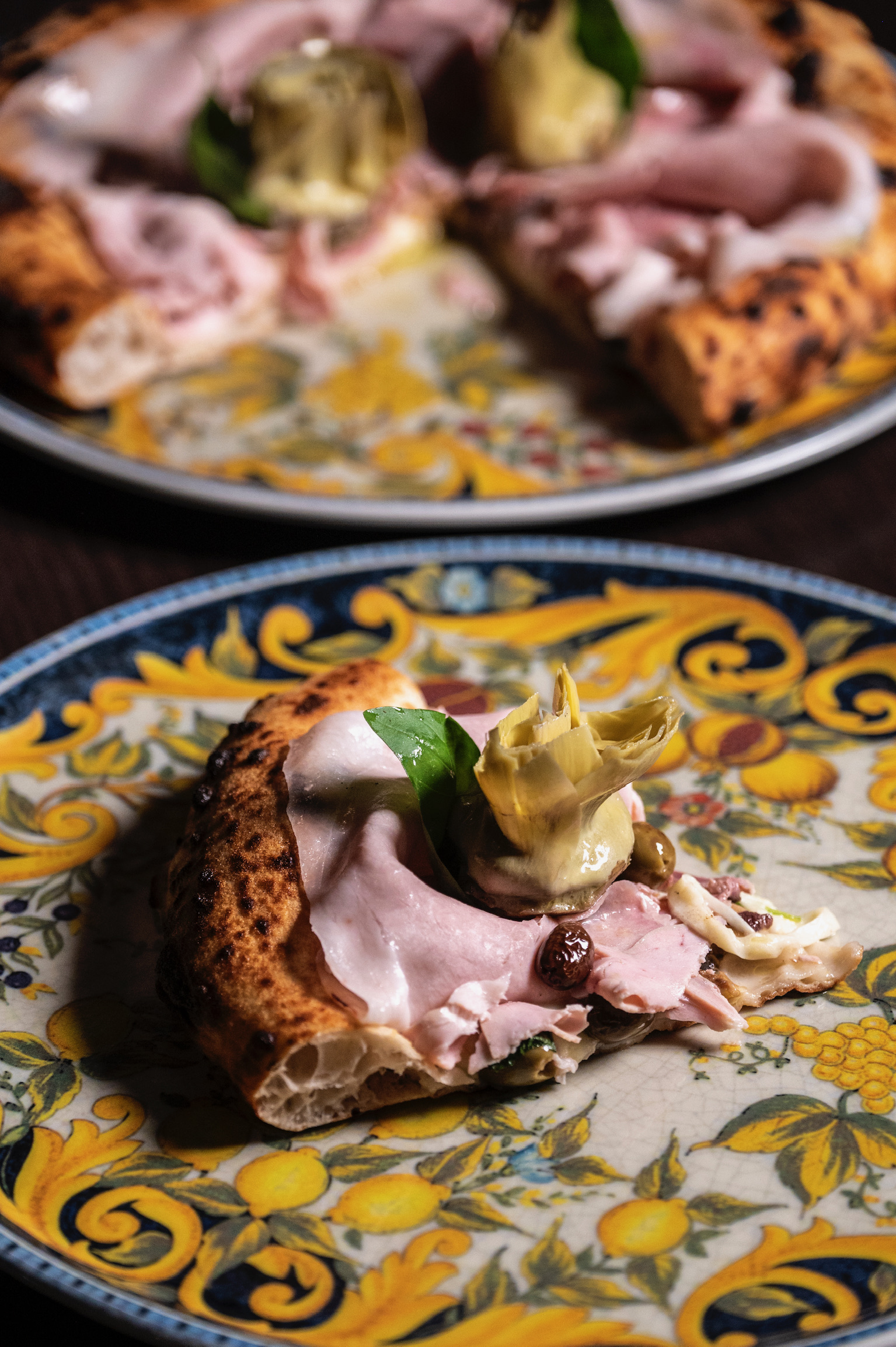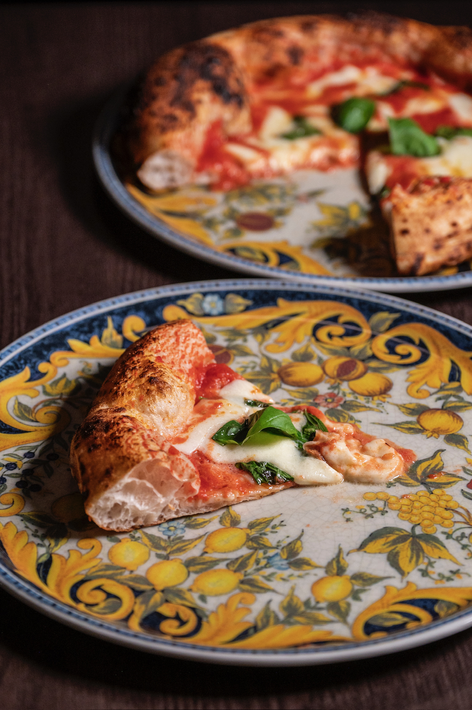 Il menu è suddiviso in antipasti, pizze bianche, e rosse caratterizzate dall’utilizzo di prodotti tipici del territorio. La pizza proposta è la napoletana contemporanea con impasto leggero e cornicione notevole; tra le pizze classiche c’è l’immancabile Margherita fatta con pomodoro, fiordilatte, olio evo e basilico, seguita da pizze con abbinamenti più ricercati. Tra le pizze classiche rivisitate spicca la Capricciosa in versione bianca, fatta con con fiordilatte, funghi champignon freschi, olive taggiasche, e in uscita culatta, arrosto di suino, carciofo arrosto con gambo di Montelupone e basilico fresco.