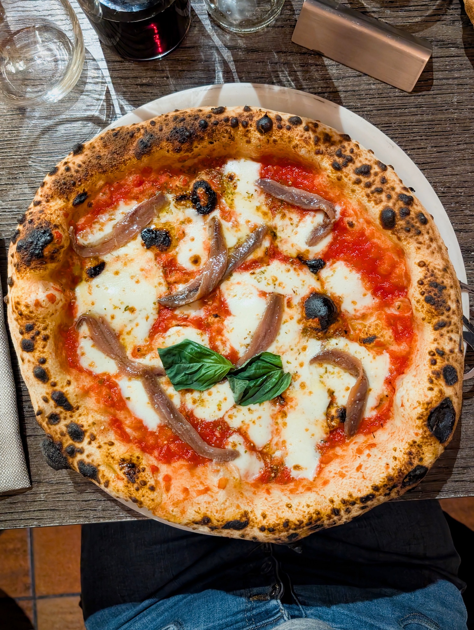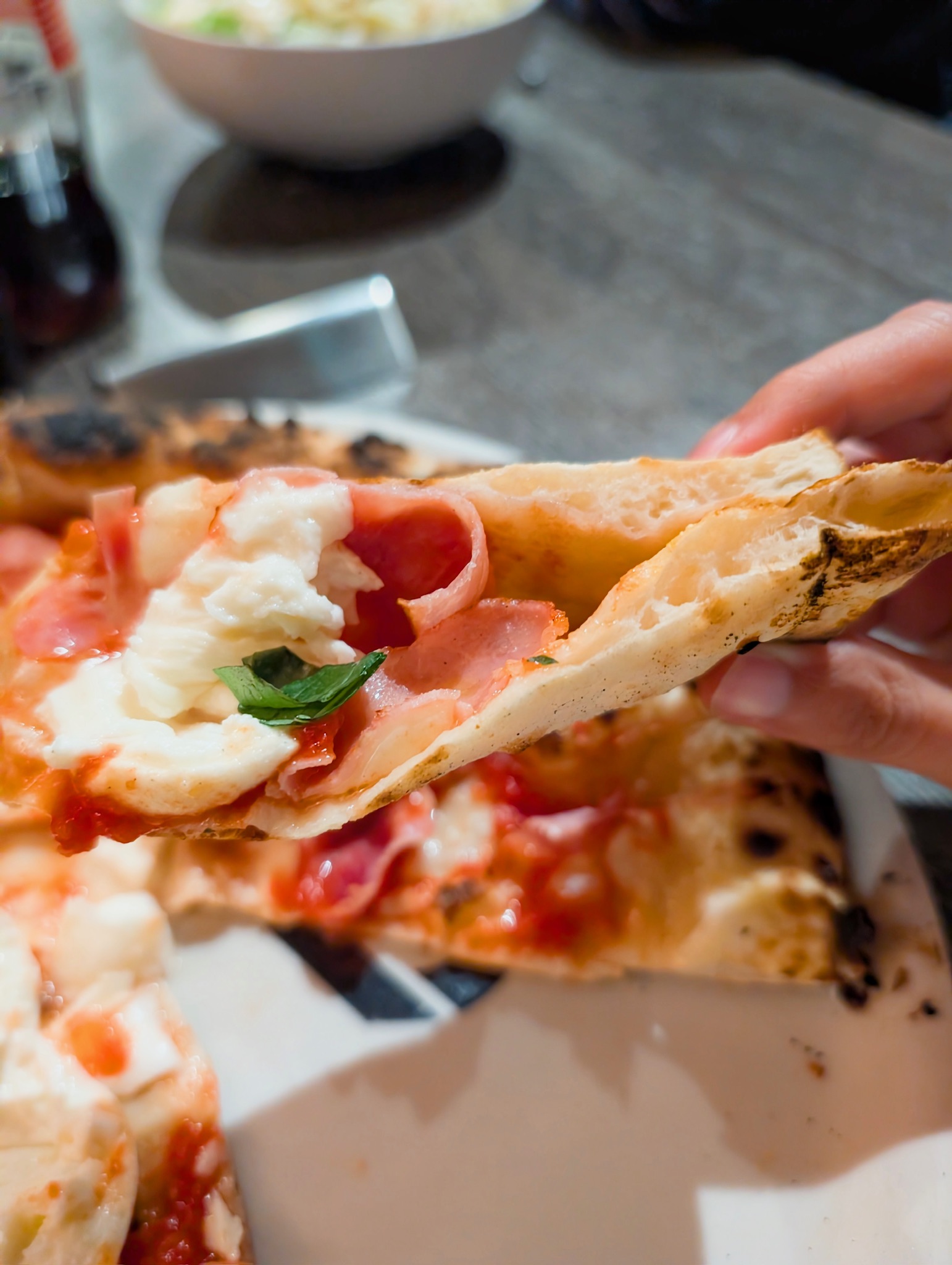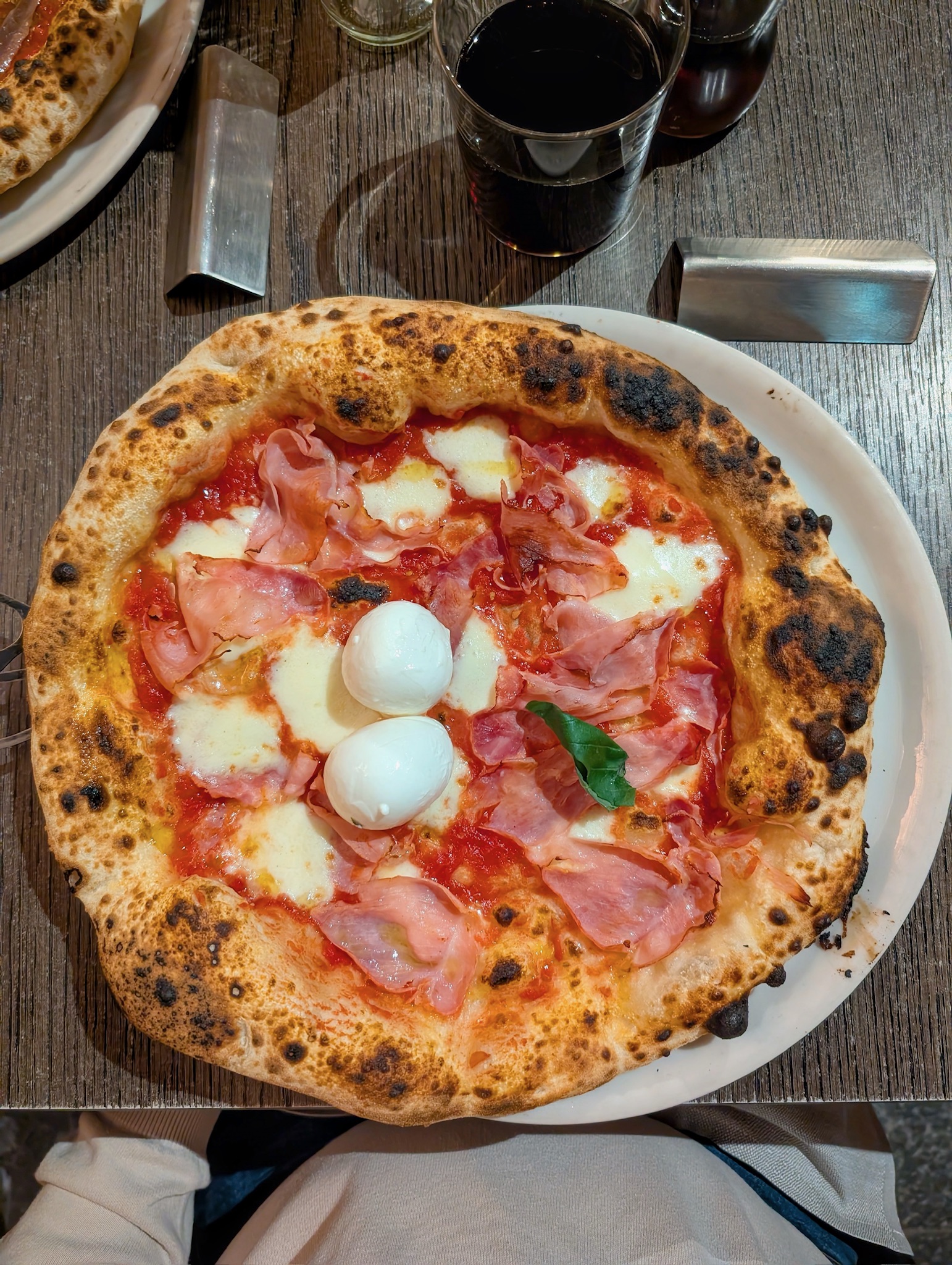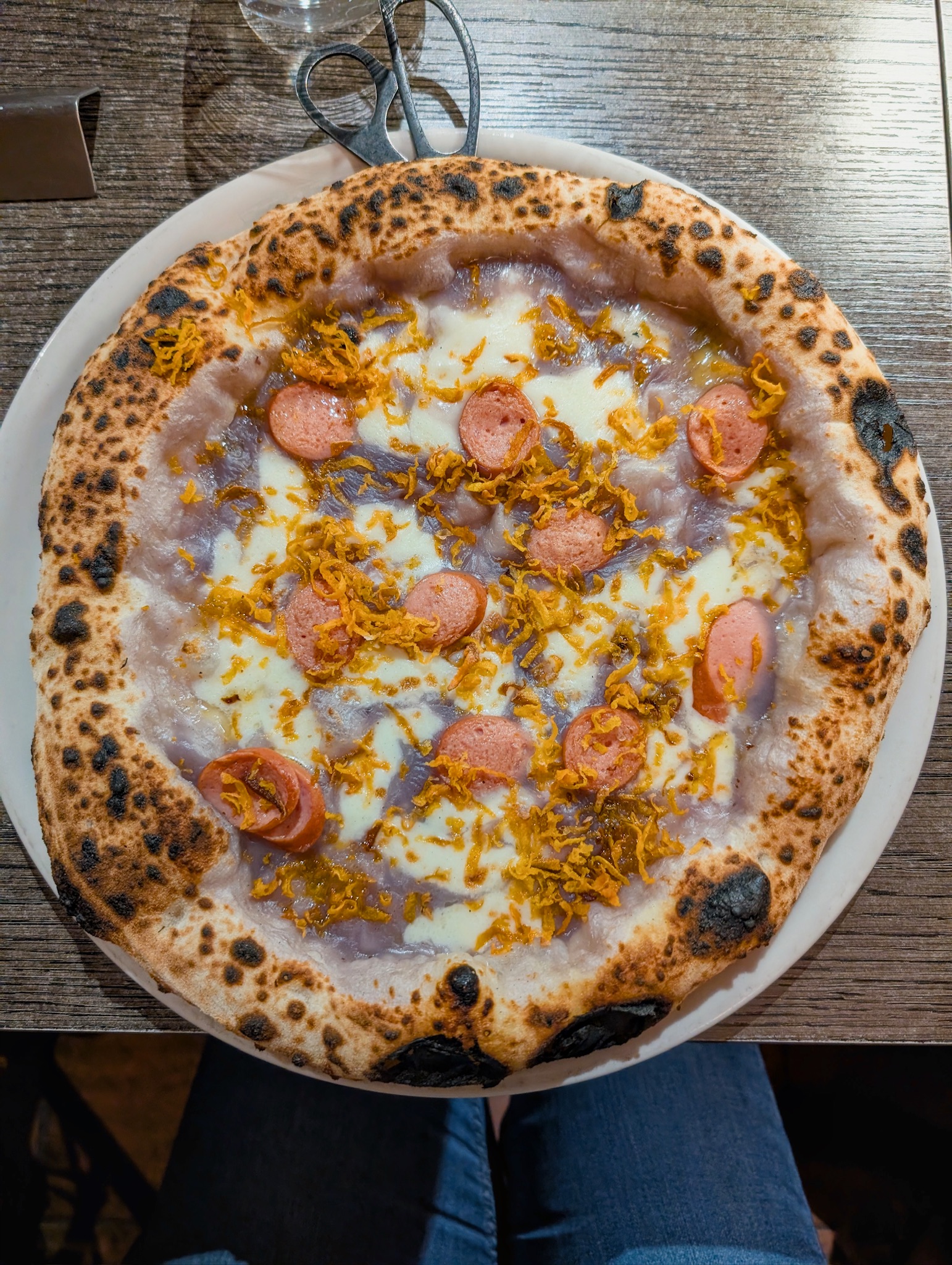 La proposta comprende antipasti, primi, secondi di carne, una selezione di pizze classiche con abbinamenti tradizionali, una serie di pizze con gusti più ricercati, e alcune pizze stagionali. Tra le pizze classiche non manca la Bufala fatta con pelati passati a mano, fiordilatte, mozzarella di bufala campana in uscita, basilico fresco e olio evo; seguita dalla Napoli fatta con pelati passati a mano, fiordilatte, origano, alici di sicilia, basilico fresco e olio evo. Tra le pizze con abbinamenti più particolari spicca la Belzebù fatta con passata di pomodori arrosto, spezie e salsa worchestershire, fiordilatte, chorizo iberico, crema di ricotta e ‘nduja, fili di peperoncino e olio piccante; mentre tra le stagionali, degna di nota è la Radicchio e Pere, con base di fiordilatte, radicchio, pere glassate, gorgonzola e glassa di aceto balsamico.