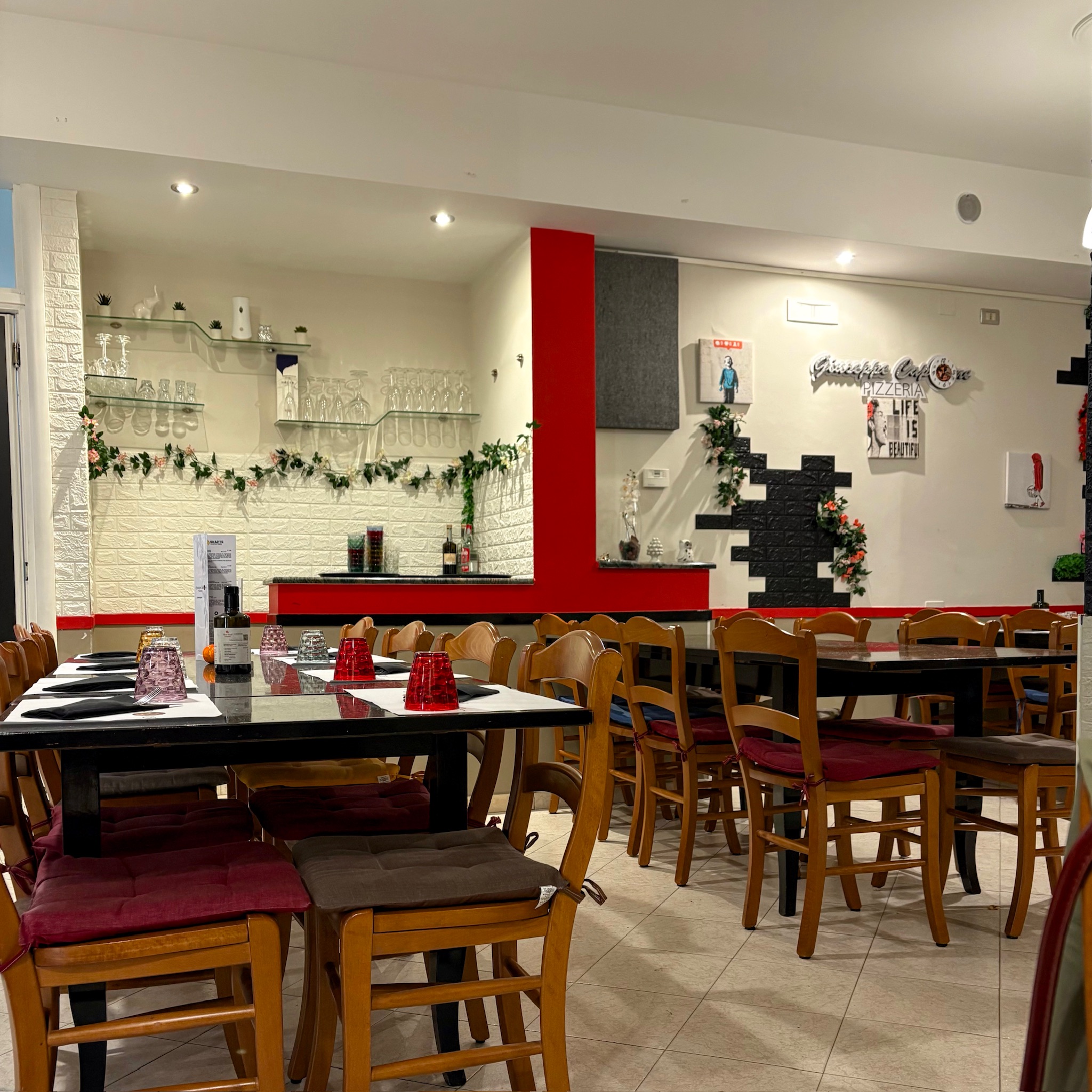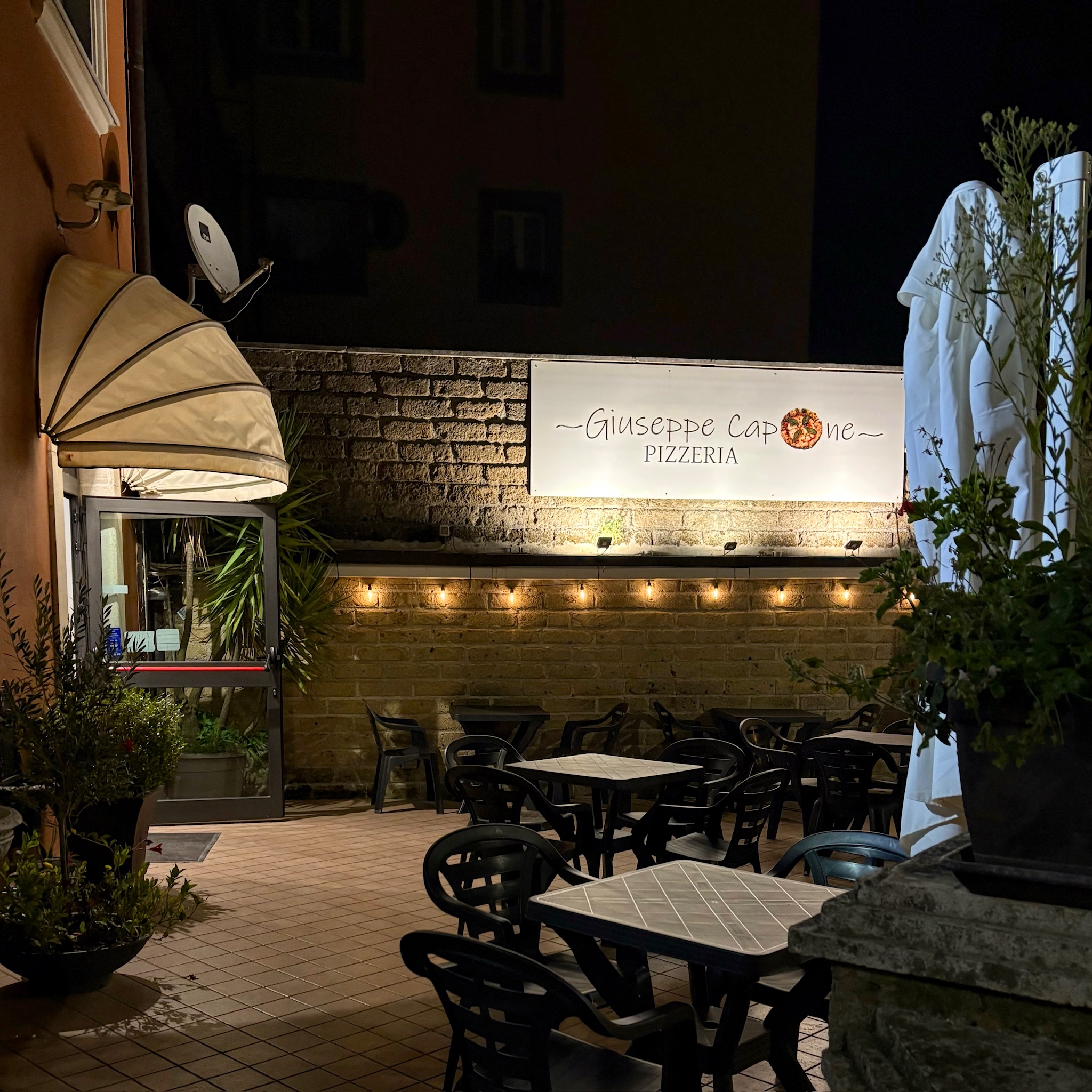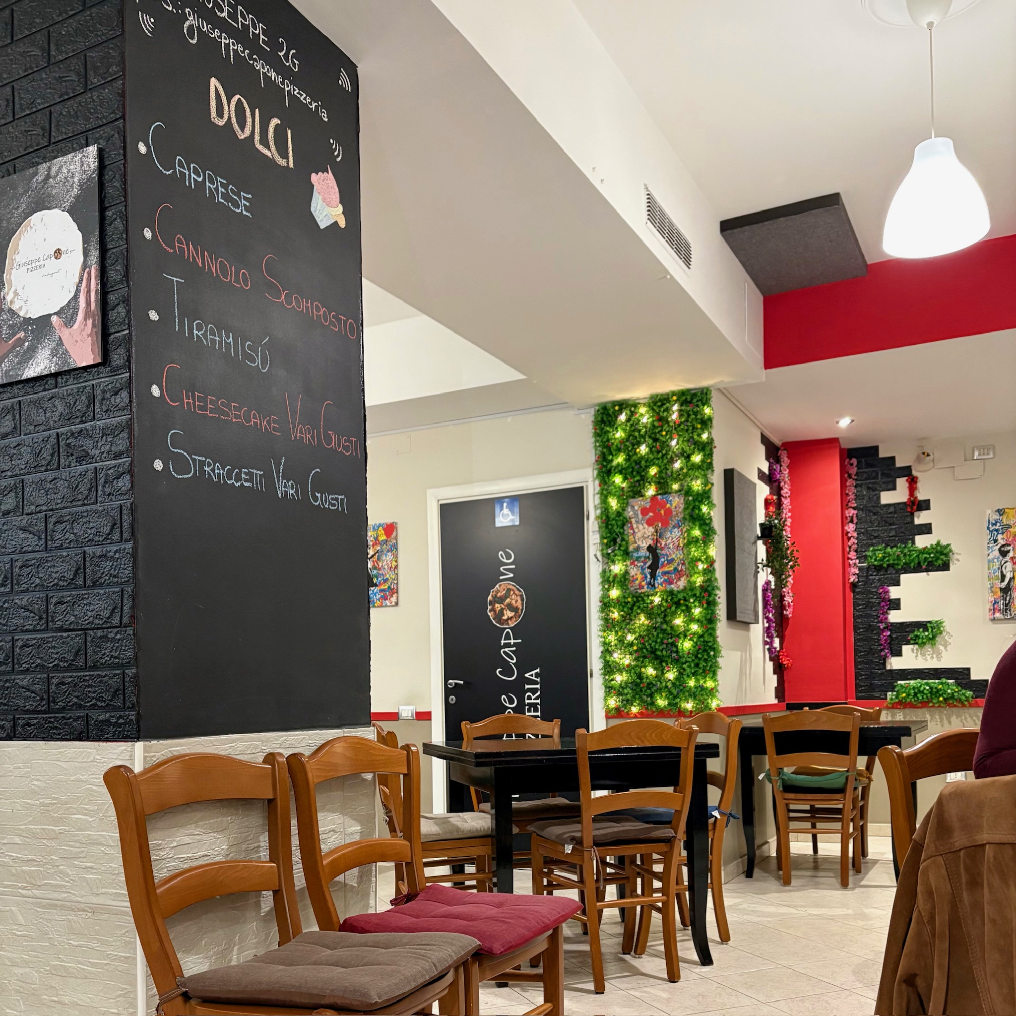 La pizzeria Giuseppe Capone si trova a 4 minuti dal centro storico di Avellino, a due passi dal rinomato Corso Umberto I. Il locale, non molto grande, presenta una sala con un numero di coperti limitato, ai quali si aggiungono quelli della terrazza esterna, antistante l’ingresso.