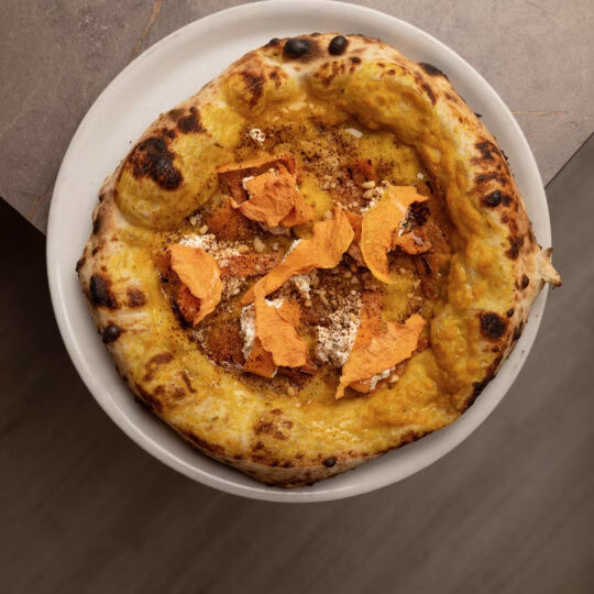 L’impasto proposto da Mirko, con grani teneri macinati a pietra, ha una lievitazione e maturazione di 48ore circa e, oltre il classico, è possibile scegliere tra impasto multicereale e senza glutine. Il menu si articola in sezioni: antipasti, marinare, margherite, a tutto pepe, veggy, pizze speciali, bianche e dessert. Tra gli antipasti spicca la Focaccia 4/4, con pomodori e olio, tipica pugliese; tra le marinare invece, degna di nota è la Marinara Gialla fatta con salsa gialla, acciughe del Cantabrico, caciocavallo, olive taggiasche, olio al basilico, olio all’aglio. La Carbonara di Pepe, fatta con fiordilatte, guanciale croccante, pecorino, salsa al tuorlo e pepe, si distingue tra le speciali insieme alla Vitel Tonnè 4/4 fatta con fiordilatte, carpaccio di manzo, mousse al tonno, foglie di cappero, nocciole e basilico in crema. Tra le pizze con prodotti più legati al territorio invece merita una menzione la Made in Puglia 2.0 fatta con crema di rape, provola affumicata, chips di capocollo, cardoncelli e datterino giallo. Anche i dolci sono presenti, tra cui la Margherita Dolce fatta con impasto al cocco, crema al mascarpone, marmellata di pomodoro, limone e menta.