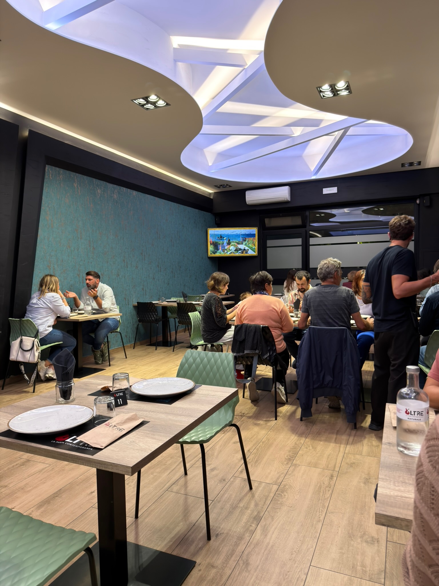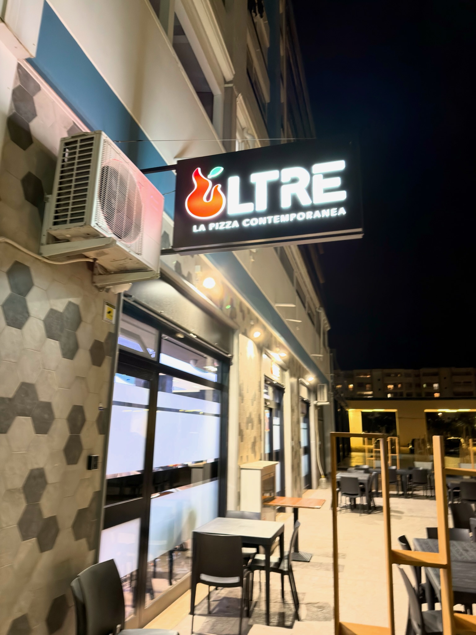 La pizzeria OLTRE si trova in una zona residenziale della periferia di Barletta; il locale presenta il forno e il piano di lavoro all’ingresso, a sinistra una grande sala con un buon numero di coperti, ai quali si aggiungono quelli del dehor esterno.
