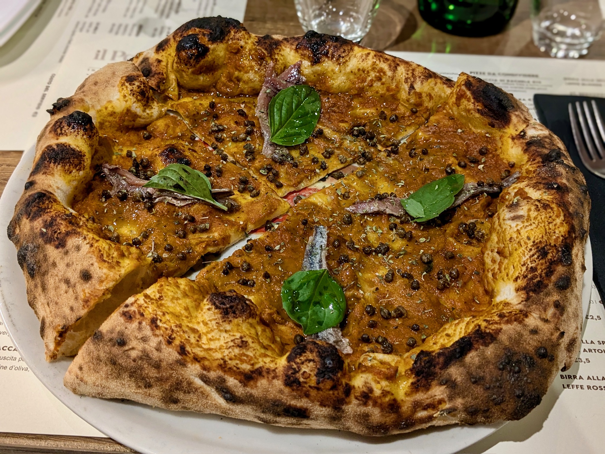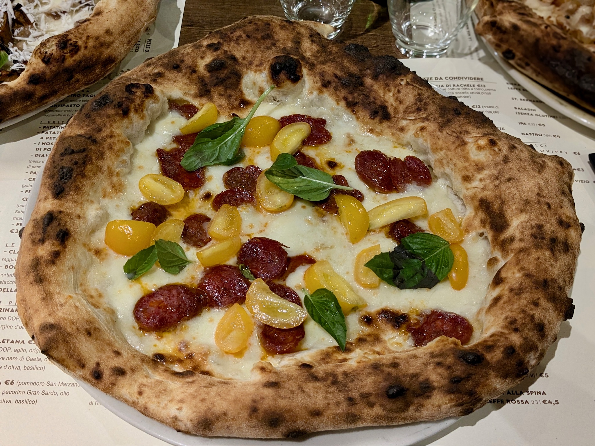La proposta in menu comprende antipasti fritti e non, pizze classiche, pizze gourmet e dessert. Tra le pizze classiche, non può mancare la Margherita fatta con pomodoro San Marzano Dop, fiordilatte sannita, basilico e olio evo; seguita dalla versione Provola e Pepe fatta con pomodoro San Marzano, provola, pepe e basilico. Altre pizze degne di nota sono: la Caudina fatta con fiordilatte, salsiccia rossa di Castelpoto, caciocavallo di Paduli, provola, basilico e olio evo; La Mia Genovese fatta con cipolla, provola, in uscita tartare di filetto di marchigiana condita con olio di sesamo giapponese e nocciole tostate; e la Riccia fatta con fiordilatte sannita, scarola riccia, pomodoro datterino giallo infornato, in uscita mollica di pane fritto in padella, olio evo.