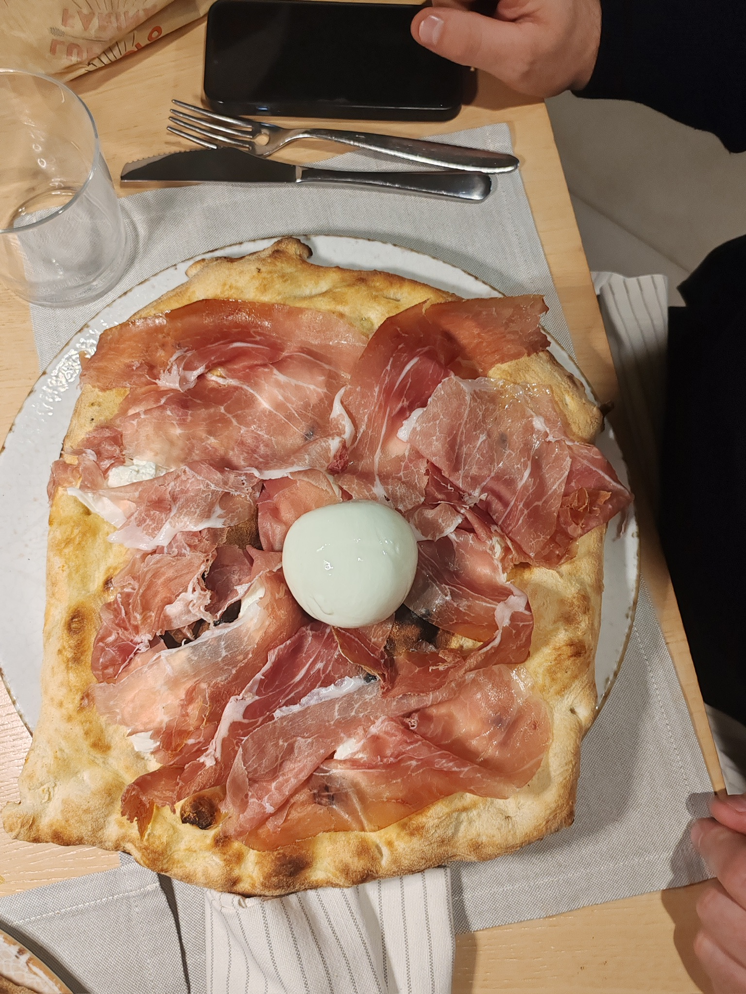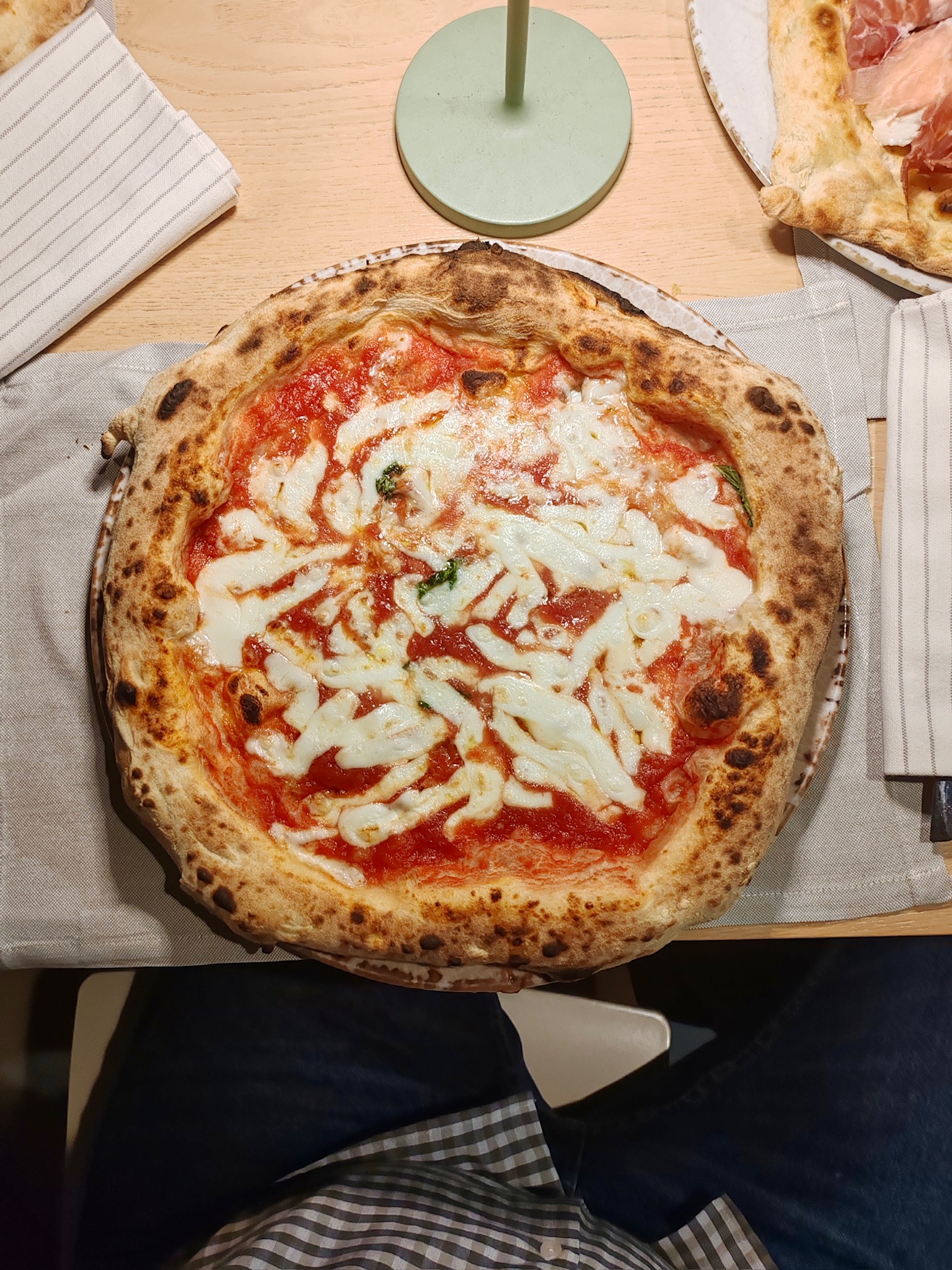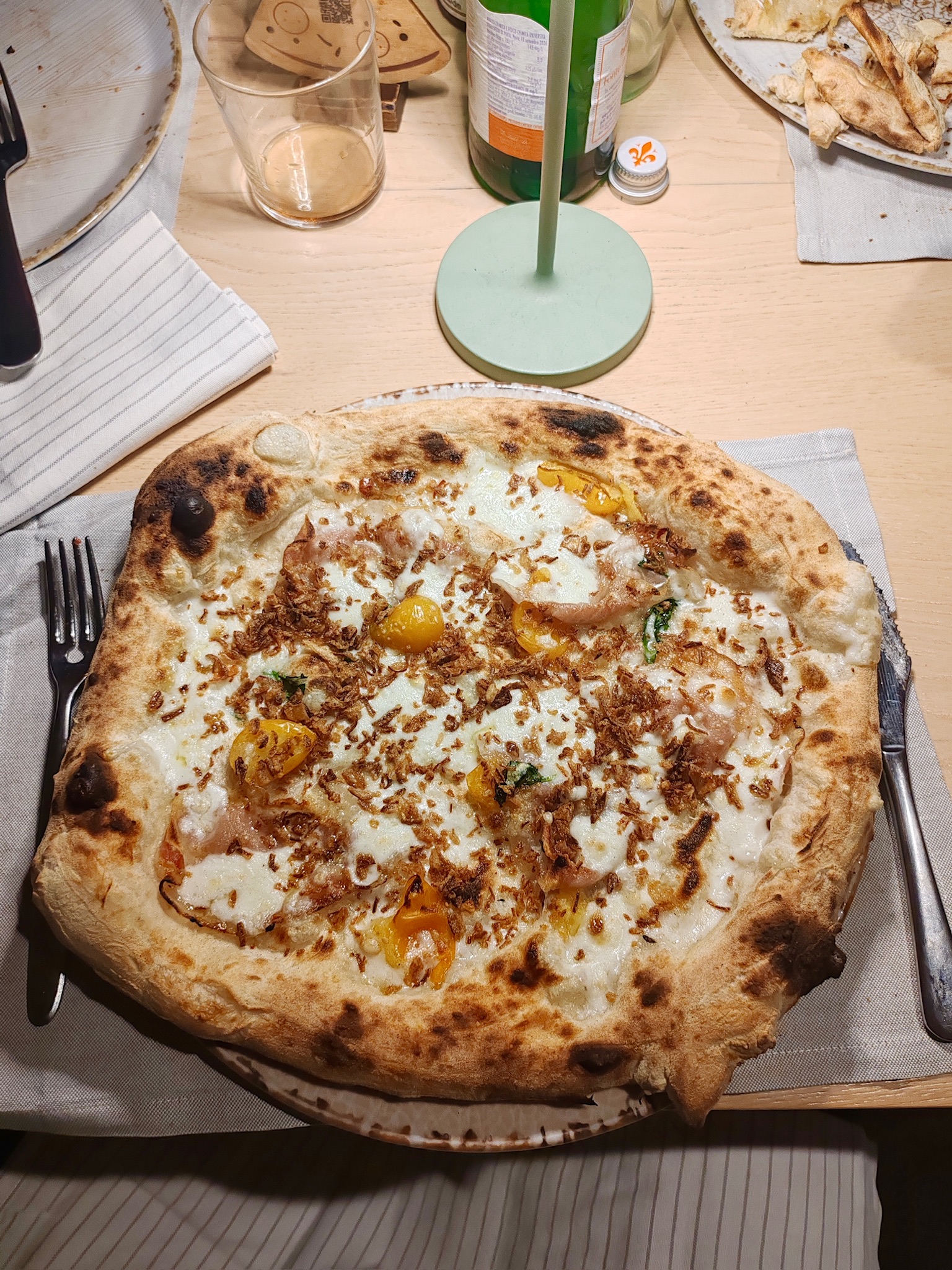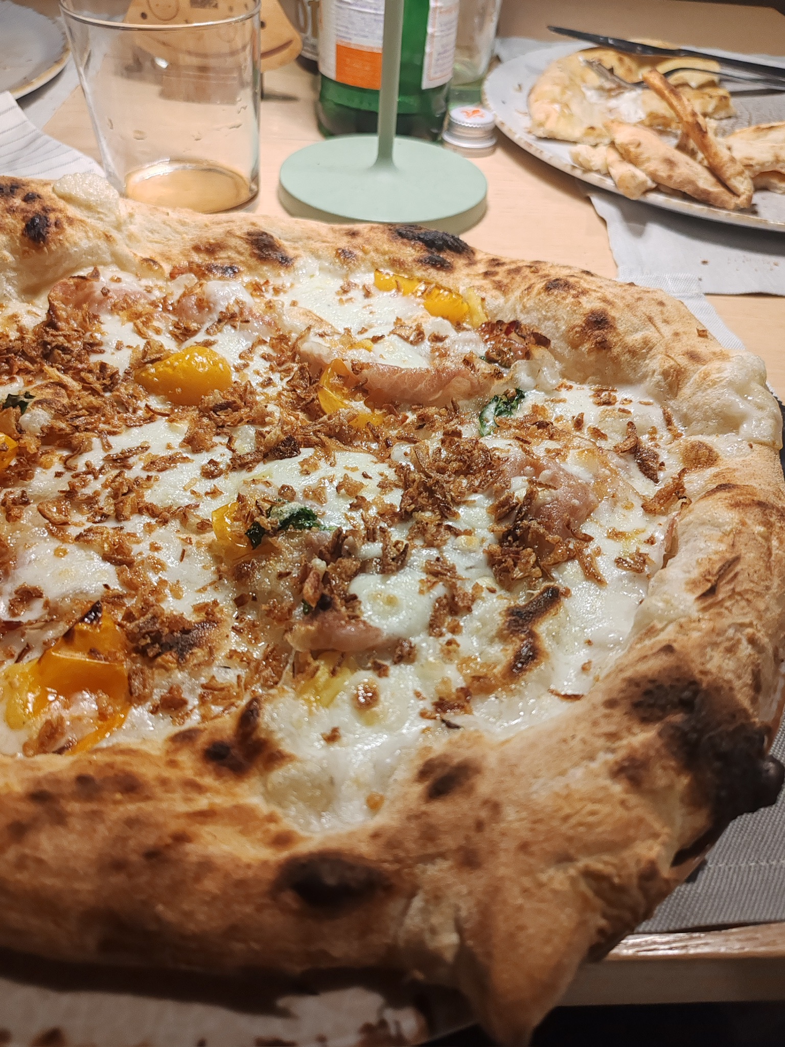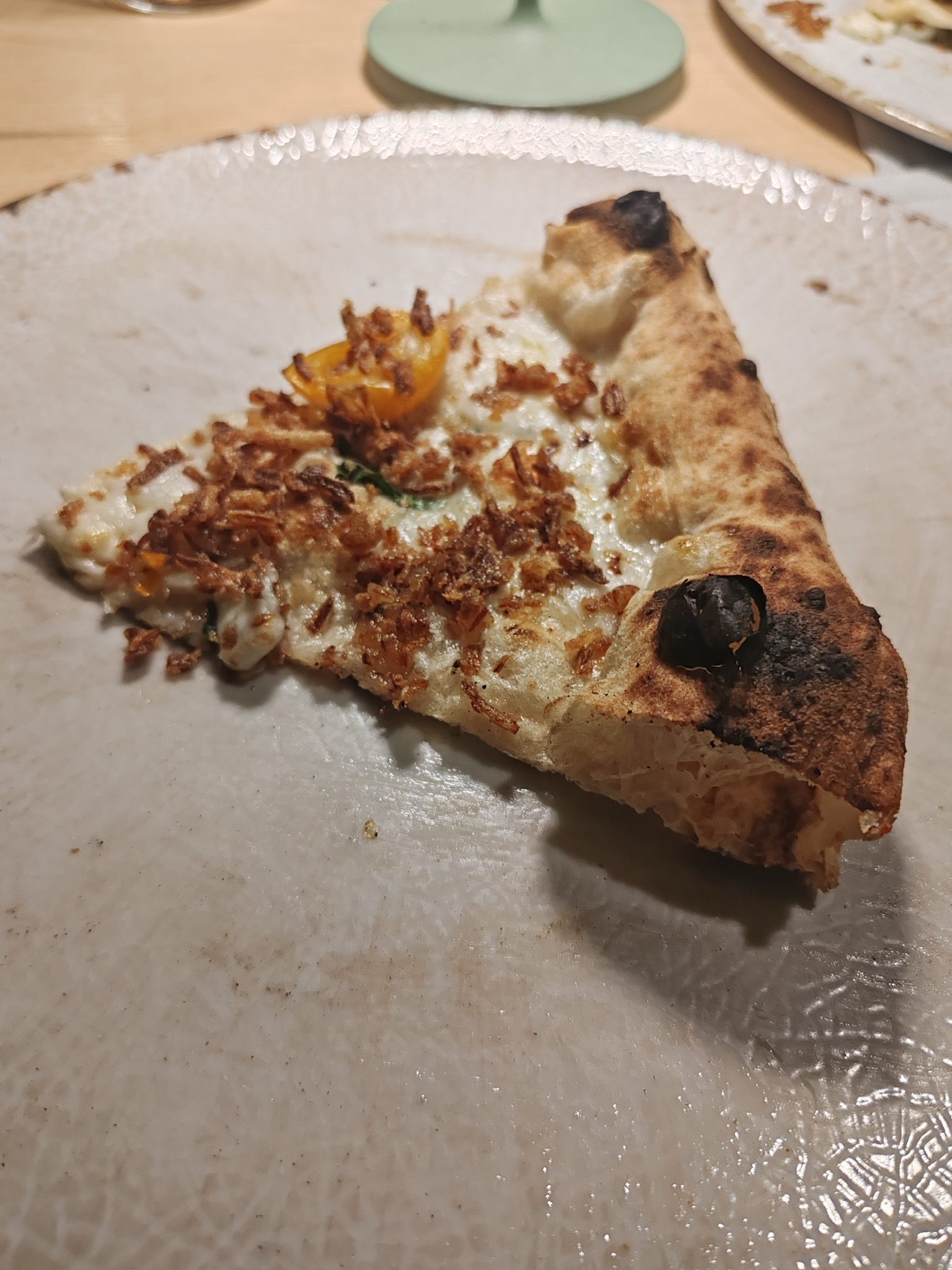 Infine anche i dolci sono presenti, tra cui spicca il trancio Come un Caffè Leccese, pizza al padellino caramellata con zucchero a velo, namelaka di cioccolato bianco aromatizzato al caffè, gel di mandorla e crumble di mandorle amare di San Michele Salentino.