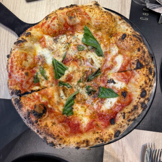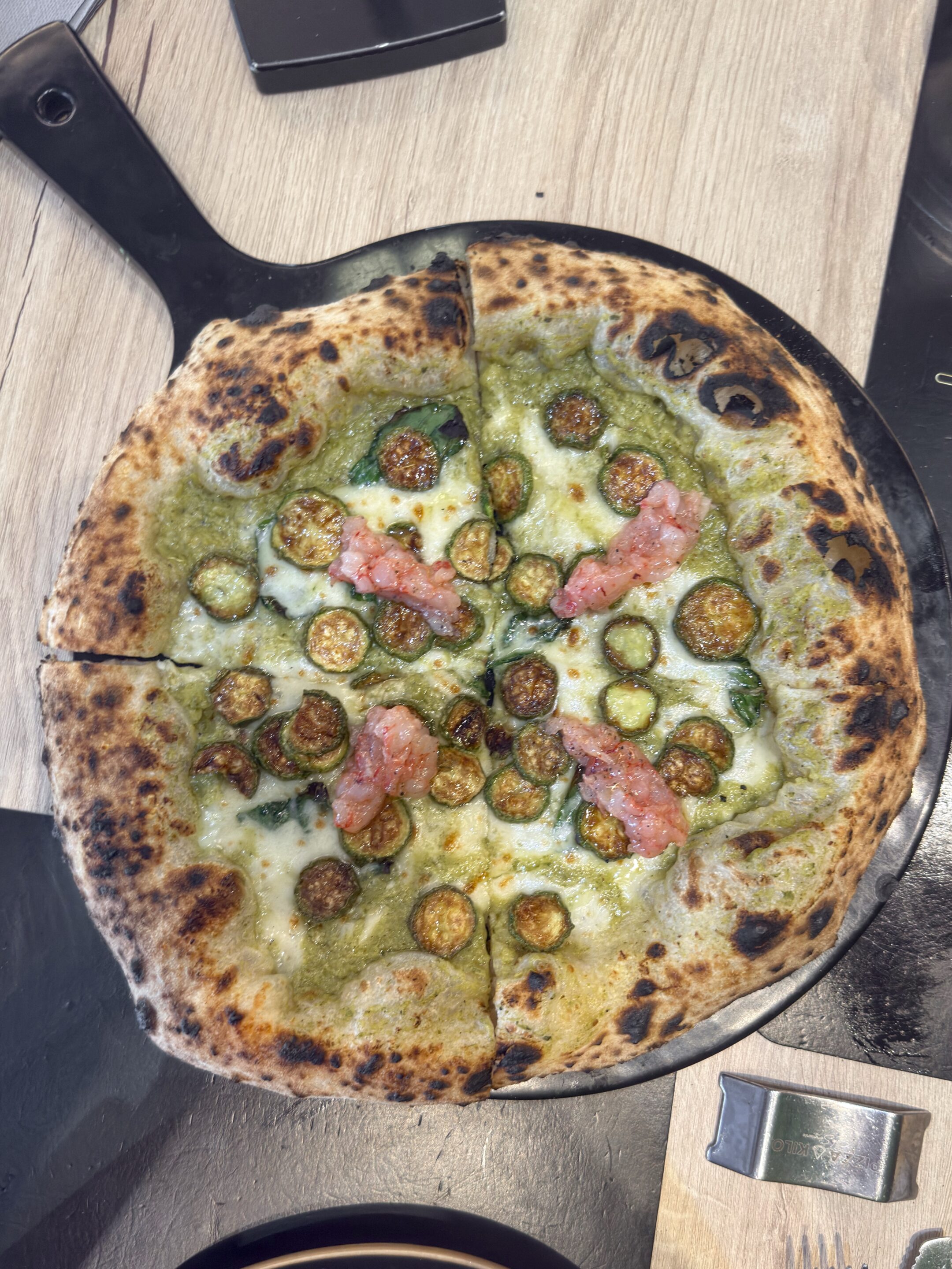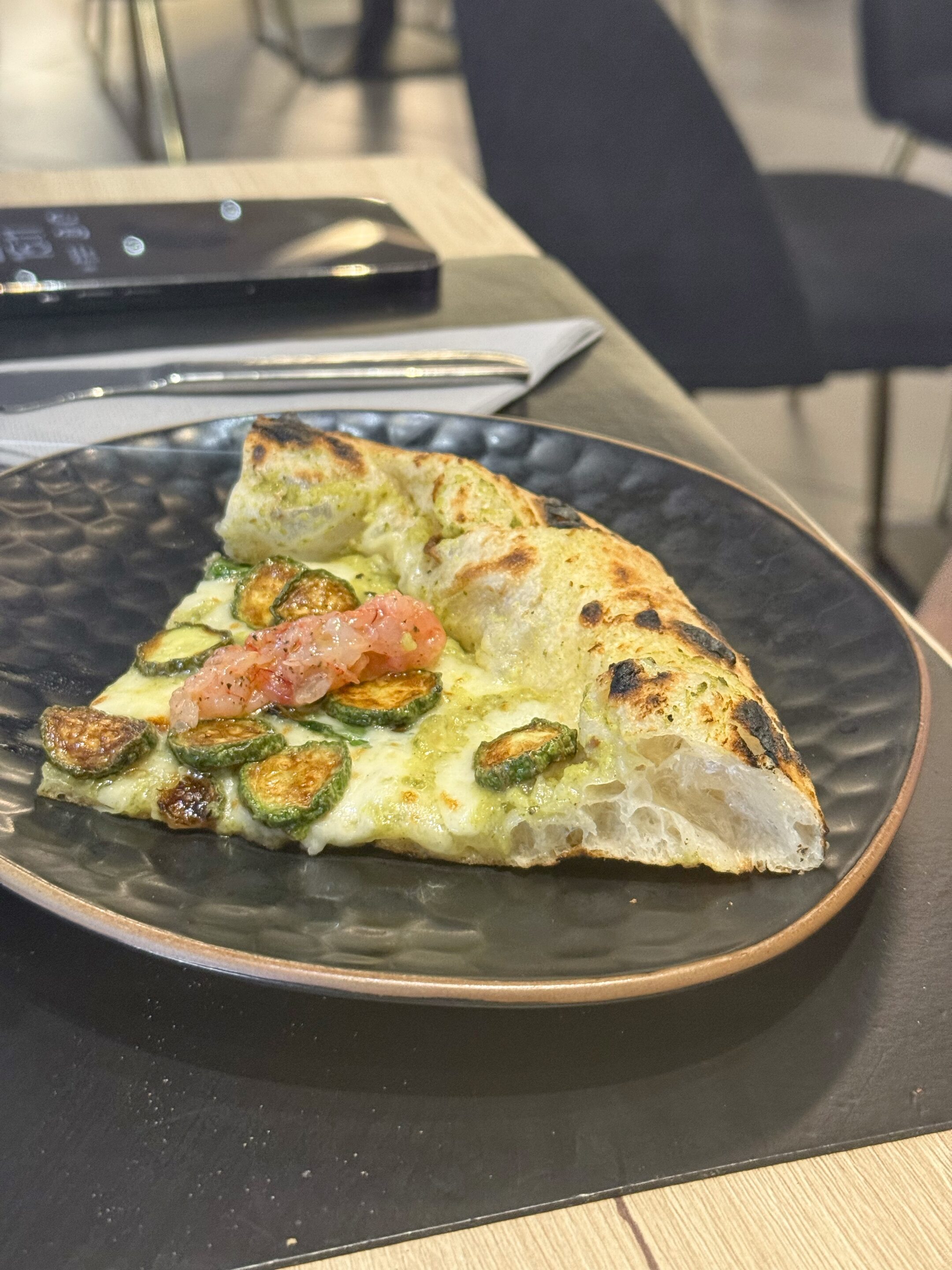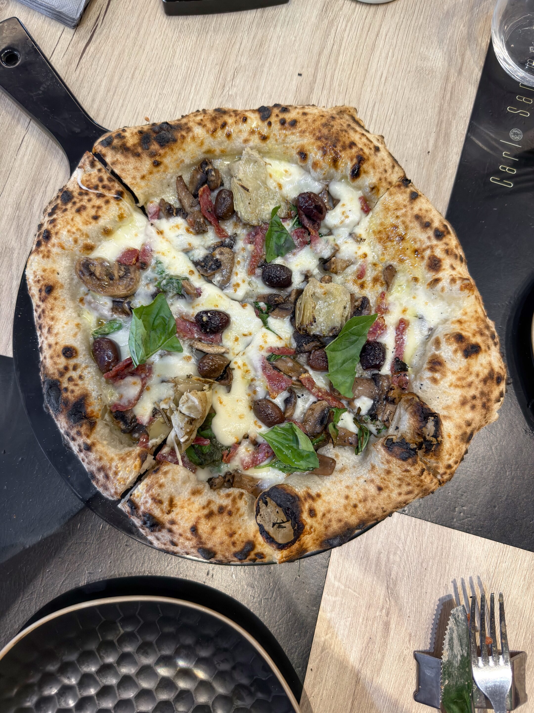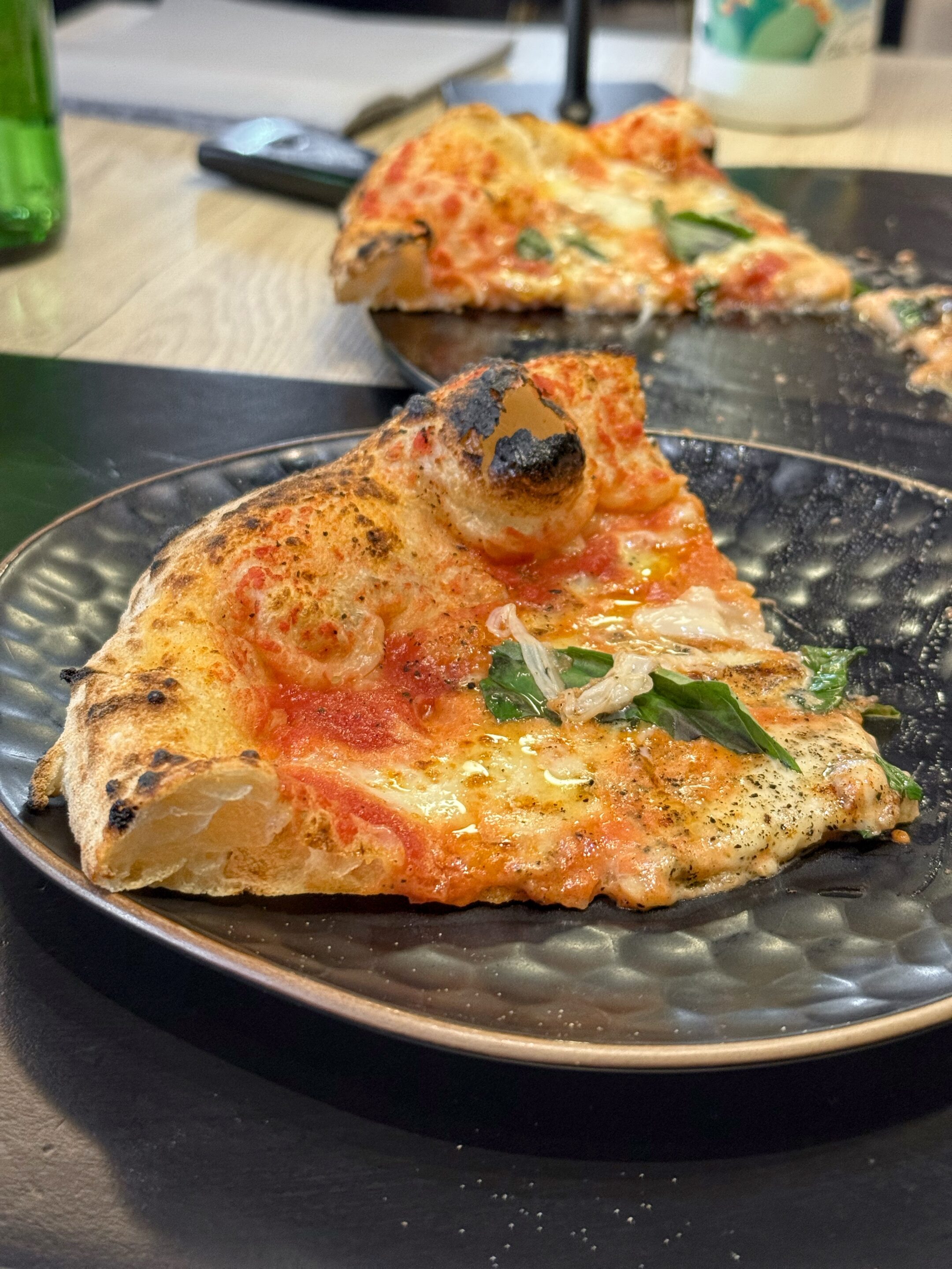 Per quanto riguarda la proposta in menu, non mancano le pizze tradizionali come nel caso della Provola e Pepe fatta con pomodoro, provola affumicata, pepe nero, basilico e olio evo; e la Capricciosa, in versione bianca, fatta con fiordilatte, carciofi, olive, funghi, salame, basilico e olio evo. Tra le pizze rivisitate da Carlo invece, degna di nota è la Nerano 2.0 fatta con vellutata di zucchine con il fiore, provolone del monaco, provola dei monti lattari, chips di zucchine fritte e tartare di gamberi rossi freschi. Infine, anche i fritti sono presenti tra cui la Frittatina Classica e l’Arancino Rosso fatto con riso al pomodoro, ripieno con ragù di suino, piselli, provola, parmigiano e pepe.