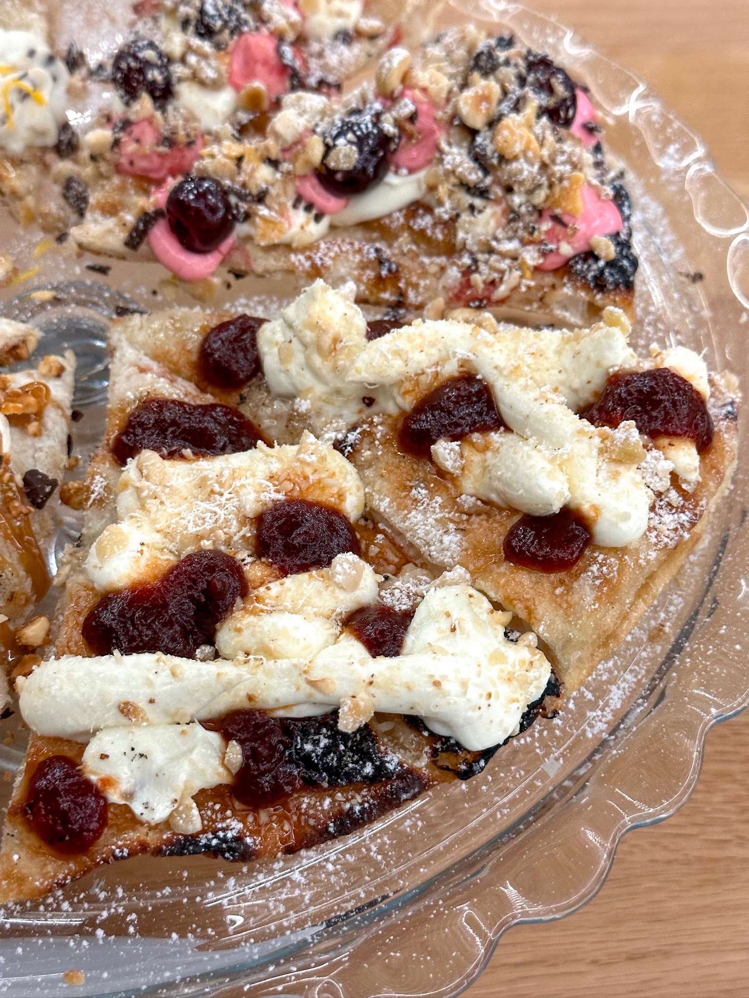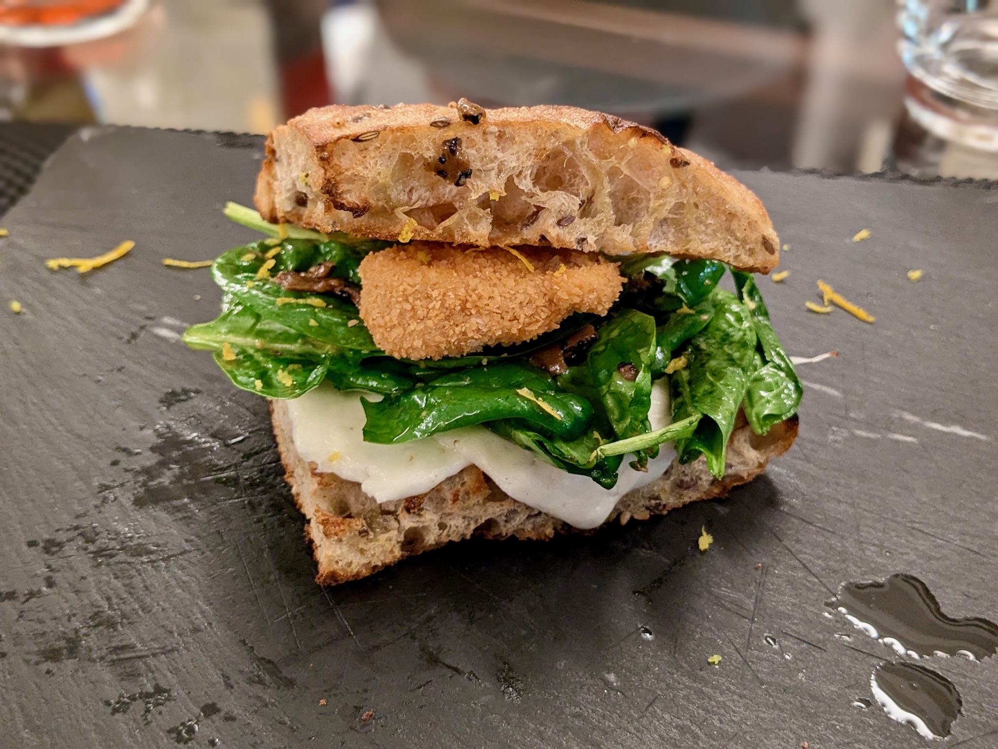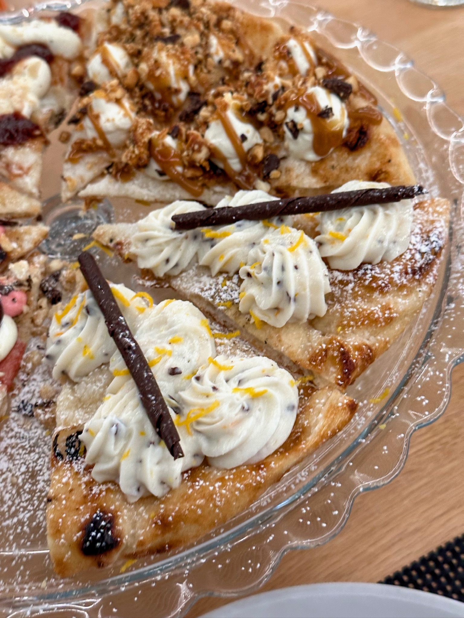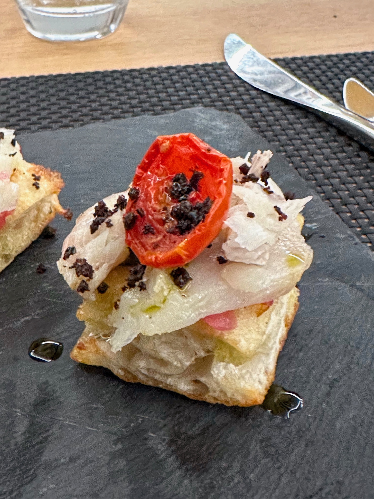 La proposta comprende: antipasti fritti, primi e secondi piatti, una selezione di pizze legate alla tradizione, una sezione con abbinamenti creativi, e una corposa proposta di pastry pizza. Tra gli antipasti spiccano: la Frittatina Gold, fatta con bucatini, besciamella allo zafferano, guanciale di razza casertana, provola e parmigiano DOP 36 mesi; e il Supplì Sottobosco, fatto con risotto, salsiccia di suino, porcini, parmigiano DOP 36 mesi e provola della penisola. Tra le pizze classiche è da menzionare la Marinara Casertana, fatta con acciughe di Cetara, pomodoro San Marzano, origano di collina, capperi di Salina, olive taggiasche e olio evo di Caiazzo; seguita da Il Capriccio Di Simone fatta con prosciutto cotto alta qualità, salame Tipo Napoli, carciofo fresco brasato, lamelle di funghi porcini, terra di olive nere caiazzane, olio evo di Caiazzo, fiordilatte della penisola e parmigiano DOP 36 mesi. Tra le proposte con abbinamenti più articolati invece, degno di nota è lo Spicchio di Zebò – Fuoco e Farina, un padellino 100% cereali firmato dalla chef Amelia Falco, cotto al vapore e al forno, farcito con tuorlo d’uovo panato e fritto, spinacino agli agrumi, primo sale piastrato, carpaccio di tartufo pregiato e olio evo di Caiazzo. Per quanto riguarda la proposta dolce, tra la ricca carta sono da menzionare la La Conciata di Nicola, un’idea dolce di Margherita, con confettura dolce di pomodoro, mousse di mascarpone, nocciole di Giffoni infornate e scagliette di conciato romano; e lo spicchio di Assoluto di Mela Annurca con mela in quattro consistenze.