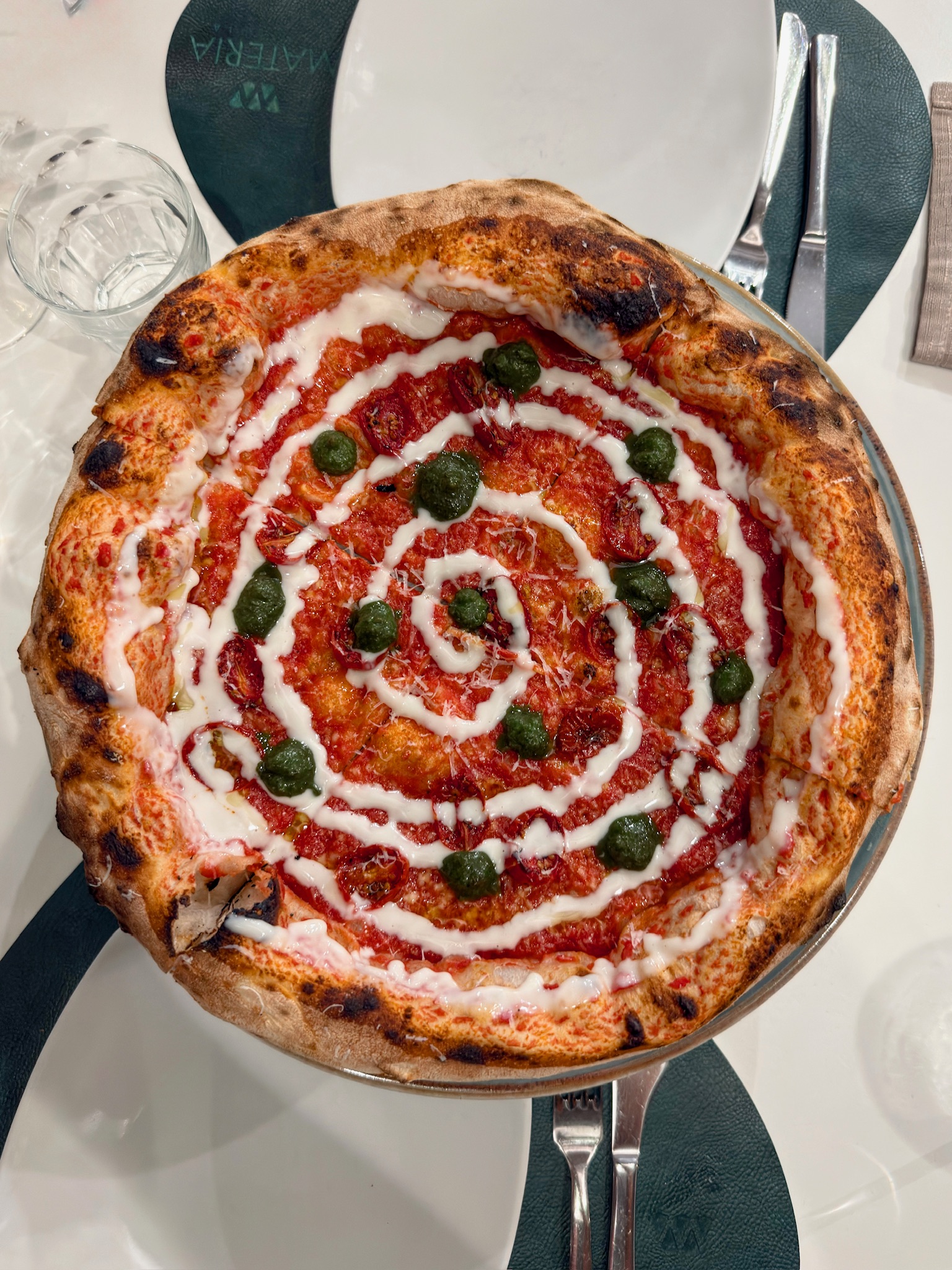 Materia è una pizzeria nata a Cellole, in provincia di Caserta e realizzata su due piani, dal taglio moderno e sviluppata seguendo l’idea e il concetto di pizza del pizzaiolo Marco Petruccelli. Una vera pizzeria napoletana moderna che propone, oltre ai grandi classici della tradizione, anche composizioni rielaborate secondo l’estro e la creatività del giovane pizzaiolo casertano.