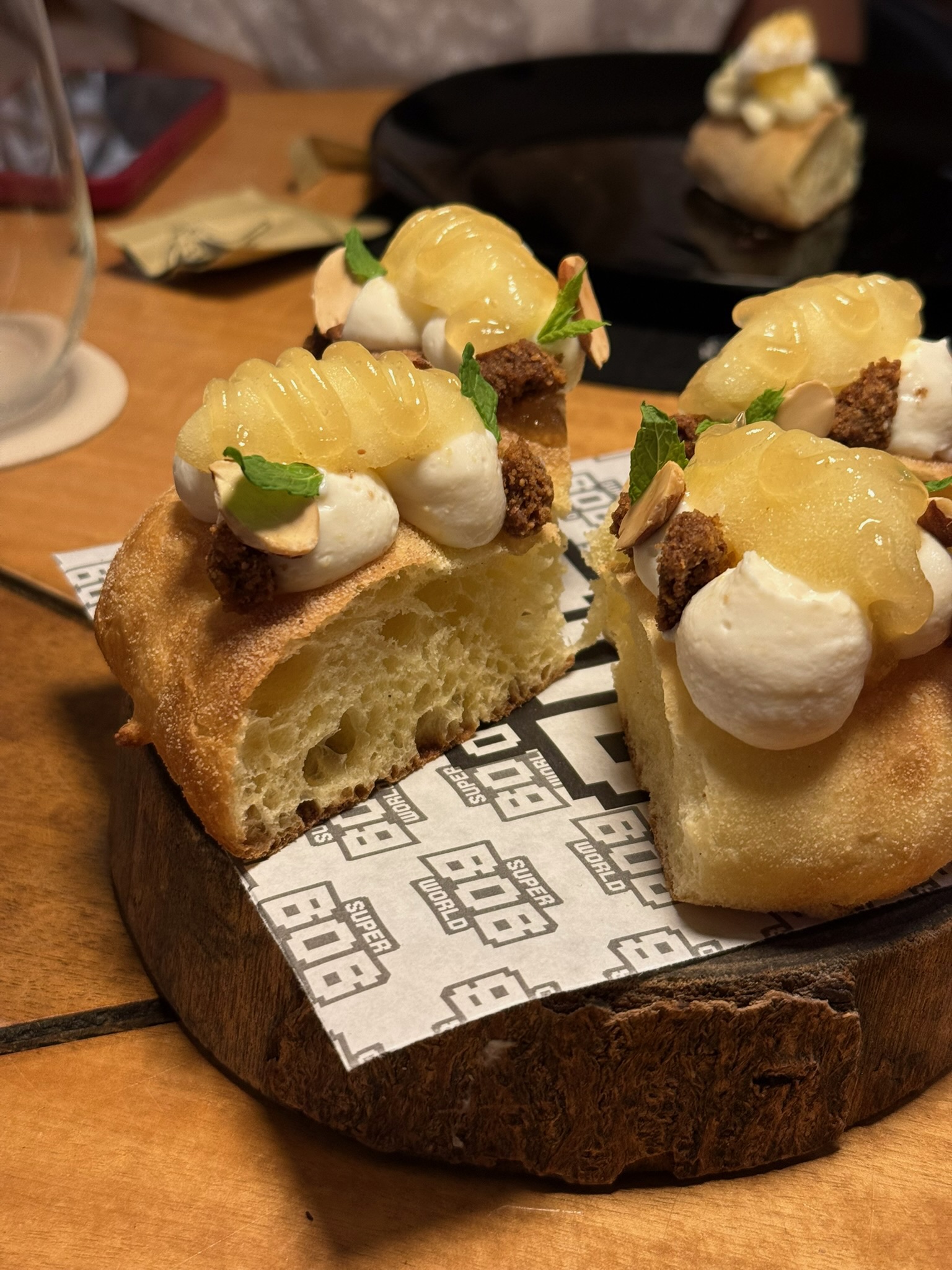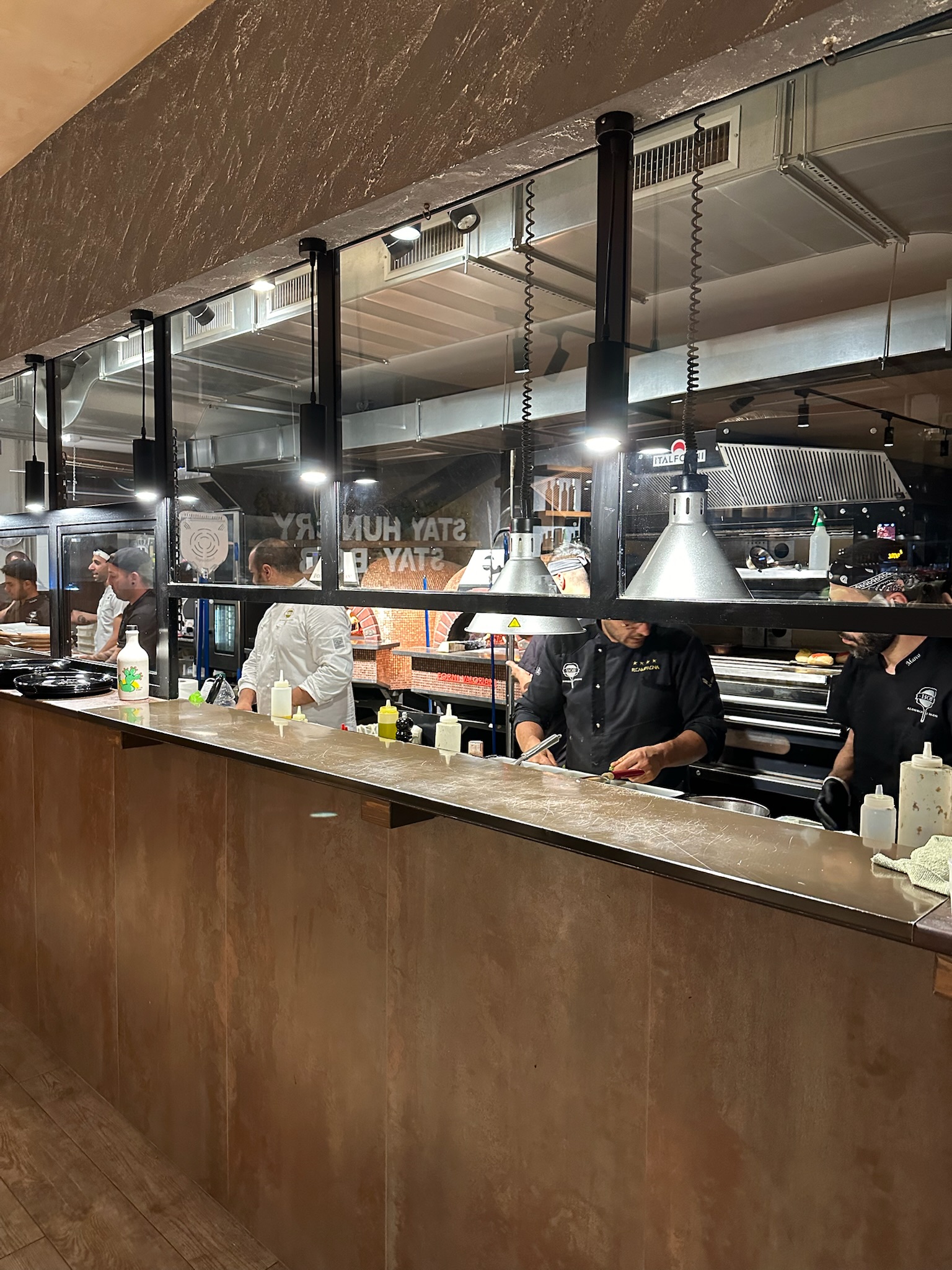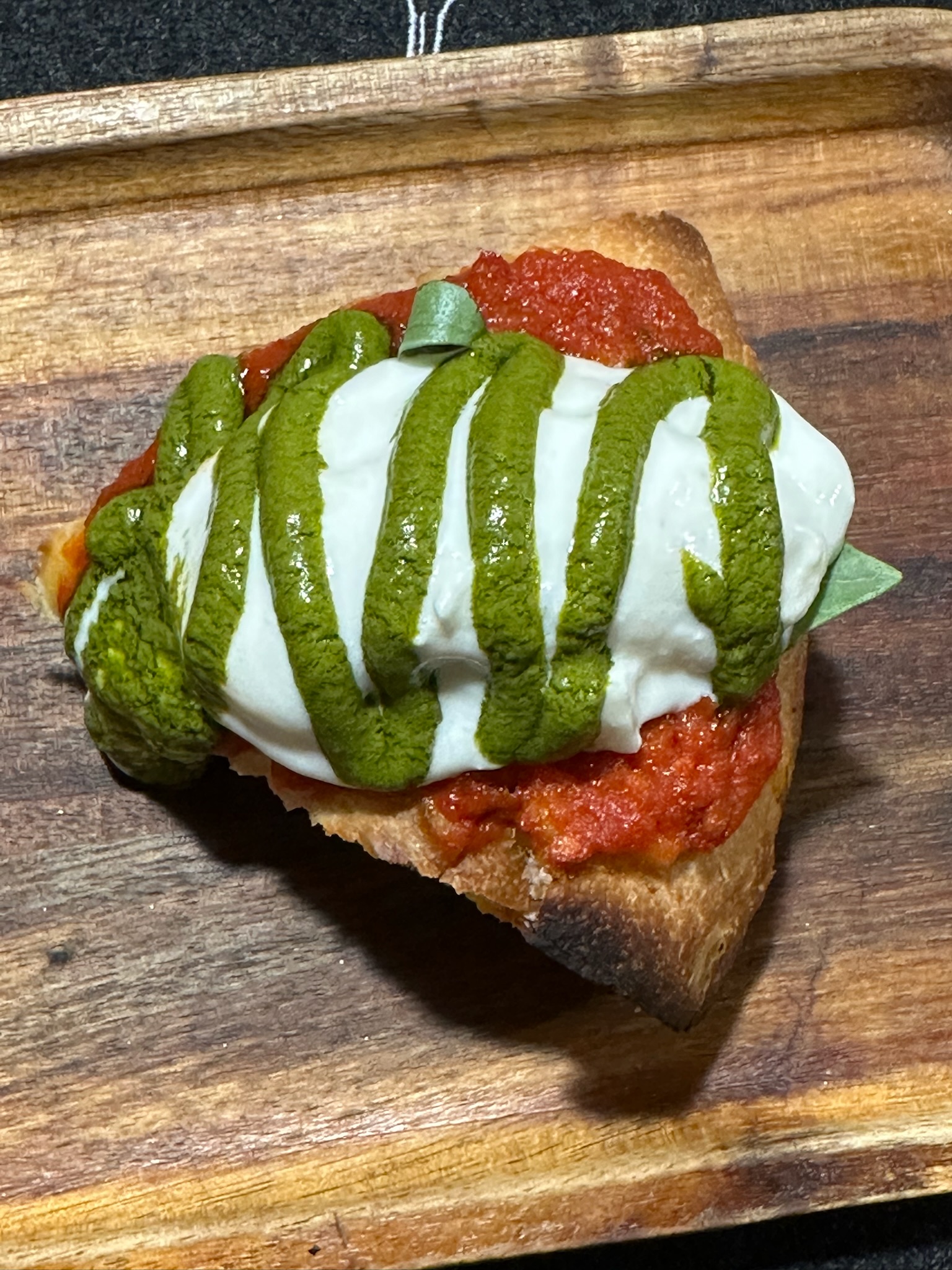 La caratteristica della pizzeria è quella di proporre la pizza servita a spicchi senza l’utilizzo di posate , ‘obbligando’ i commensali a mangiare con le mani. Il menu presenta abbinamenti studiati e innovativi mediante l’utilizzo di prodotti del territorio. Nella proposta in menu merita una menzione la Coprovola e Pepe, fatta con crema di pomodoro alla brace, provola di capra silana, pepe di penja, olio evo e basilico; e la Capricciosa con pomodoro alla brace, mozzarella, cotto di suino nero, ketchup di porcini, estratto di olive nere, insalata di carciofi e basilico. Anche i dolci sono presenti, tra cui una selezione di spicchi, la cui base prende il nome di super soft , un impasto tra una pizza in pala e una brioche. Tra le molteplici farciture è presente lo spicchio Castagne, fatto con namelaka alle castagne, gel ai cachi, gelato alla crema inglese e croccante fondente.