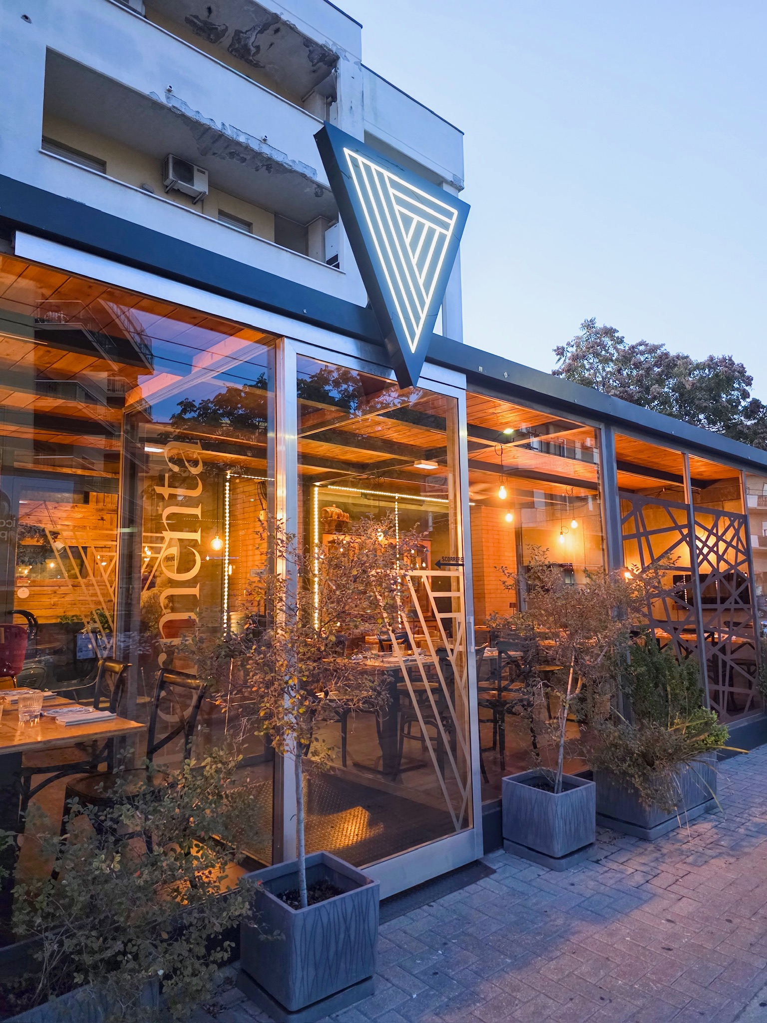 La pizzeria Fermenta, di Luca Cornacchia e Giorgia Santuccione, si trova in Abruzzo nella zona di Chieti Scalo. Il locale, vivace e moderno, presenta ampi spazi capaci di accogliere 160 persone nella zona interna, e altre 100 nel dehors esterno.