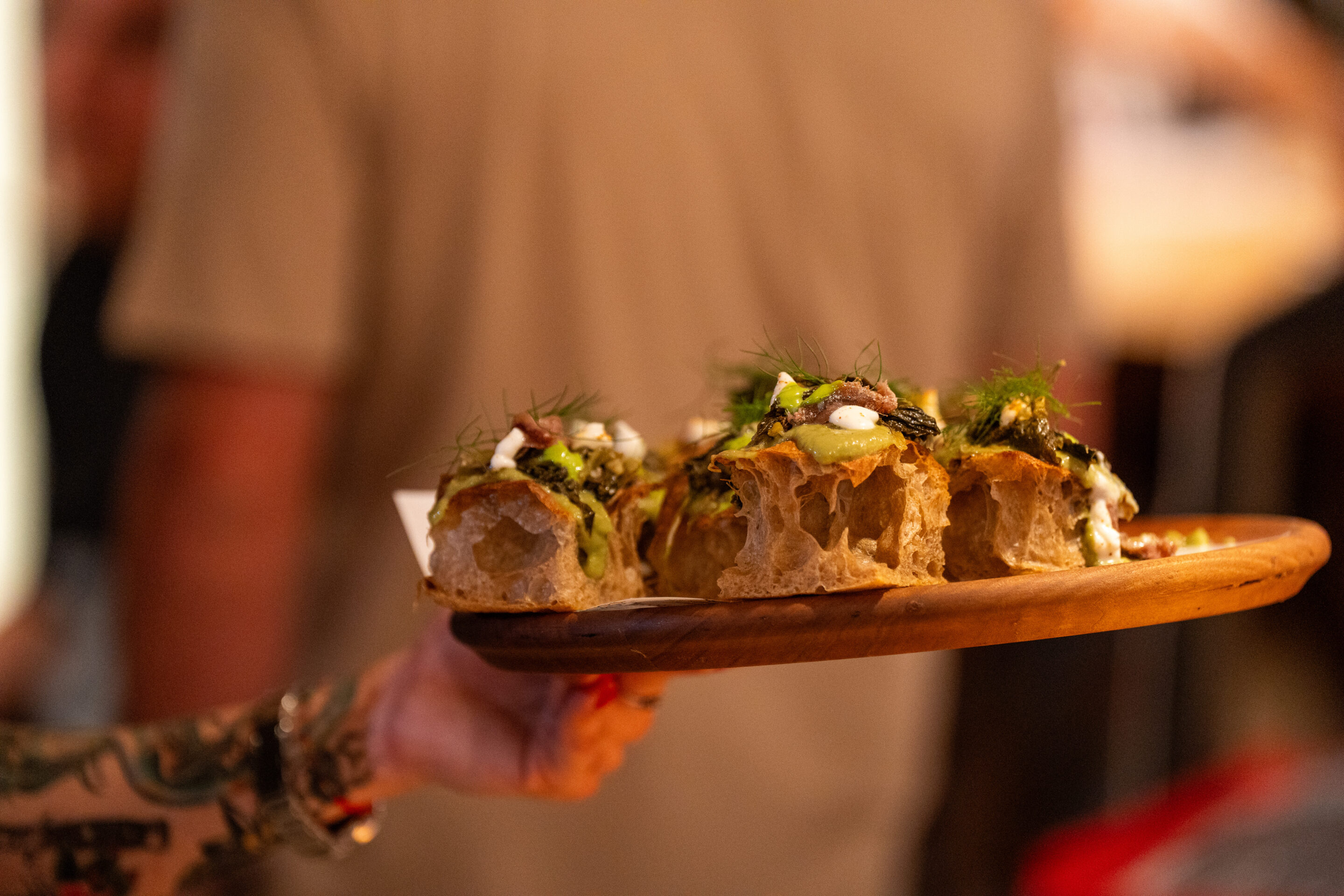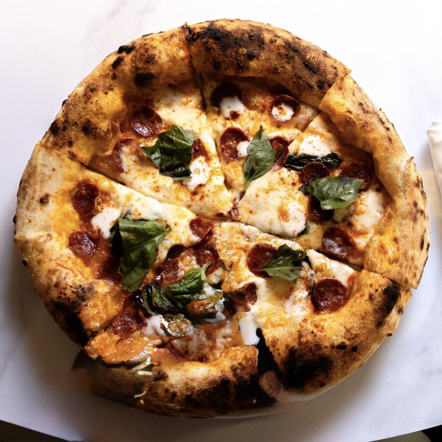 La proposta comprende: fritti e lievitati monoporzione, primi e secondi piatti, pizze classiche, pizze con stesura bassa e croccante e pizze con abbinamenti più innovativi. Tra i fritti spicca il supplì Felip fatto con funghi affumicati agli aghi di pino, guanciale croccante, provola affumicata, pesto di datterino giallo e maionese di rosmarino; seguito dalla frittatina Patate, Provola e Nduja fatta con pasta mista, passata di pomodoro alla nduja, salsiccia stagionata piccante, polvere peperone crusco e parmigiano reggiano. Tra i lievitati monoporzione invece, degno di nota è il trancio con lievito madre Carne e Cavolo, fatto con stracotto di manzo, polvere di peperone, salsa agape affumicata e cavolo viola croccante all’aceto. Per quanto riguarda le pizze, tra le classiche sono da citare la Marimara fatta con passata di pomodoro, aglio, in uscita polvere di olive taggiasche, pomodorini rossi semidried, alici di Anoia, polvere di capperi, basilico e olio evo; e la Provola Pepe e Felicità fatta con passata di pomodoro alla nduja, salsiccia stagionata, fiordilatte, provola affumicata, e in uscita polvere di peperone crusco, gel di carote, fonduta parmigiano basilico e olio evo. Altra pizza interessante è la Fresc’Alici fatta con fiordilatte, crema di latte con noce moscata e pepe nero, in uscita alici, datterino giallo, pomodorini rossi semidried, scarola riccia croccante, origano, polvere olive taggiasche, basilico e olio evo.