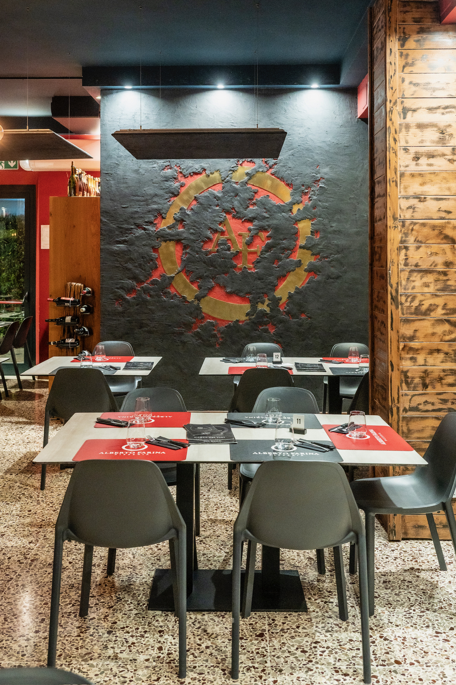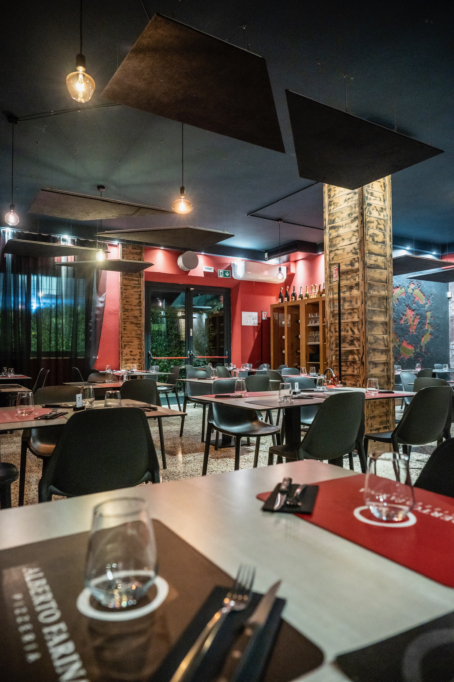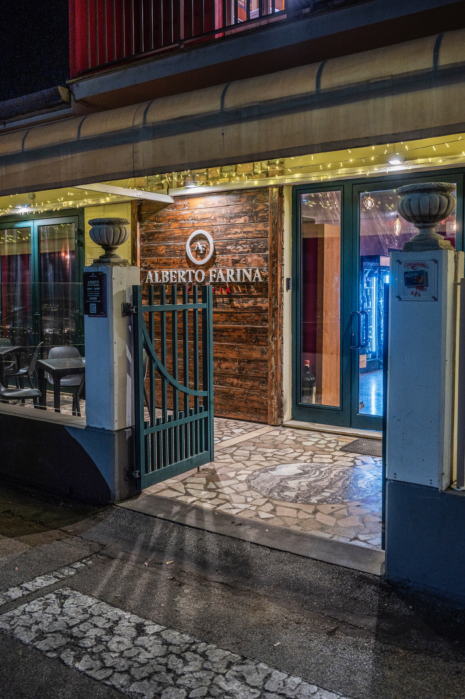 La Pizzeria Alberto Farina si trova lungo il Lido di Fermo, nelle Marche, ed offre una buona varietà di impasti – padellino, doppia cottura, contemporaneo – e abbinamenti che attingono da tutta Italia. Il locale, dominato dal colore rosso e dal nero, presenta il forno con il banco da lavoro all’ingresso e a sinistra un’ampia sala con un buon numero di coperti, ai quali si aggiungono quelli del dehors esterno fruibile durante la bella stagione.