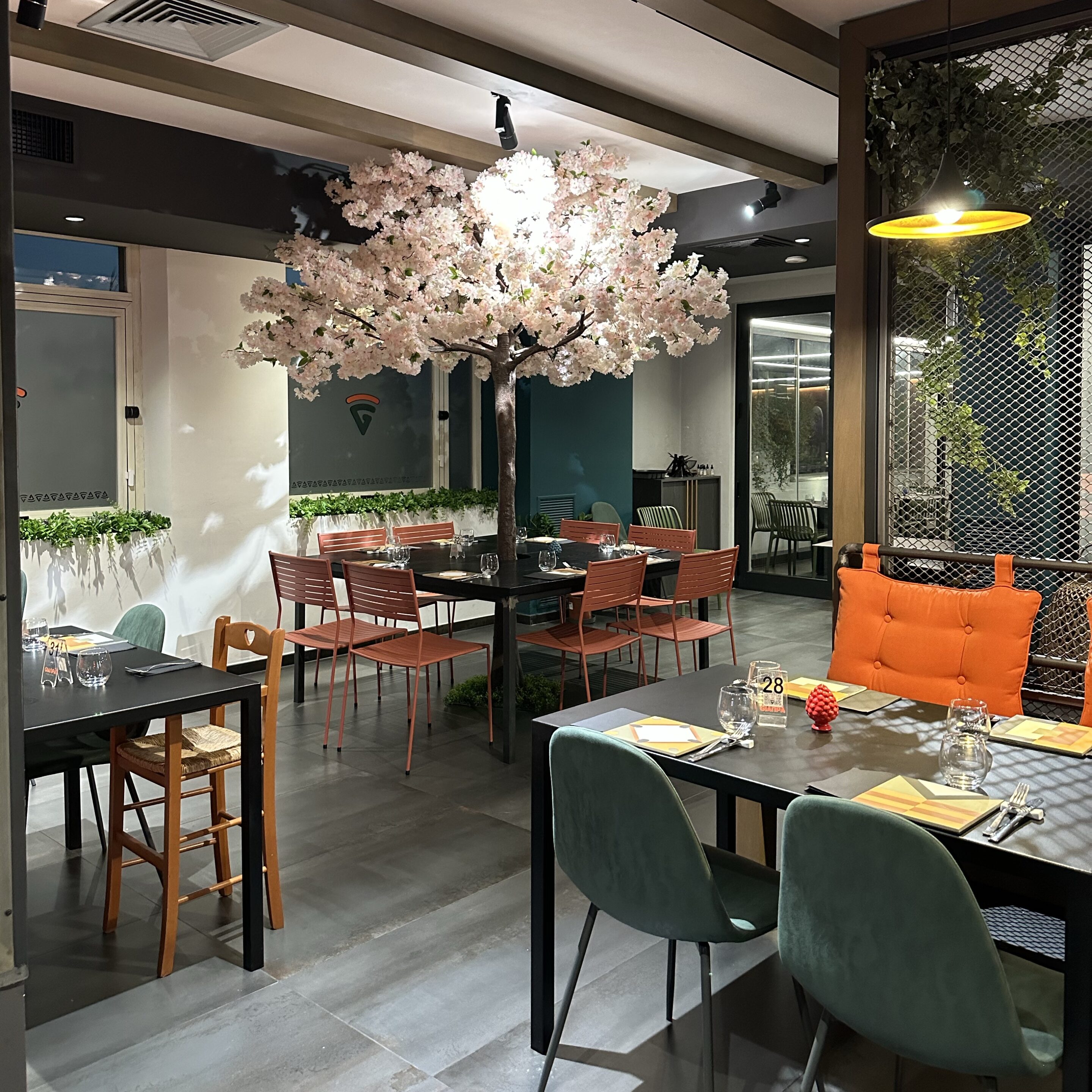 Il menu presenta una vasta scelta, dalla pizza tonda classica cotta in forno, a quella a tre temperature (vapore 100, fritta 180, forno 400), fino ad arrivare ai fritti. Tra le pizze classiche c’è l’immancabile Margherita, fatta con base pomodoro, fiordilatte, parmigiano, basilico e olio evo; e la Gianpà, fatta con base mozzarella di bufala, friarielli, pomodorino giallo, pomodorino semy-dry, cacio cavallo, basilico e olio evo. Degna di nota inoltre è senz’altro la Montanara fritta e al forno, cotta in due fasi, guarnita con pomodoro, mozzarella di bufala, scaglie di parmigiano, basilico e olio evo. Per quanto riguarda la proposta dolce, è da menzionare lo spicchio di padellino al cacao farcito con confettura di albicocca, e completato in superficie con un topping di crema al cioccolato fondente.