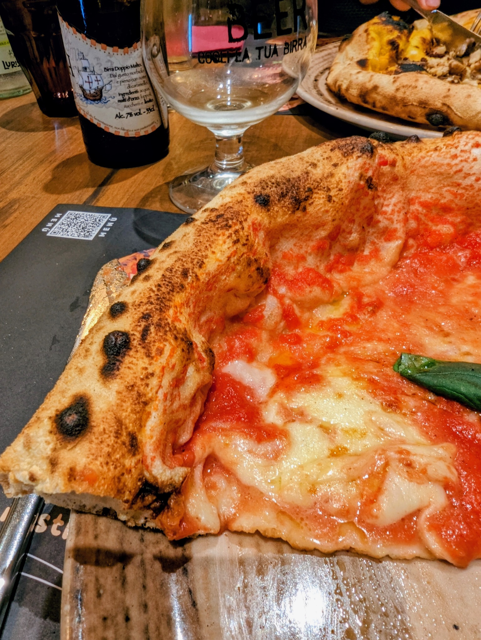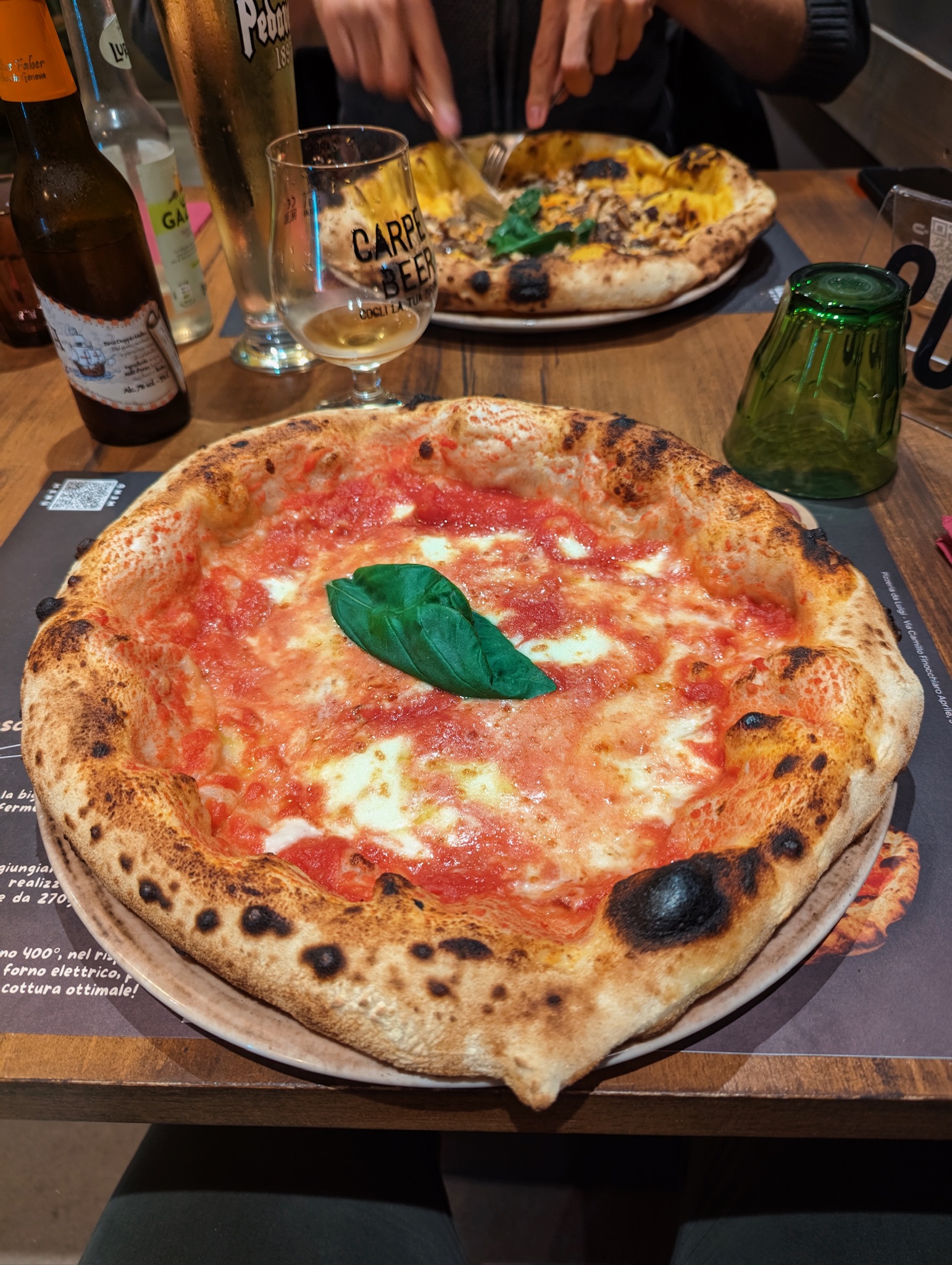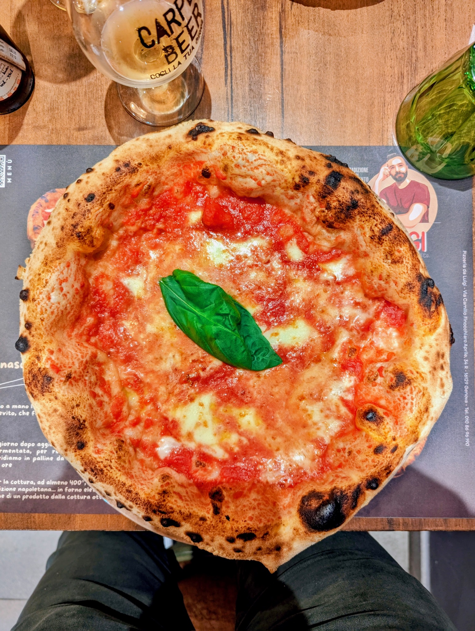Il menu comprende una serie di sfiziosità, pizze classiche, pizze speciali, una sezione dedicata alla ‘domenica napoletana’ , calzoni e pizze fritte. Tra gli antipasti è da citare la Panissa Fritta fatta con farina di ceci; tra le pizze classiche non può mancare la Margherita, fatta con pomodoro, fiordilatte, olio evo, basilico; seguita dalla Capricciosa, fatta con pomodoro, fiordilatte di Agerola, prosciutto cotto, salame, carciofini, olive leccine denocciolate, funghi, olio evo e basilico. Tra le pizze speciali invece merita una menzione la Ligure 2.0 fatta con fiordilatte di Agerola, in uscita prosciutto cotto, pesto ligure Dop, stracciatella pugliese, olio evo e basilico. Altre pizze da citare, appartenenti alla sezione domenica napoletana, sono: A Genovese fatta con fiordilatte e provola affumicata di Agerola, stracotto di carne e cipolla, grana grattuggiato, olio evo e basilico; e la Salsiccia e Patate fatta con fiordilatte e provola affumicata di Agerola, salsiccia fresca al forno, patate al forno, olio evo e basilico.