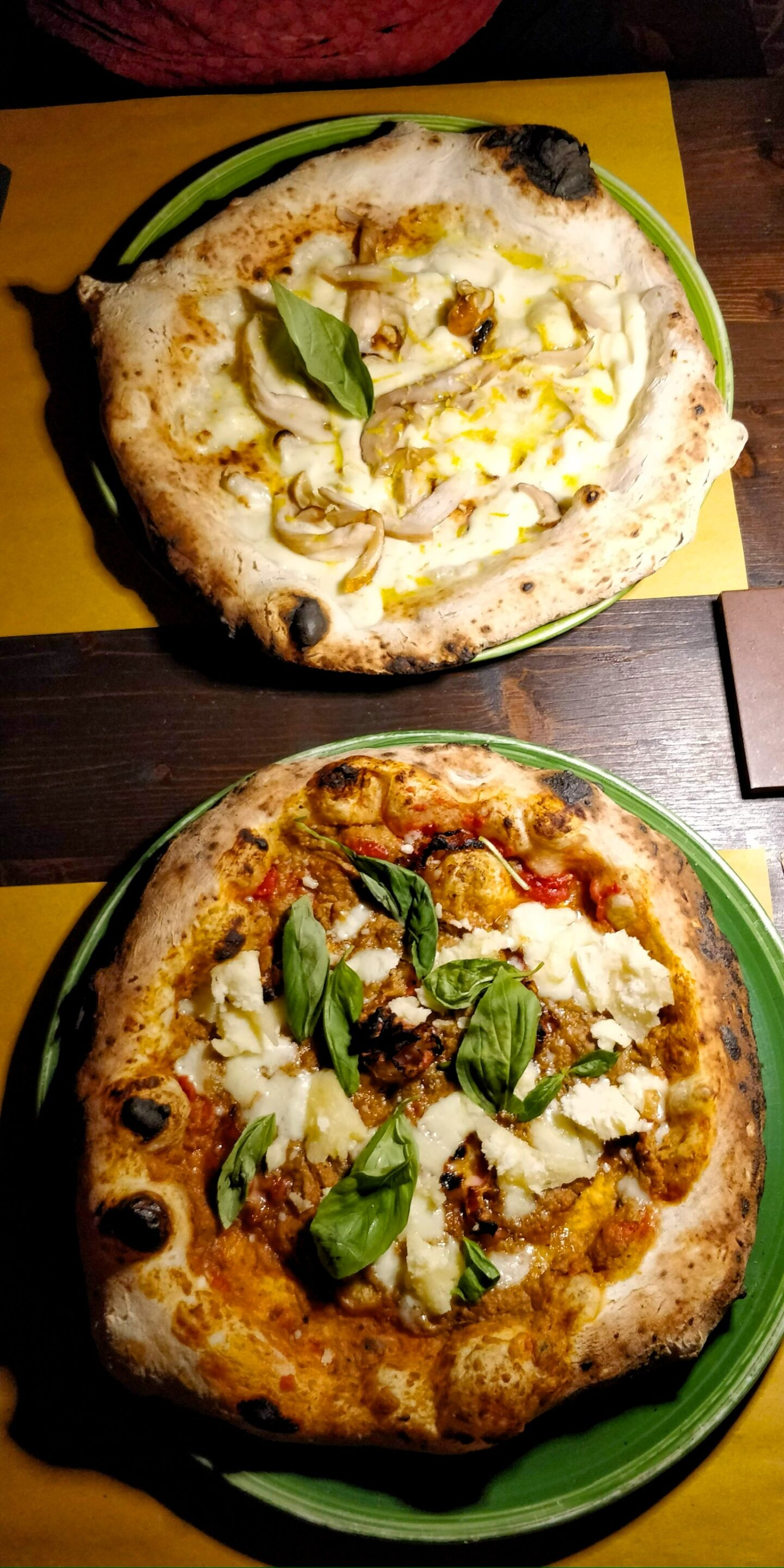La proposta comprende pizze classiche e speciali. Tra le pizze classiche non può mancare la Margherita fatta con pomodoro San Marzano, fiordilatte, basilico e olio evo; seguita dalla Capricciosa fatta con pomodoro San Marzano, fiordilatte, prosciutto cotto arrosto, carciofone, funghi, olive leccine al naturale e olio evo. Per quanto riguarda le pizze speciali invece, sono da menzionare la Profumo della Domenica fatta con ragù di carne, gel di carota arrosto al timo, cialda di pecorino scoppiato, basilico fresco, polvere di sedano, olio evo; la Km 10.355 fatta con fiordilatte, guacamole e maionese artigianali, alici, erba cipollina e zest di limone; e in fine la Scrocchiarella Molisana fatta con fiordilatte, patata alla brace schiacciata, pancetta molisana speziata in cottura, caciocavallo soffiato, chips di buccia di patata, olio al rosmarino e rosmarino fresco.