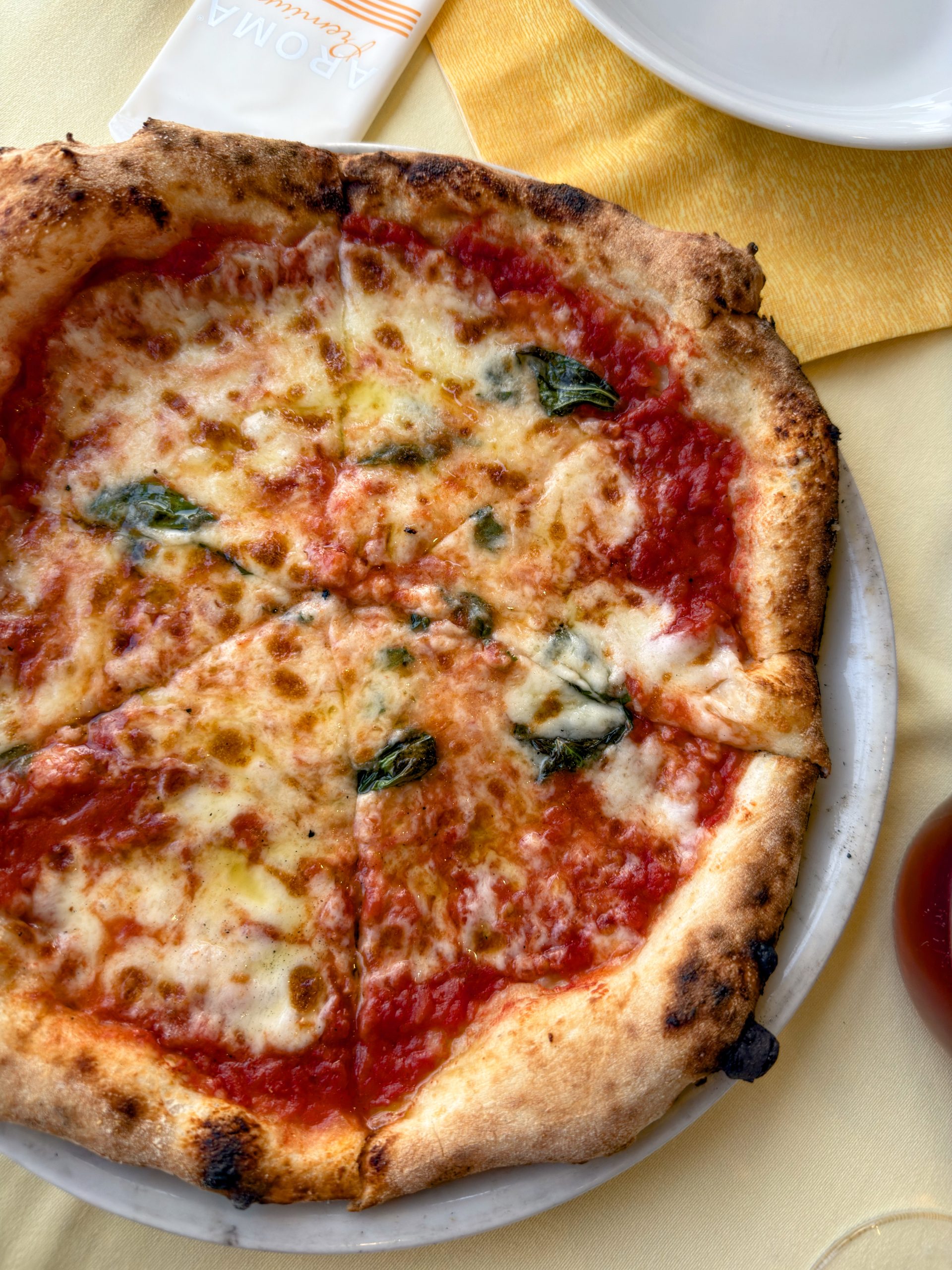 Immancabile la Margherita, realizzata con mozzarella, pomodoro, basilico, oppure la Prosciutto e Rucola, con base bianca, prosciutto crudo e appunto rucola, che va composta direttamente dai commensali al tavolo. Tra i primi spaghetti con le vongole, tra i dolci ad esempio il Tiramisù.