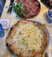 Il menu propone un’offerta piuttosto classica, dai primi ai secondi fino alla pizza, che si può scegliere tra una decina di proposte molto in linea con quelle di un ristorante italiano.