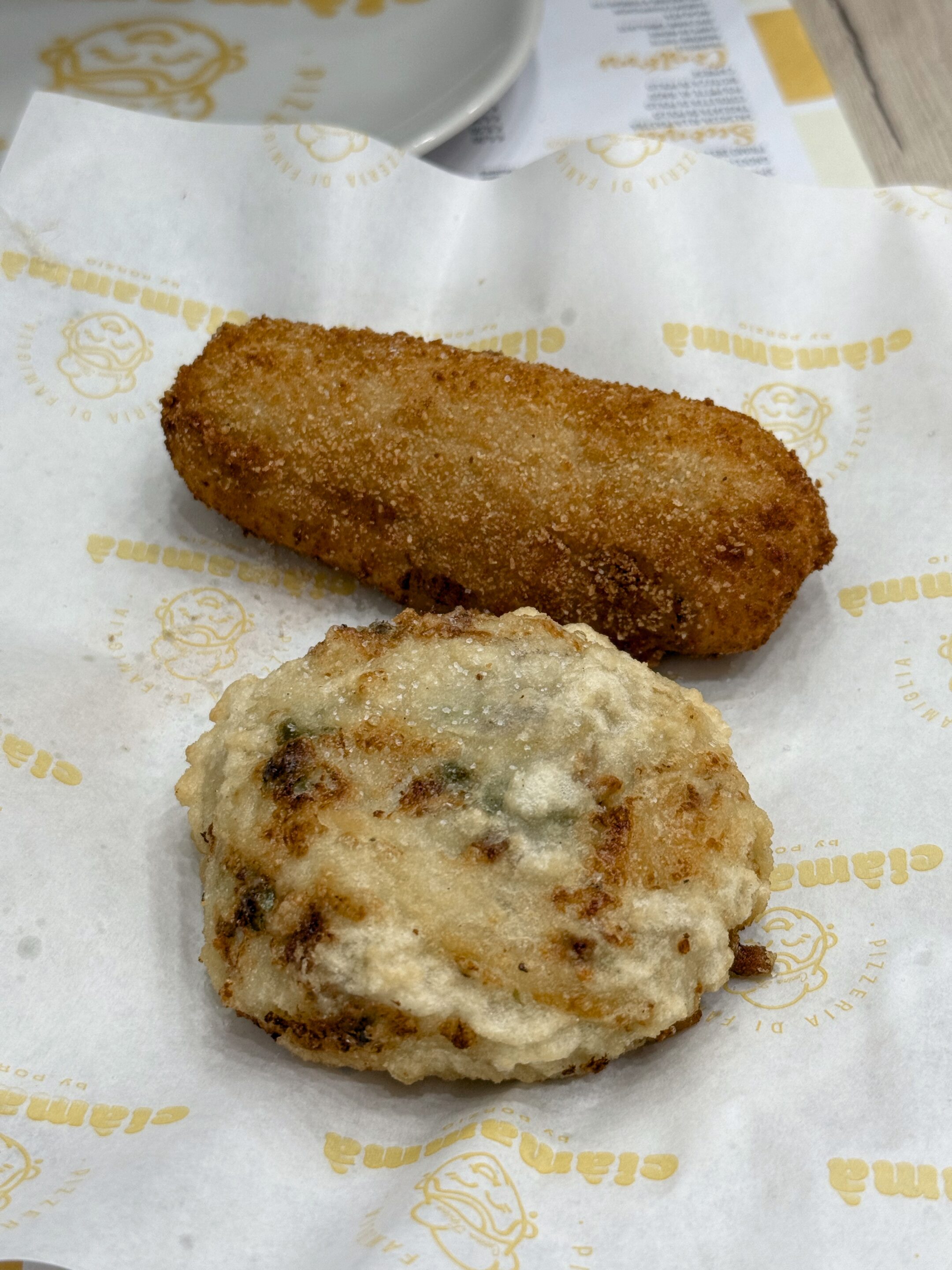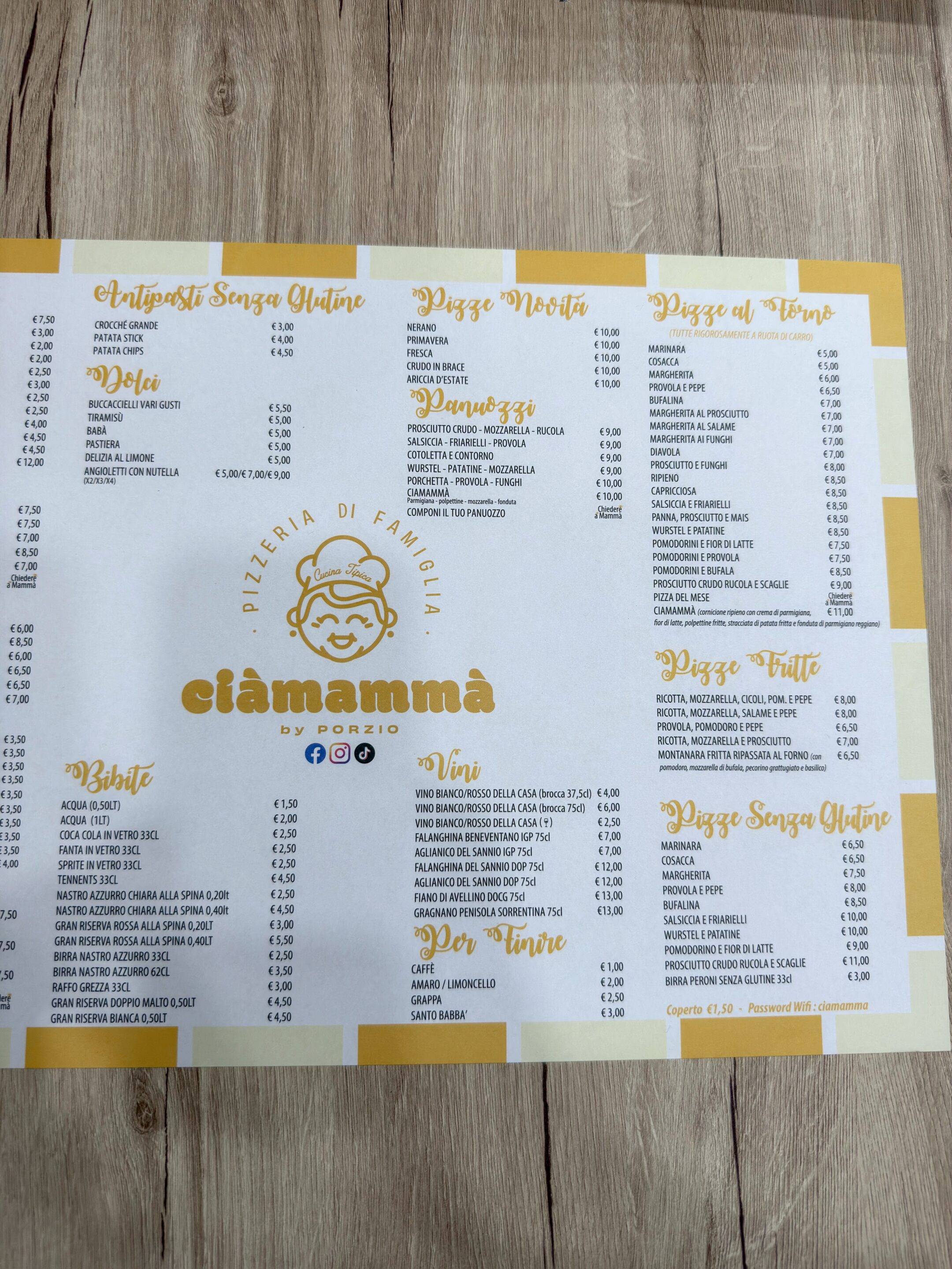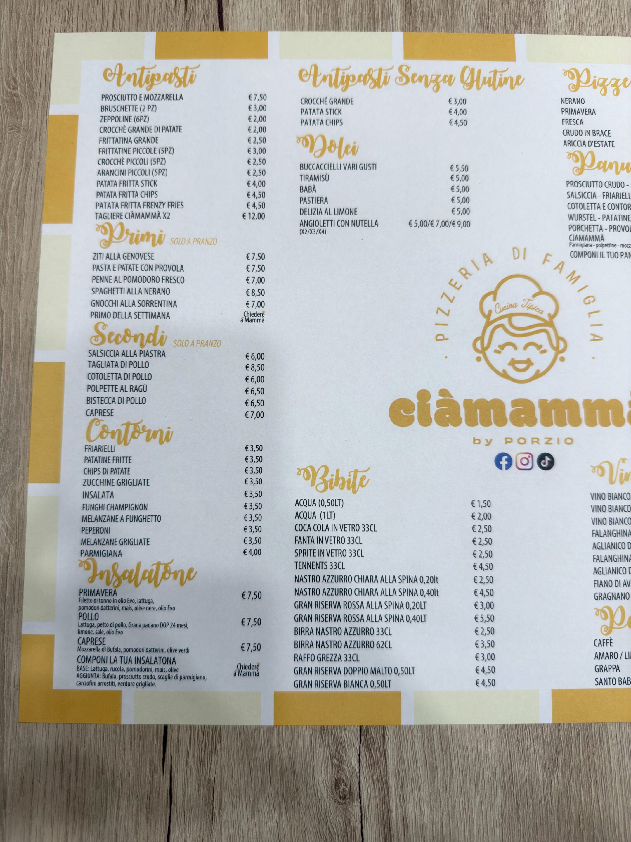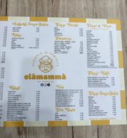 Ciàmammà, come dice il nome, vede la partecipazione attiva della madre di Errico Porzio. L’idea è quella di riproporre la Trattoria – Pizzeria di 50 anni fa dove si proponeva, oltre che la pizza, anche piatti della cucina napoletana tradizionale. La proposta in menu comprende infatti primi piatti della tradizione come l’immancabile Pasta, patate e provola, gli ziti alla genovese, gli Gnocchi alla Sorrentina, e una selezione di secondi tra cui le classiche Polpette al Ragù. Primi e secondi piatti però sono disponibili solo a pranzo in quanto la sera il locale diventa Pizzeria con una proposta di pizze rigorosamente a ruota di carro. La scelta è ampia, si possono contare circa 21 pizze, tra cui quelle legate alla tradizione come l’immancabile Margherita fatta con pomodoro, fiordilatte, basilico e olio evo, la Provola e Pepe e la Salsiccia e Friarielli; compresa la Special Ciàmammà con cornicione ripieno con crema di parmigiana, fiordilatte, polpettine fritte, stracciata di patata fritta e fonduta di parmigiano reggiano.