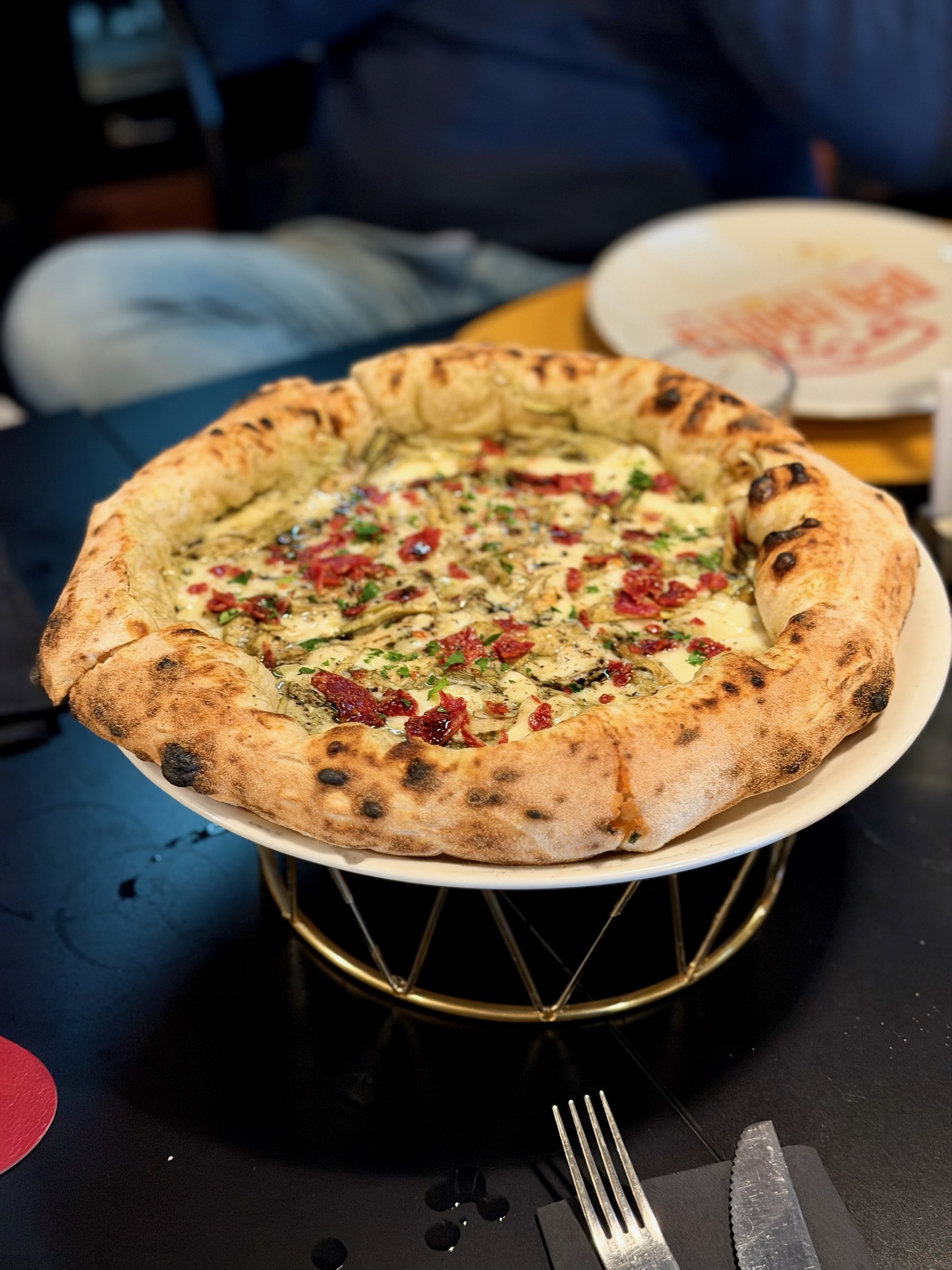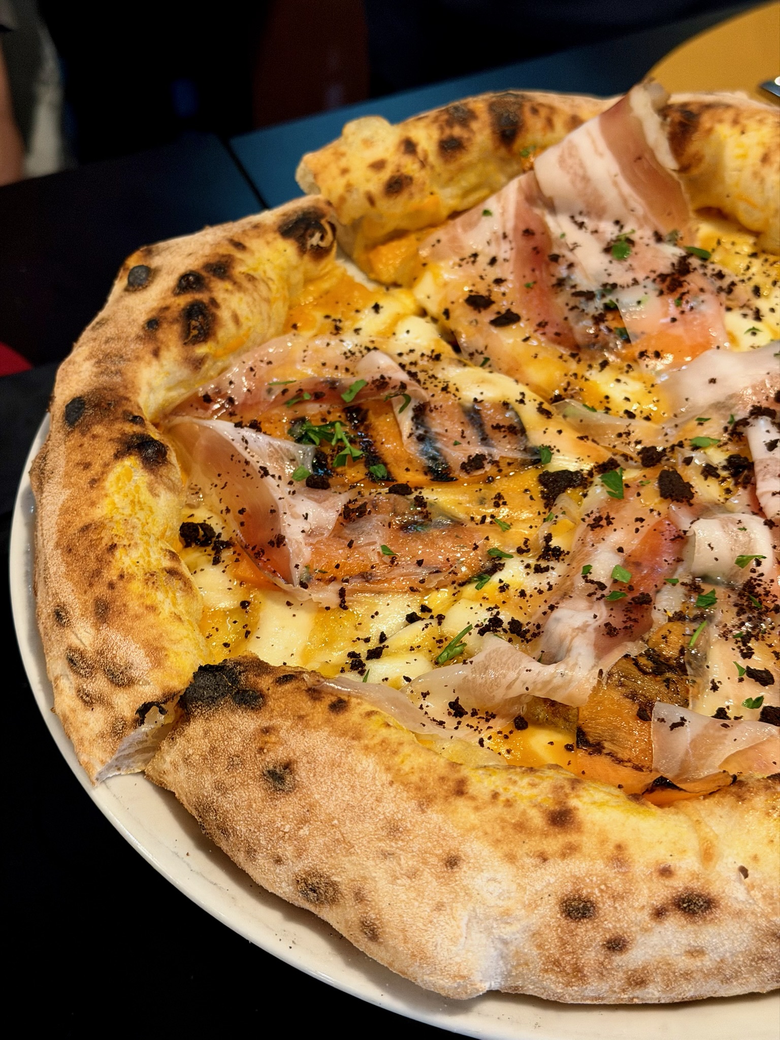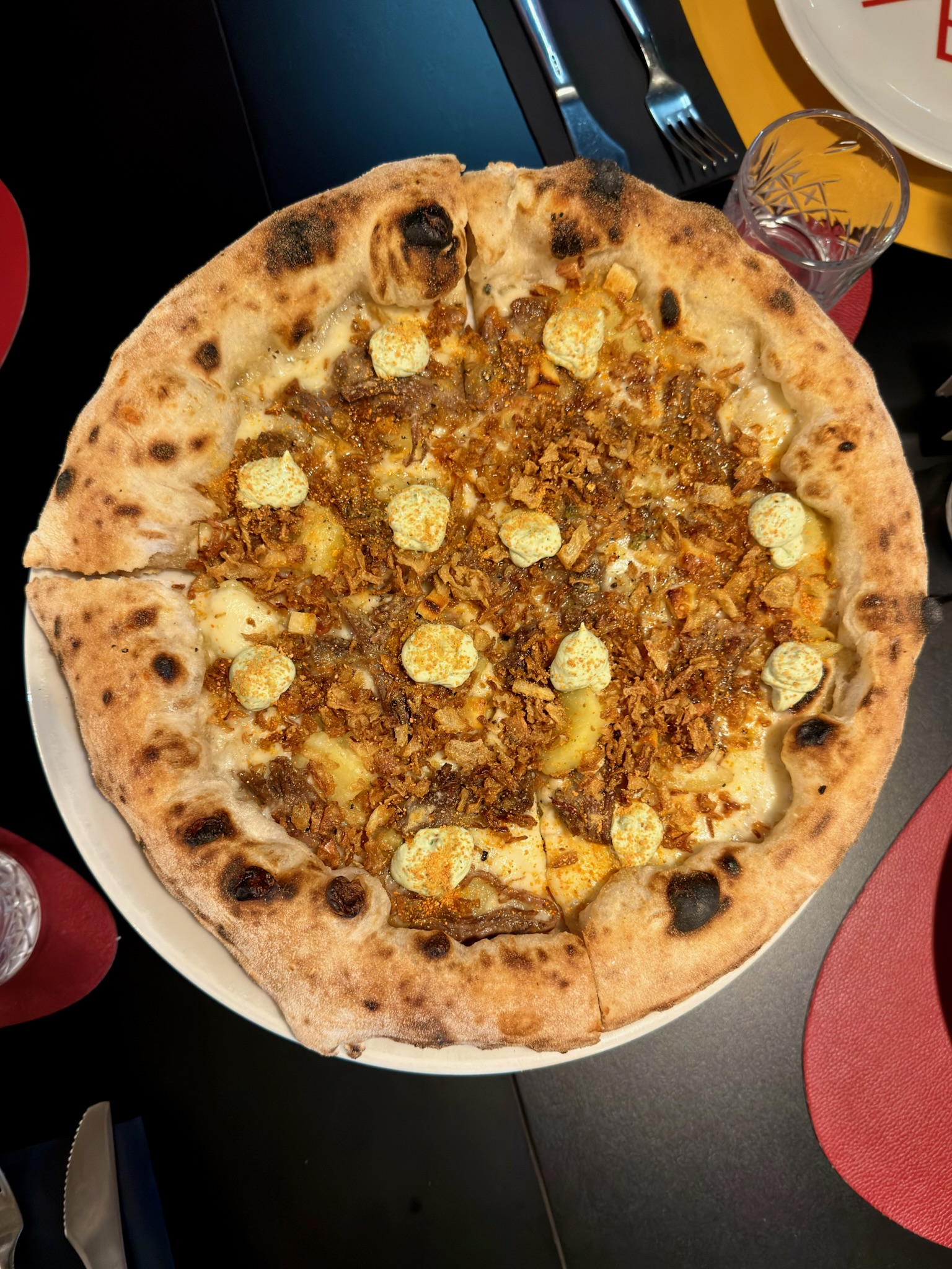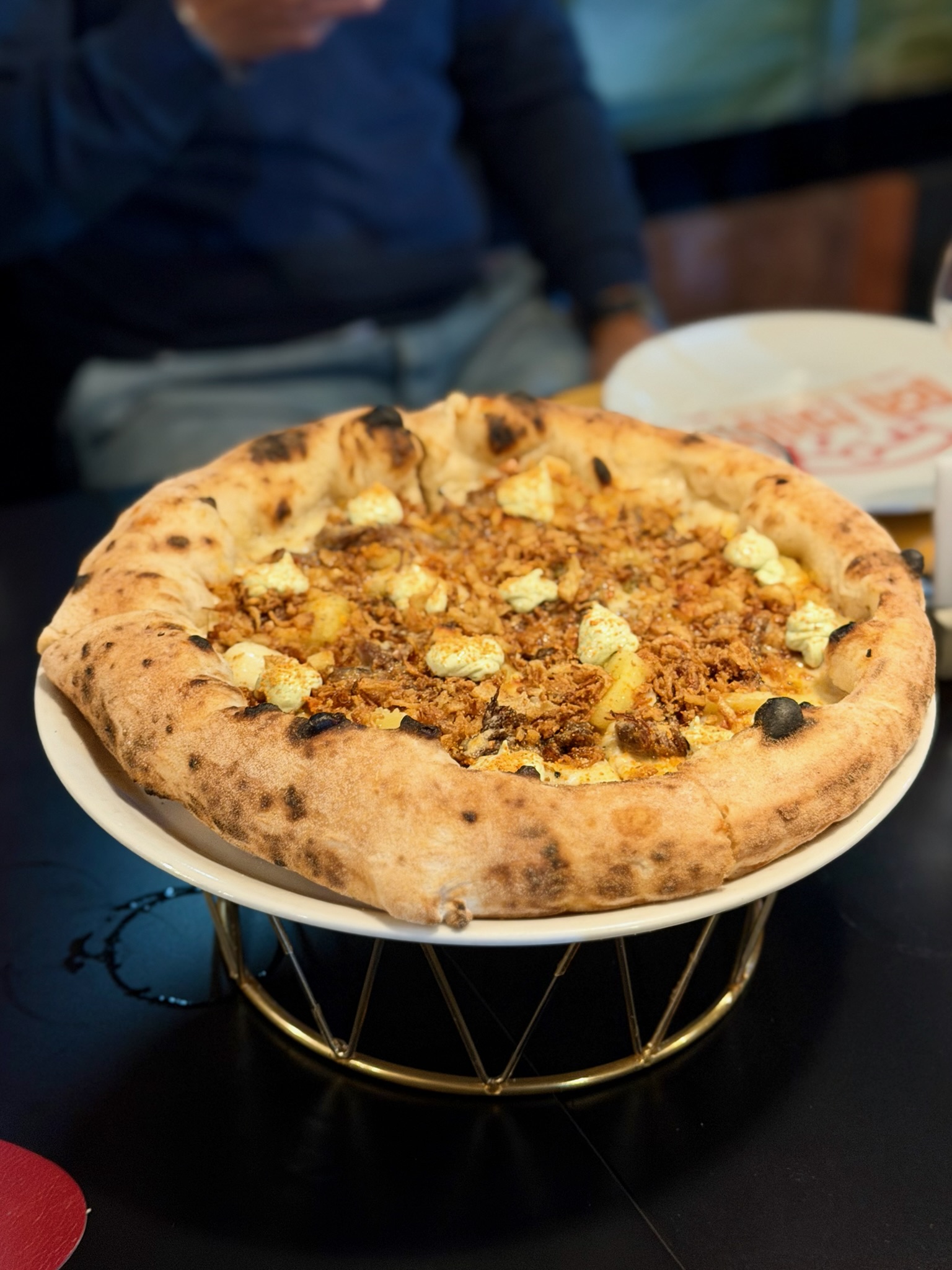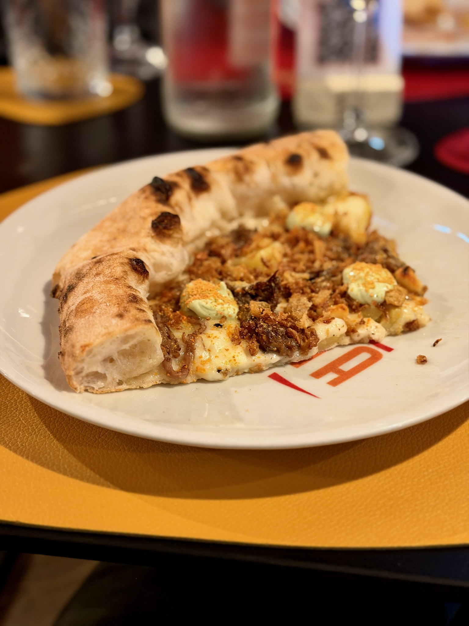 La proposta comprende antipasti, pizze tonde classiche, pizze in tripla cottura e dolci. Tra gli antipasti è da menzionare il Croccoscagliuzziello, polenta cotta in maniera tradizionale con cicoli di maiale, sale, pepe e pecorino; tra le pizze classiche invece non può mancare la Margherita fatta con pomodoro pelato San Marzano, fiordilatte e olio evo. Altre pizze degna di nota sono: la Carciofi Arrostiti fatta con crema di carciofi, provola affumicata, pecorino grattugiato scorza nera, aglio, pepe, carciofi a fette e salame croccante; e la Pizza Brodo, ideata da Vicenzo Sannino, fatta con manzo cotto lentamente, patate, fiordilatte, scorzette di Parmigiano, carote in polvere, cipolla croccante e maionese al sedano. Anche i dolci sono presenti, sia come dessert classici, sia come lievitati come nel caso della Graffa con crema di latte, caramello e lampone.
