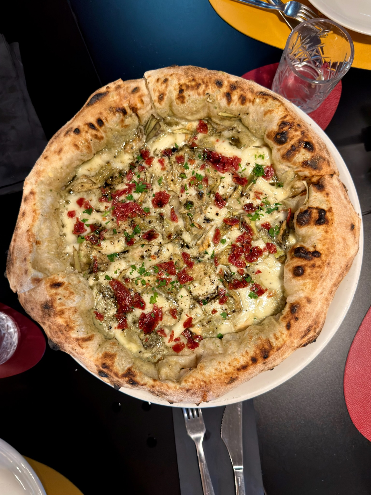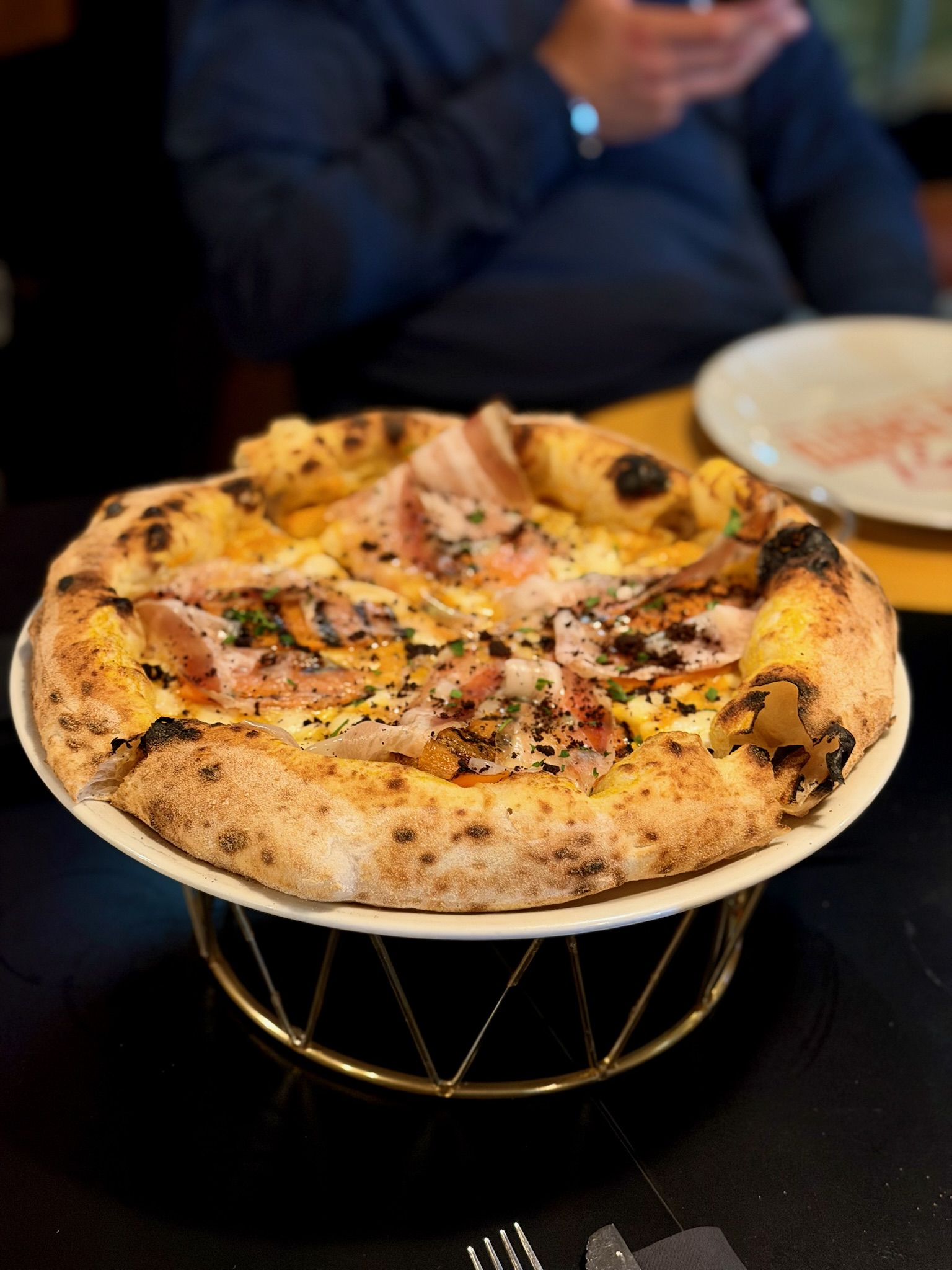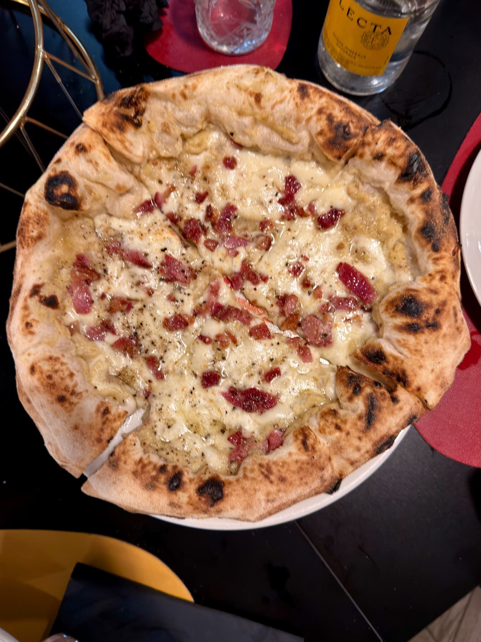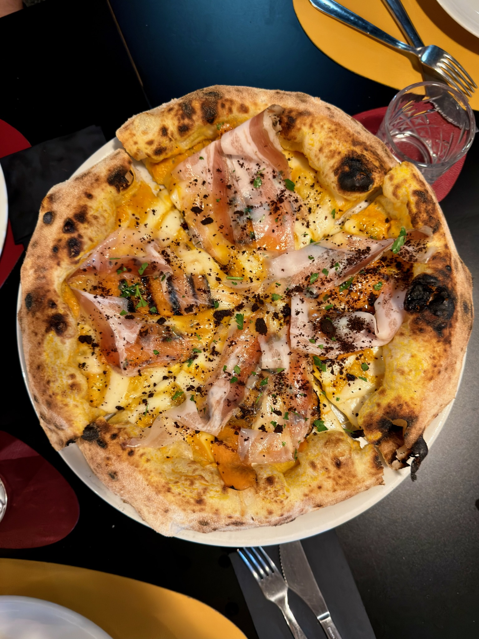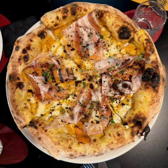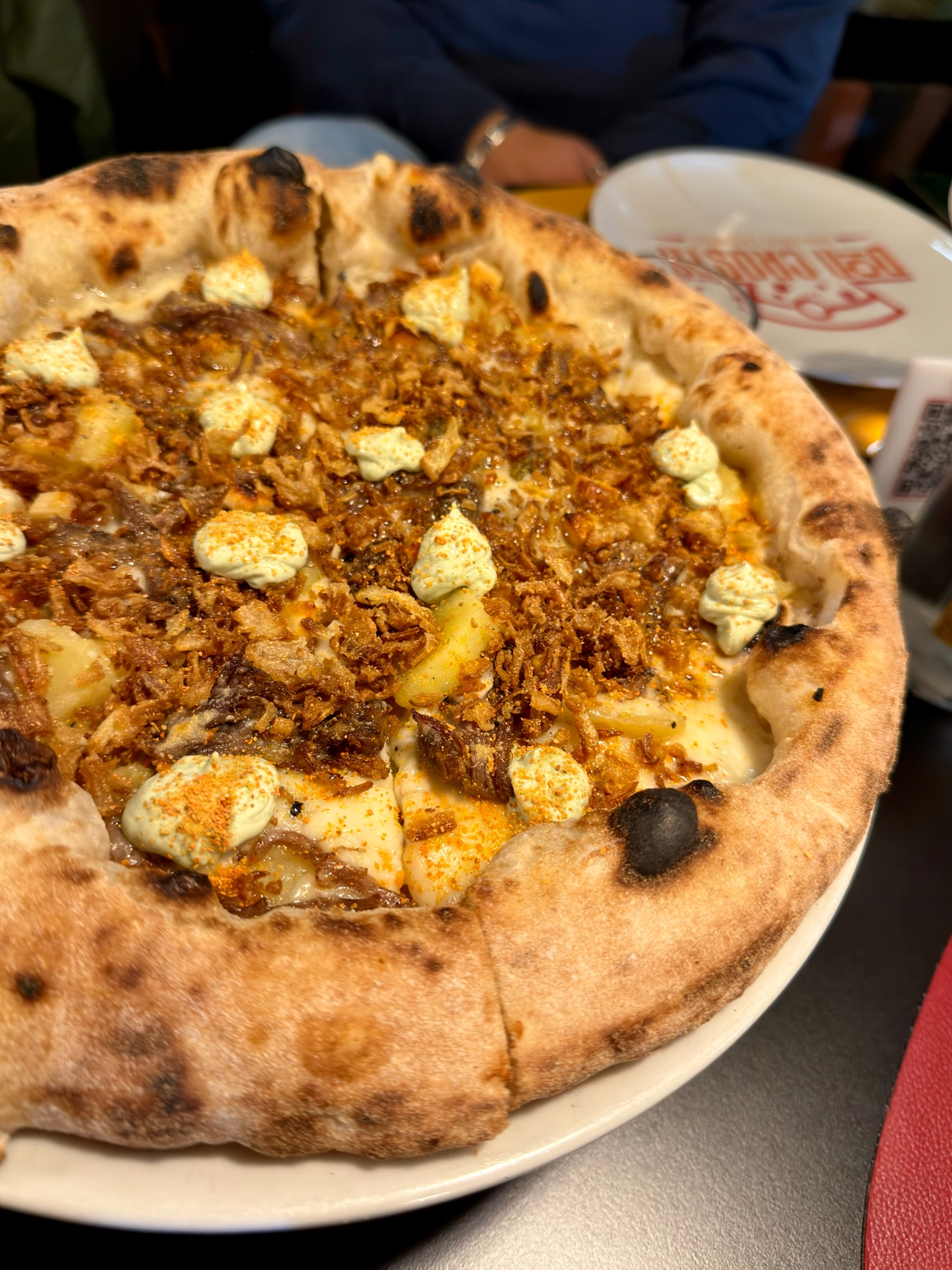 La proposta comprende antipasti, pizze tonde classiche, pizze in tripla cottura e dolci. Tra gli antipasti è da menzionare il Croccoscagliuzziello, polenta cotta in maniera tradizionale con cicoli di maiale, sale, pepe e pecorino; tra le pizze classiche invece non può mancare la Margherita fatta con pomodoro pelato San Marzano, fiordilatte e olio evo. Altre pizze degna di nota sono: la Carciofi Arrostiti fatta con crema di carciofi, provola affumicata, pecorino grattugiato scorza nera, aglio, pepe, carciofi a fette e salame croccante; e la Pizza Brodo, ideata da Vicenzo Sannino, fatta con manzo cotto lentamente, patate, fiordilatte, scorzette di Parmigiano, carote in polvere, cipolla croccante e maionese al sedano. Anche i dolci sono presenti, sia come dessert classici, sia come lievitati come nel caso della Graffa con crema di latte, caramello e lampone.