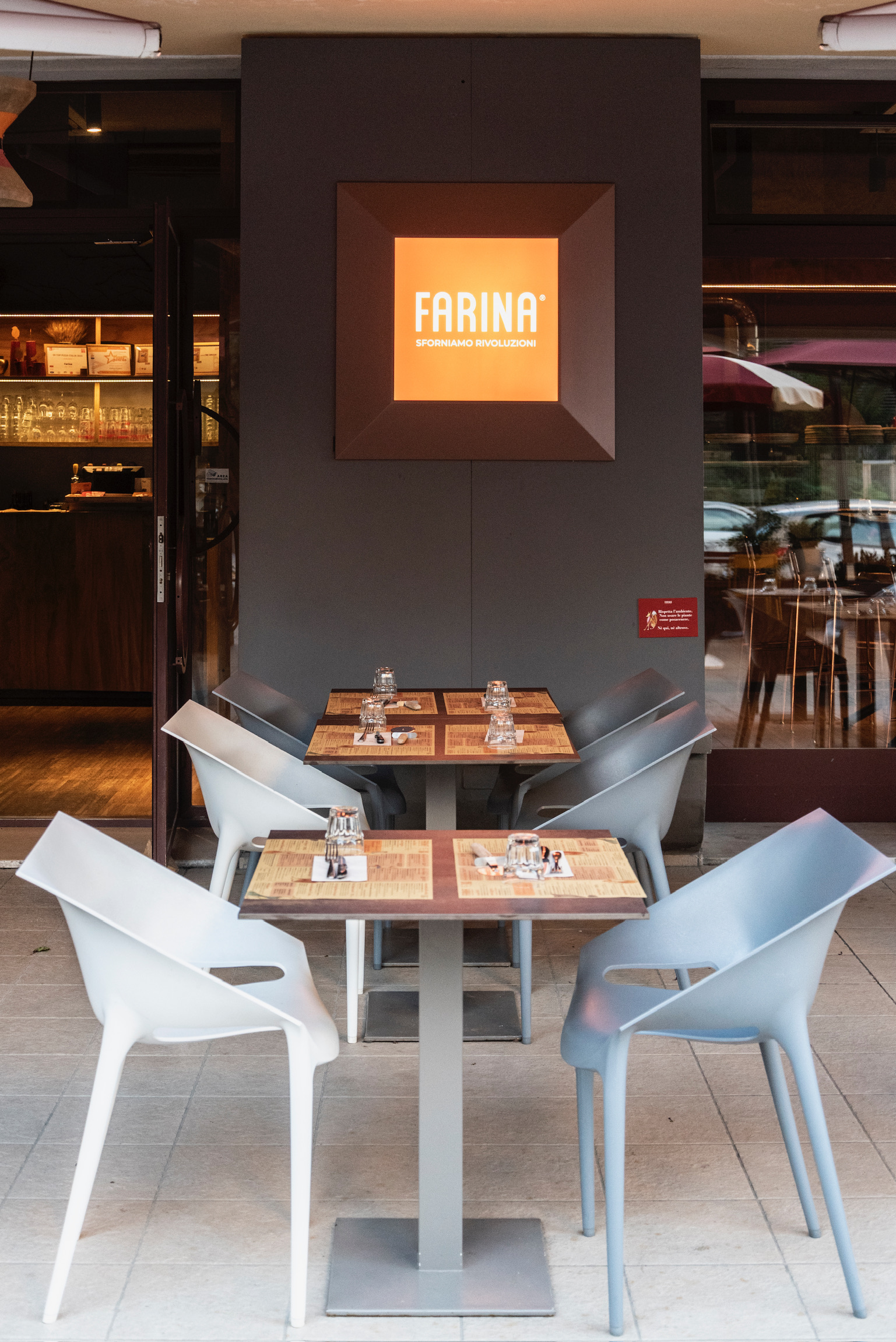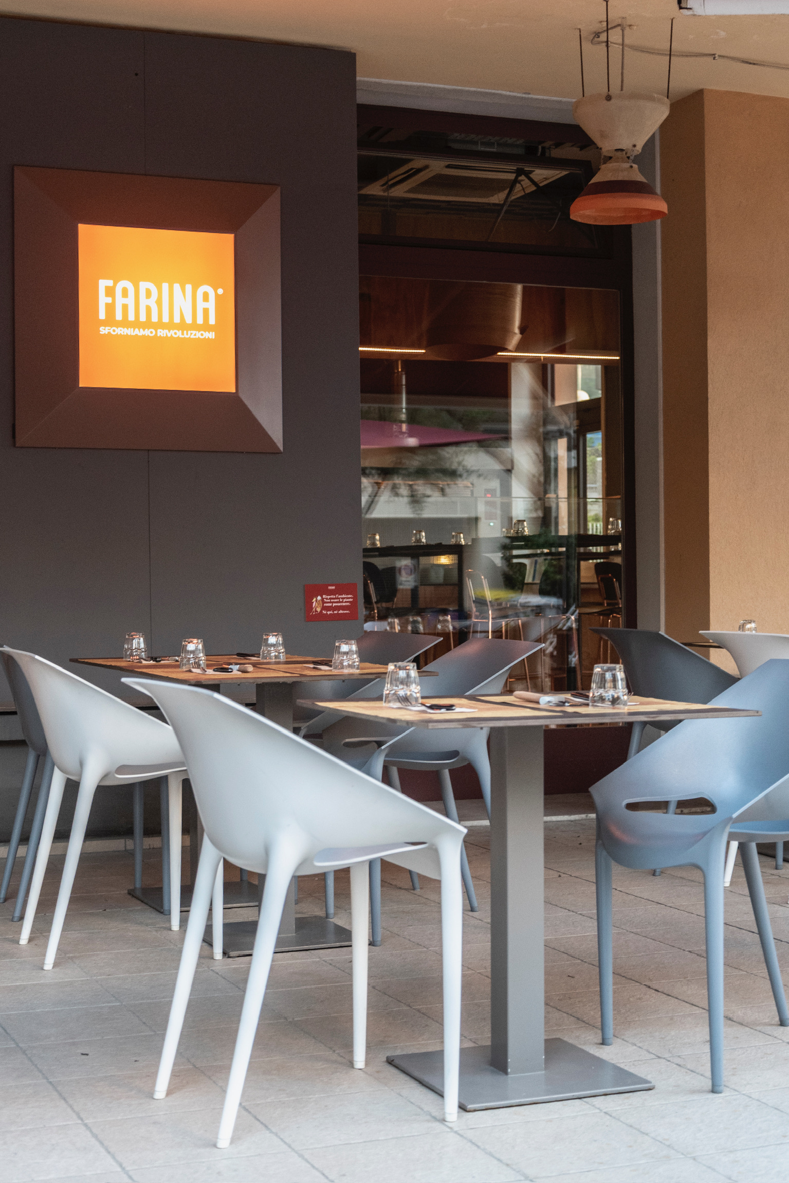 La pizzeria Farina, a pochi passi dal lungomare di Pesaro, è caratterizzata dall’utilizzo di prodotti a km zero per la realizzazione di tutti i piatti che vengono serviti in tavola; la scelta delle materie prime è maniacale e dove possibile ricade in prodotti del territorio Marchigiano. Il locale presenta una grande sala con un buon numero di coperti ai quali si aggiungono quelli della zona esterna; lo stile è minimal, dall’aspetto fresco e arioso.