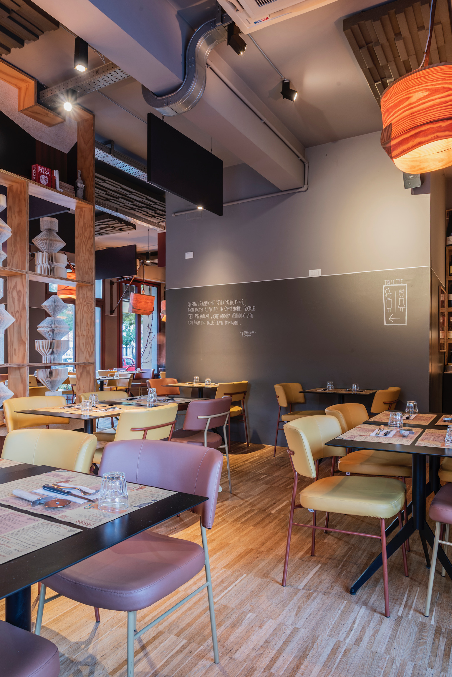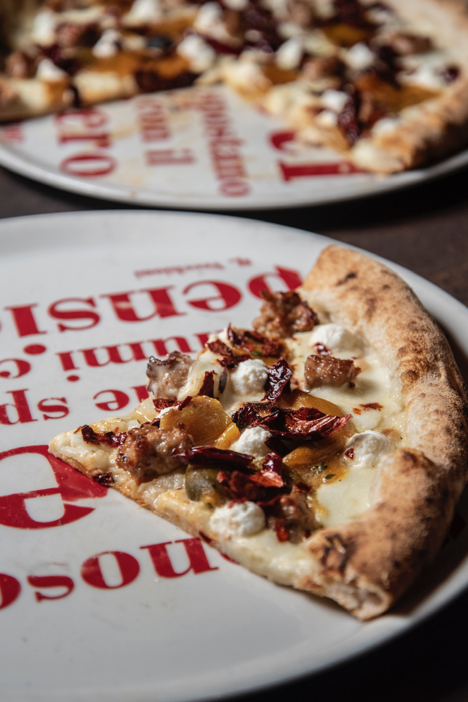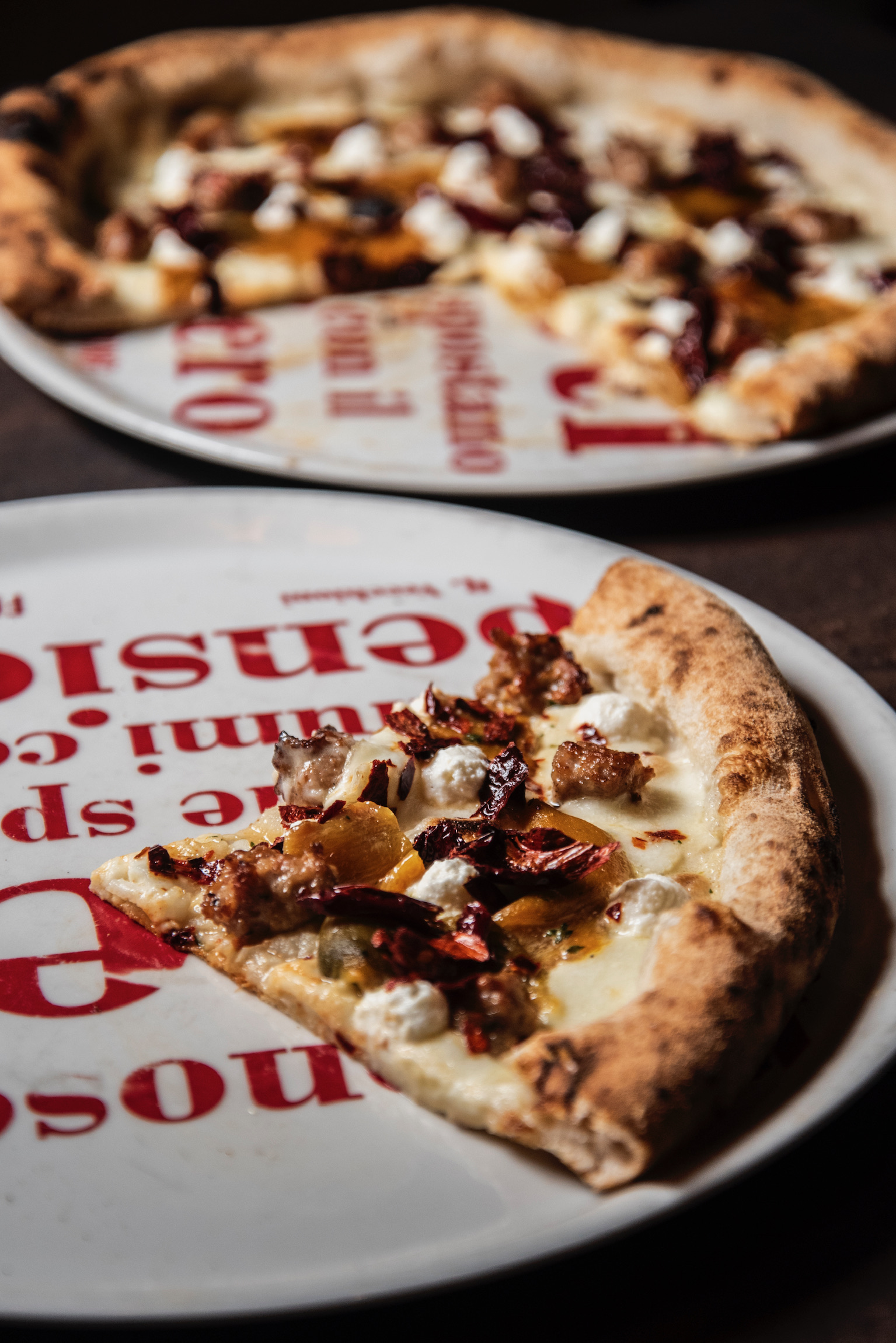 dalla Pizza al padellino (alta e ariosa), a quella Croccante (variante al forno elettrico), seguita dalla pizza sei spicchi (alta e focacciosa), e la tonda classica. Per quanto riguarda i topping invece, gli abbinamenti sono ben studiati e particolari; tra le pizze classiche degna di nota è I Peperoni Fanno Opposizione fatta con fiordilatte, salsiccia marchigiana, peperoni gialli, fiocchi di ricotta di pecora marchigiana e peperone crusco, e ovviamente la pizza Rossini fatta con pomodoro, uova sode e maionese, tipica di Pesaro. La Lisa Se Veri Son i Suoi Occhi fatta con fiordilatte, stracciatella di burrata e prosciutto crudo stagionato Marchigiano, spicca tra le sei spicchi alte e focacciose.