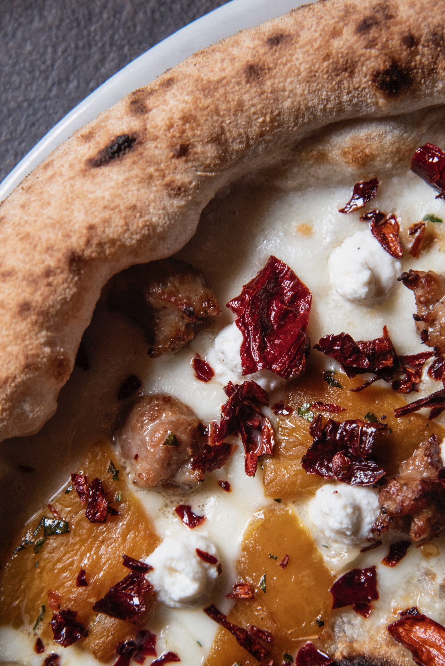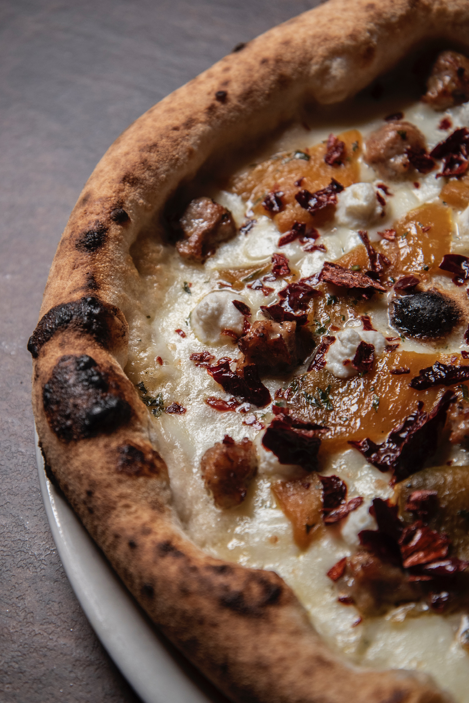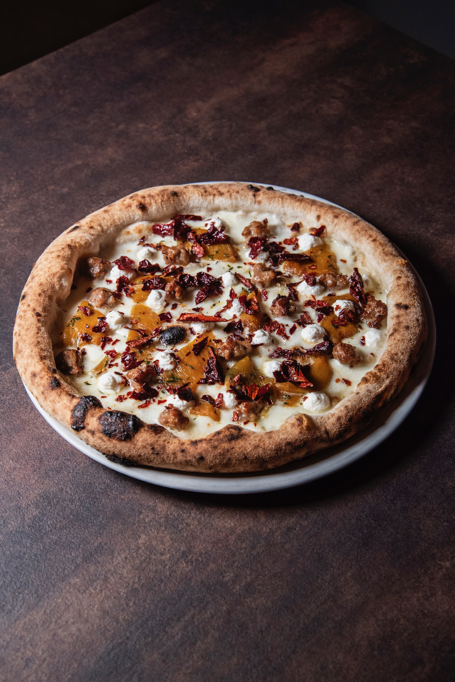 dalla Pizza al padellino (alta e ariosa), a quella Croccante (variante al forno elettrico), seguita dalla pizza sei spicchi (alta e focacciosa), e la tonda classica. Per quanto riguarda i topping invece, gli abbinamenti sono ben studiati e particolari; tra le pizze classiche degna di nota è I Peperoni Fanno Opposizione fatta con fiordilatte, salsiccia marchigiana, peperoni gialli, fiocchi di ricotta di pecora marchigiana e peperone crusco, e ovviamente la pizza Rossini fatta con pomodoro, uova sode e maionese, tipica di Pesaro. La Lisa Se Veri Son i Suoi Occhi fatta con fiordilatte, stracciatella di burrata e prosciutto crudo stagionato Marchigiano, spicca tra le sei spicchi alte e focacciose.