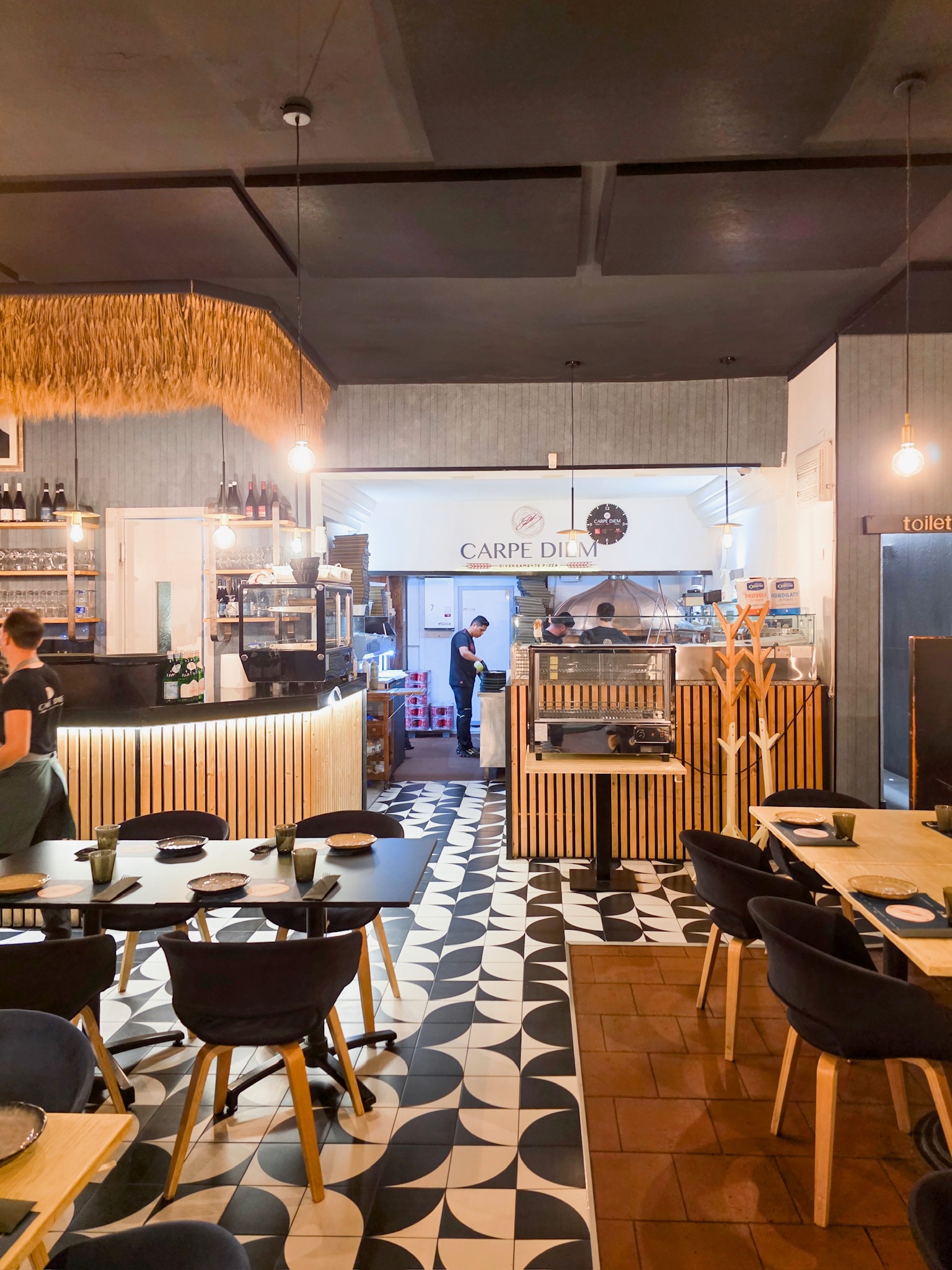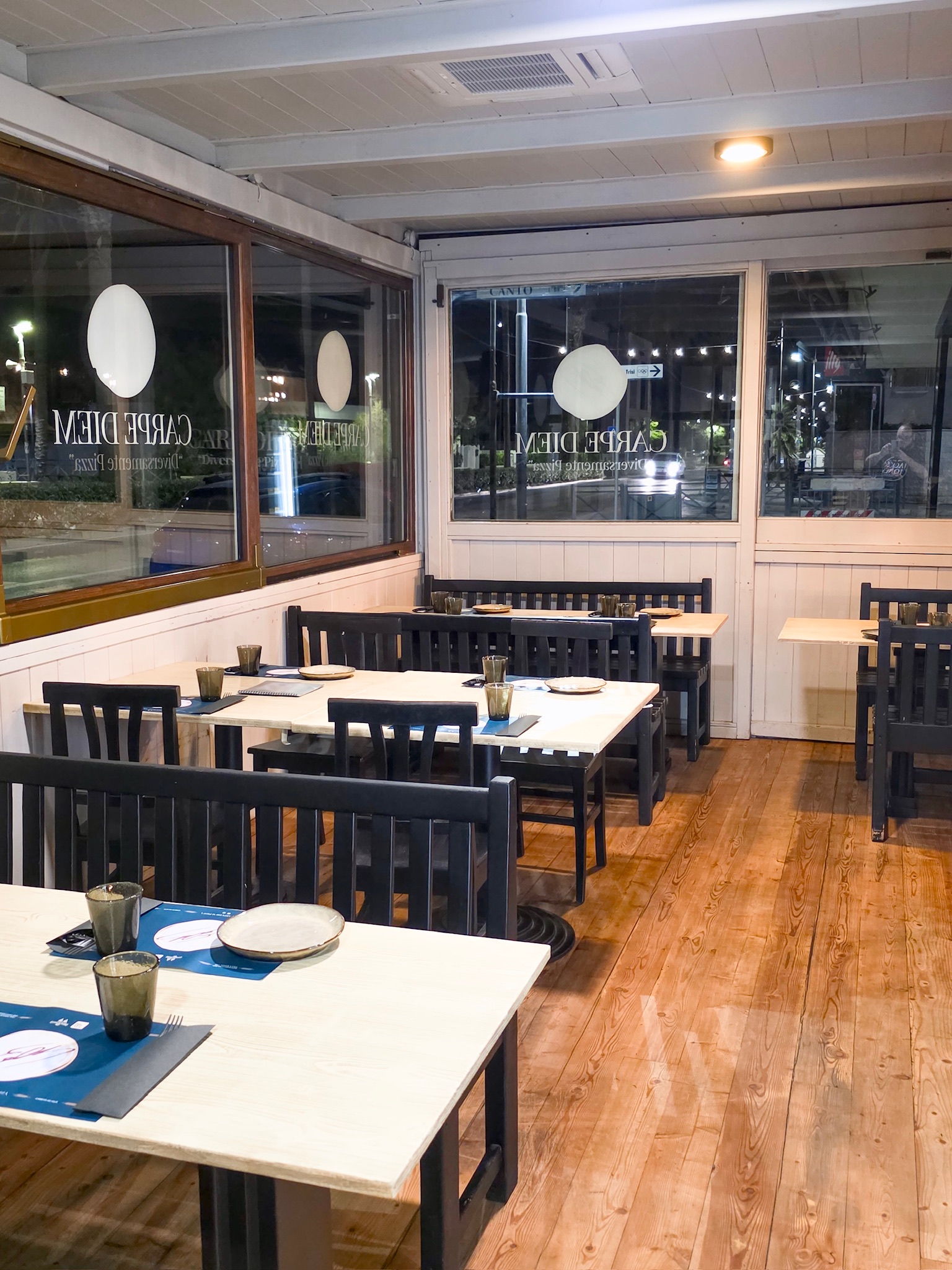 Il progetto Carpe Diem inizia a Montesilvano nel 2012 dall’intuizione di Emilio Brighigna, pizzaiolo napoletano d’origine e abruzzese d’adozione e di sua moglie Angelica De Berardinis, e prosegue con l’apertura di altre quattro sedi in tutte le province abruzzesi. Il locale, che affaccia sul mare adriatico, presenta una grande sala con stile moderno nella quale c’è anche un angolo dedicato alle carni con tagli importanti che vengono frollati per diversi giorni.