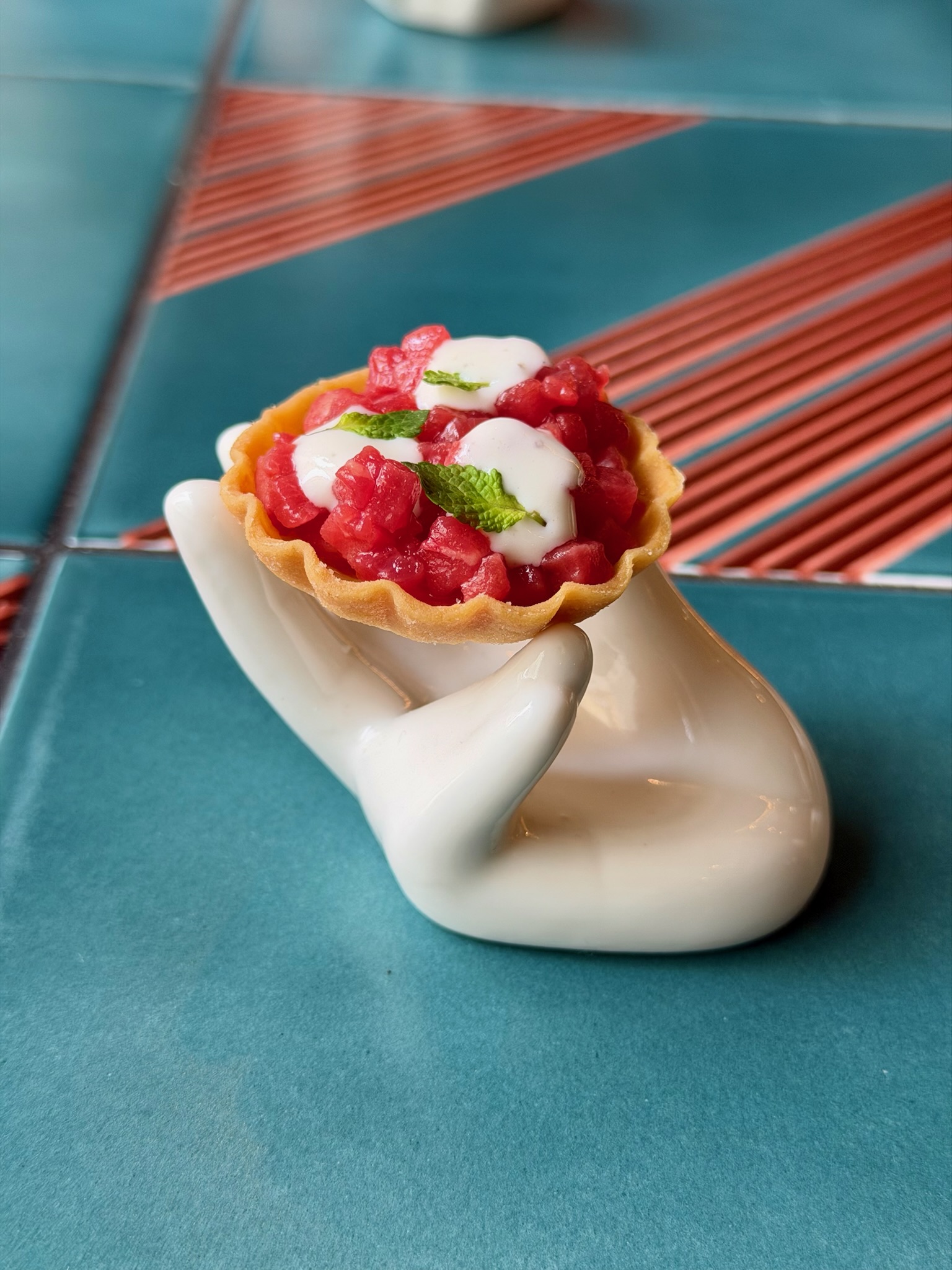 Avenida Calò è il progetto di Francesco Calò, che dopo 14 anni a Vienna torna in Italia, a Roma, con un idea inquadrata in tutte le sue componenti. Il locale, elegante e accogliente, è di pregio nelle finiture e nell’atmosfera generale, dall’arredamento in legno alla scelta dei colori presenti in sala, fino alla qualità della carta dei vini che presenta varietà e quantità.