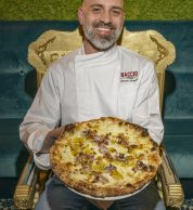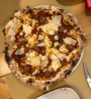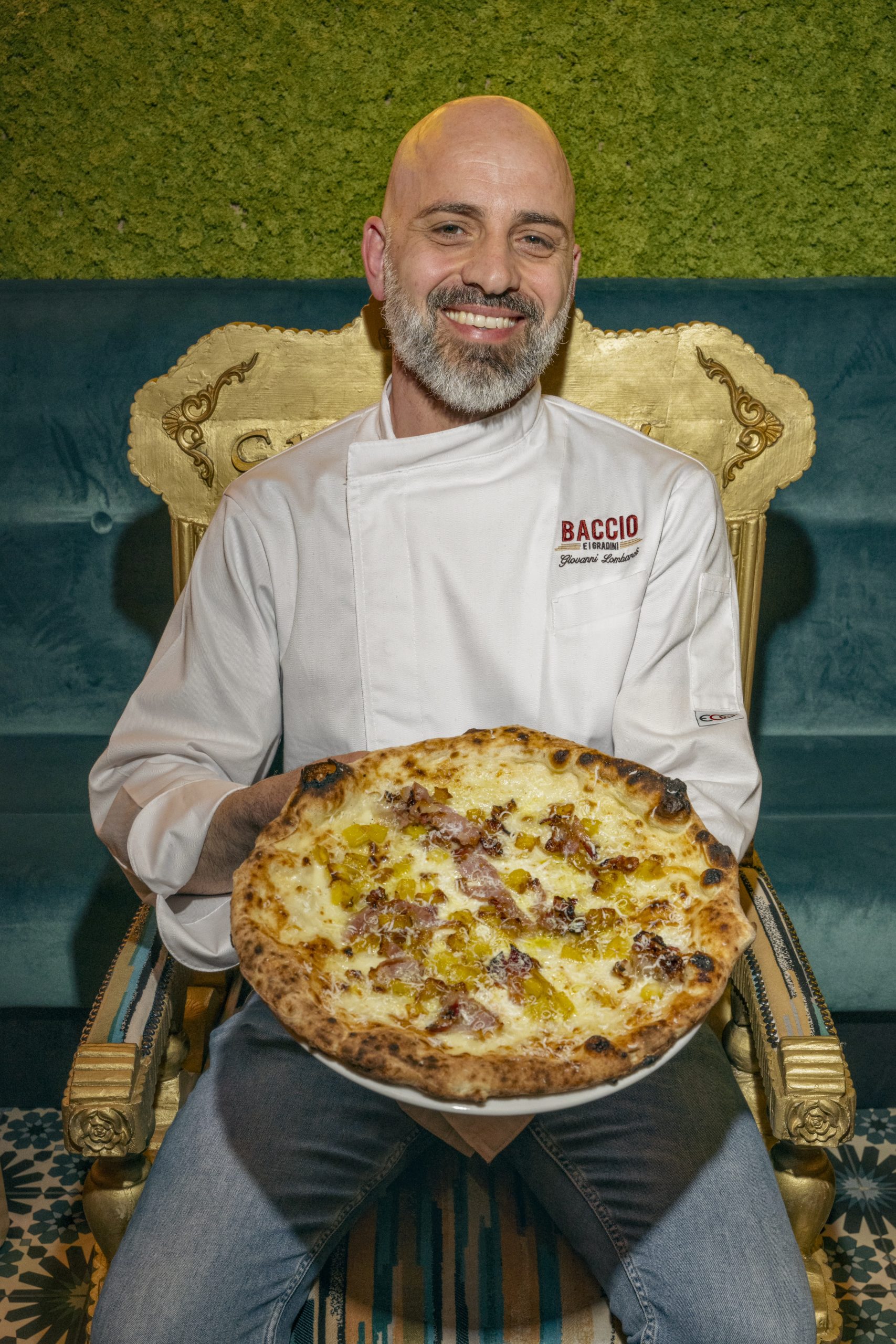 Fabio Spada è l’ideatore, mentre al comando della pizzeria Giovanni Lombardi, il pizzaiolo con già diverse esperienze in città. Il locale presenta 75 coperti interni e un dehors esterno; qui a fare da padrone è il legno, dai dettagli delle pareti a quelli del bancone, oltre a una grande libreria realizzata con cassette di frutta e verdura. Per quanto riguarda la pizza proposta in menu, ci sono le classiche come la Marinara di Baccio fatta con salsa di pomodoro datterino arrostito, pomodori ciliegino infornati, alici di Cetara, olive di Gaeta, crema di aglio e olio all’origano; e la Margherita di Baccio fatta con crema di datterino arrostito, stracciata di Andria, pesto di basilico e olio evo. Oltre alle classiche, tra le pizze che presentano preparazioni più complesse, è da citare la Ragù Napoletano fatta con sugo di stracotto di manzo, polpette, provola, provolone del monaco e olio evo. Nella sezione antipasti invece, da citare sono i cosiddetti gradini, tipici della pizzeria, delle bruschette ottenute con l’impasto della pizza, cotti prima al vapore e poi nel forno a legna come nel caso di quello fatto con Cicerchie della Tuscia, cavolo nero e olio.