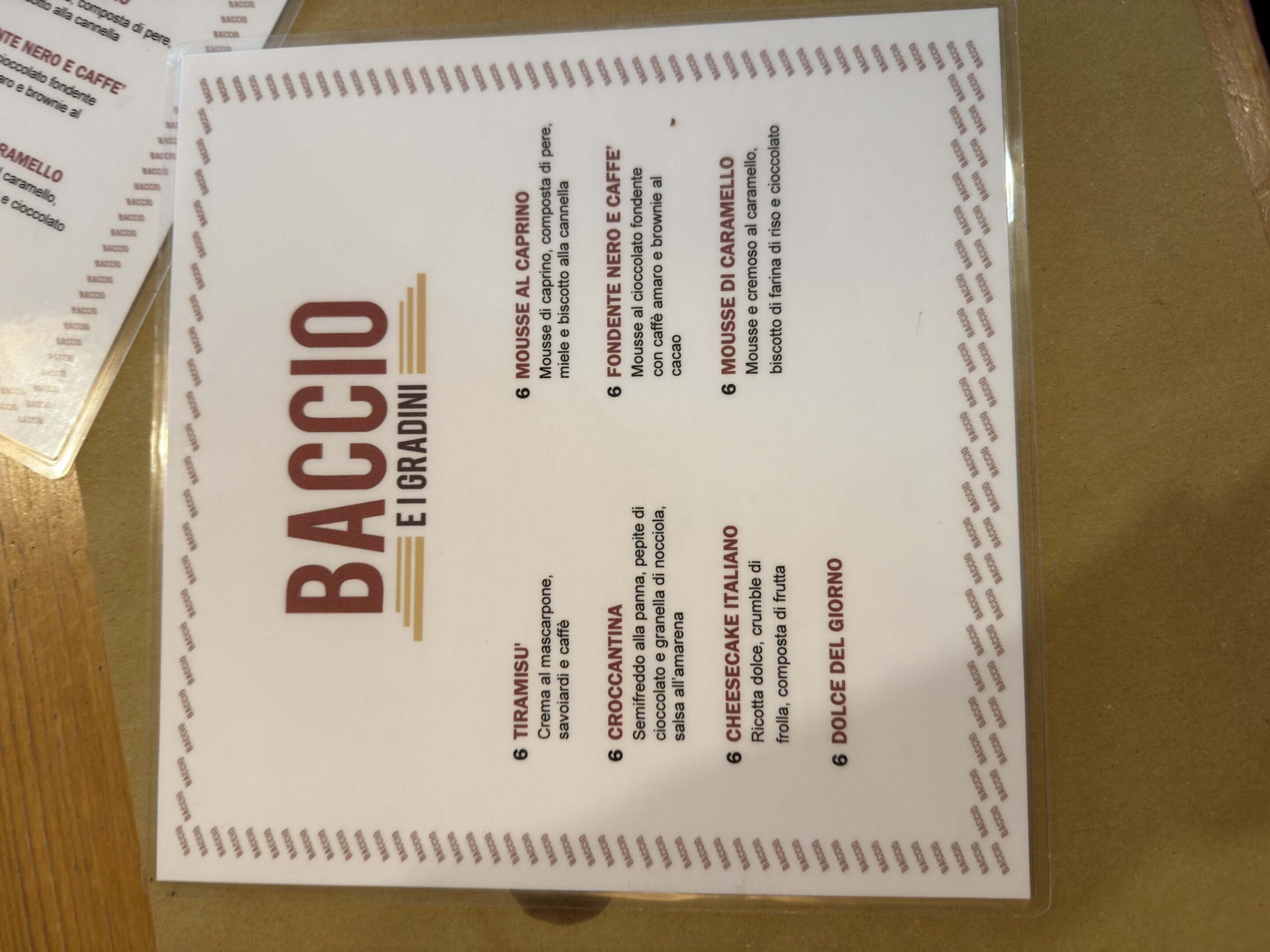 Il locale Baccio e i gradini, si trova a Roma e si inserisce nel panorama romano come pizzeria di quartiere, partendo già dal nome. Gli habitué della zona, infatti, conosceranno di certo la scalinata e i gradini dell’adiacente via Baccio Pontelli, una sorta di punto di ritrovo, quasi un riferimento geografico per i residenti.