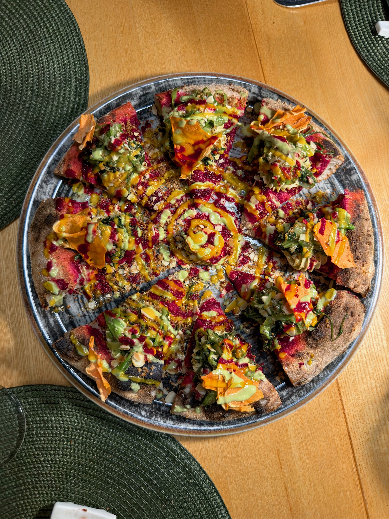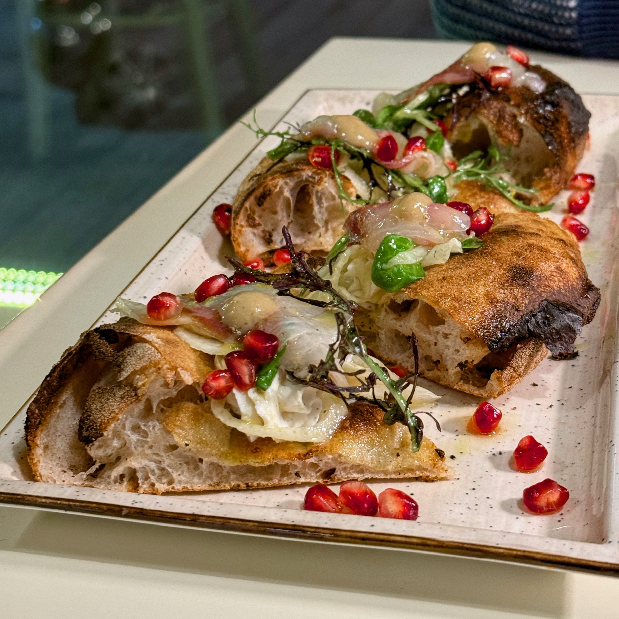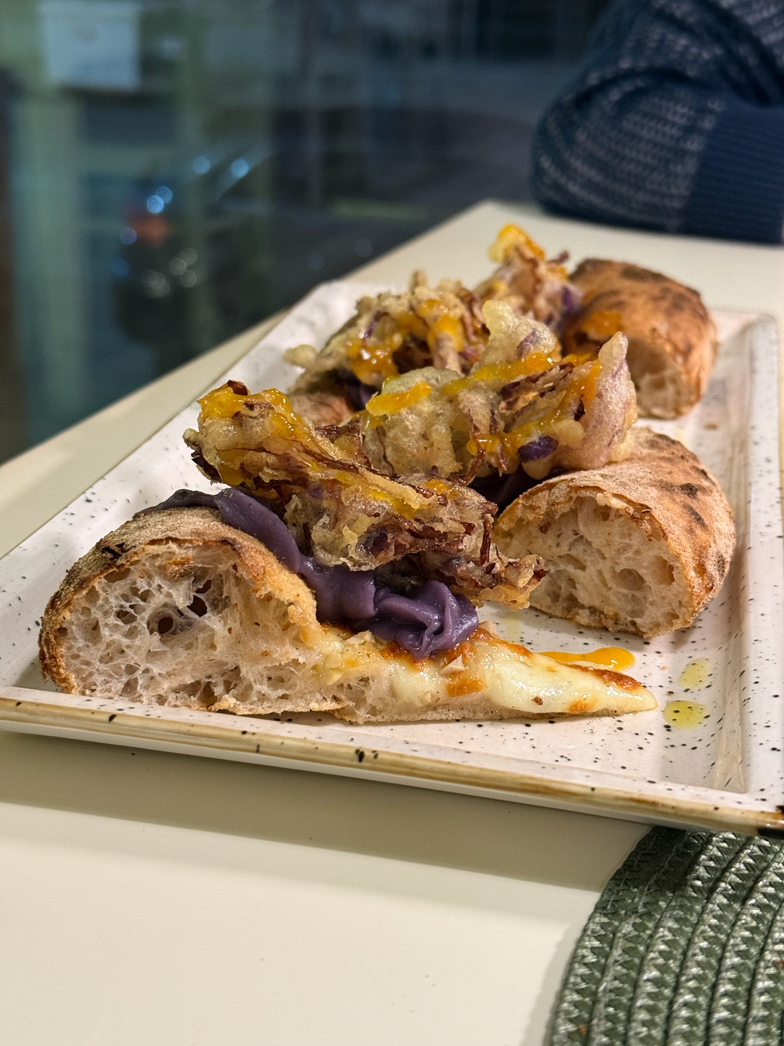 La proposta comprende: antipasti fritti, le classiche di Mater, le pizze stagionali , e le sapore di mare. Tra gli antipasti spiccano le Polpette Mater, fatte con mortadella artigianale, macinato misto e fiordilatte, servite su maionese di soia e olive; mentre tra le pizze della sezione mare degne di nota sono la Nordika, fatta con ricotta artigianale aromatizzata al pepe nero, julienne di insalata, carpaccio di salmone selvaggio marinato con limone, gel di cipolla rossa, pepe rosa, olio evo; e la Gambero Guacamole, fatta con guacamole di avocado e passion fruit con pepe rosa e lime, gambero rosso di Mazara, olio evo e polvere di carapace. Tra le pizze classiche di Mater non può mancare la Sauris, fatta con stracciata pugliese rustica di tartufo estivo, guanciale Sauris, pomodorino caramellato e olio evo; seguita dalla Fior di Cappero, fatta con erbe aromatiche, patata dolce, misticanza di campo, salsa tonnata, polvere di cappero e pomodoro semidry. Infine anche i dolci sono presenti, tra cui lo spicchio dolce con impasto brioche disponibile in due versioni: con namelaka al pistacchio o con crema pasticcera.