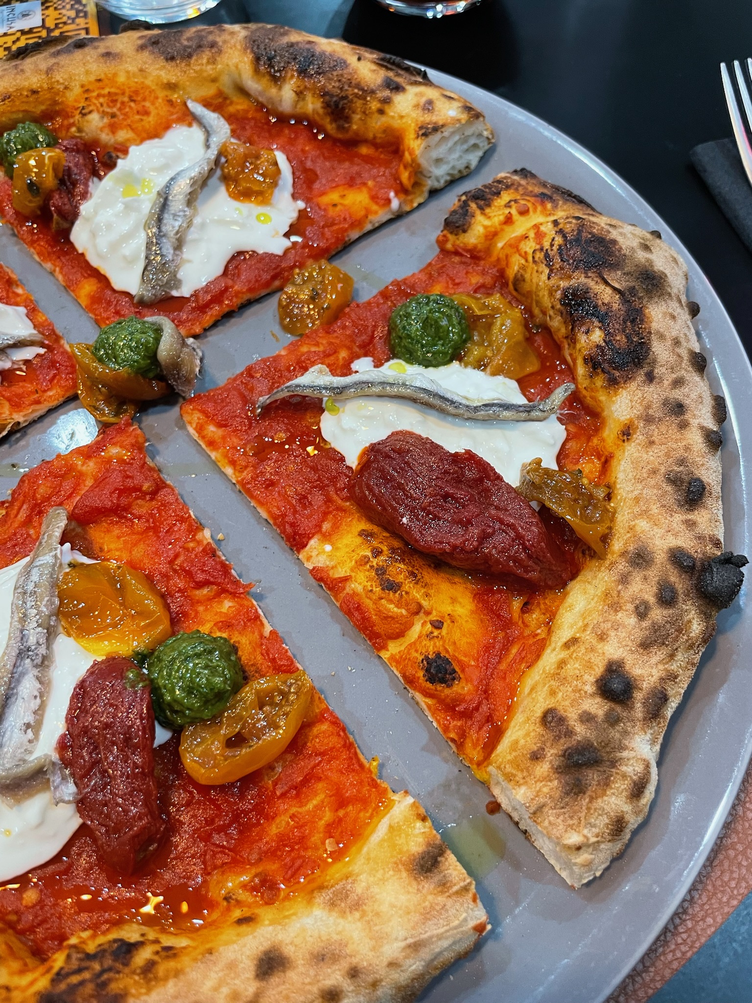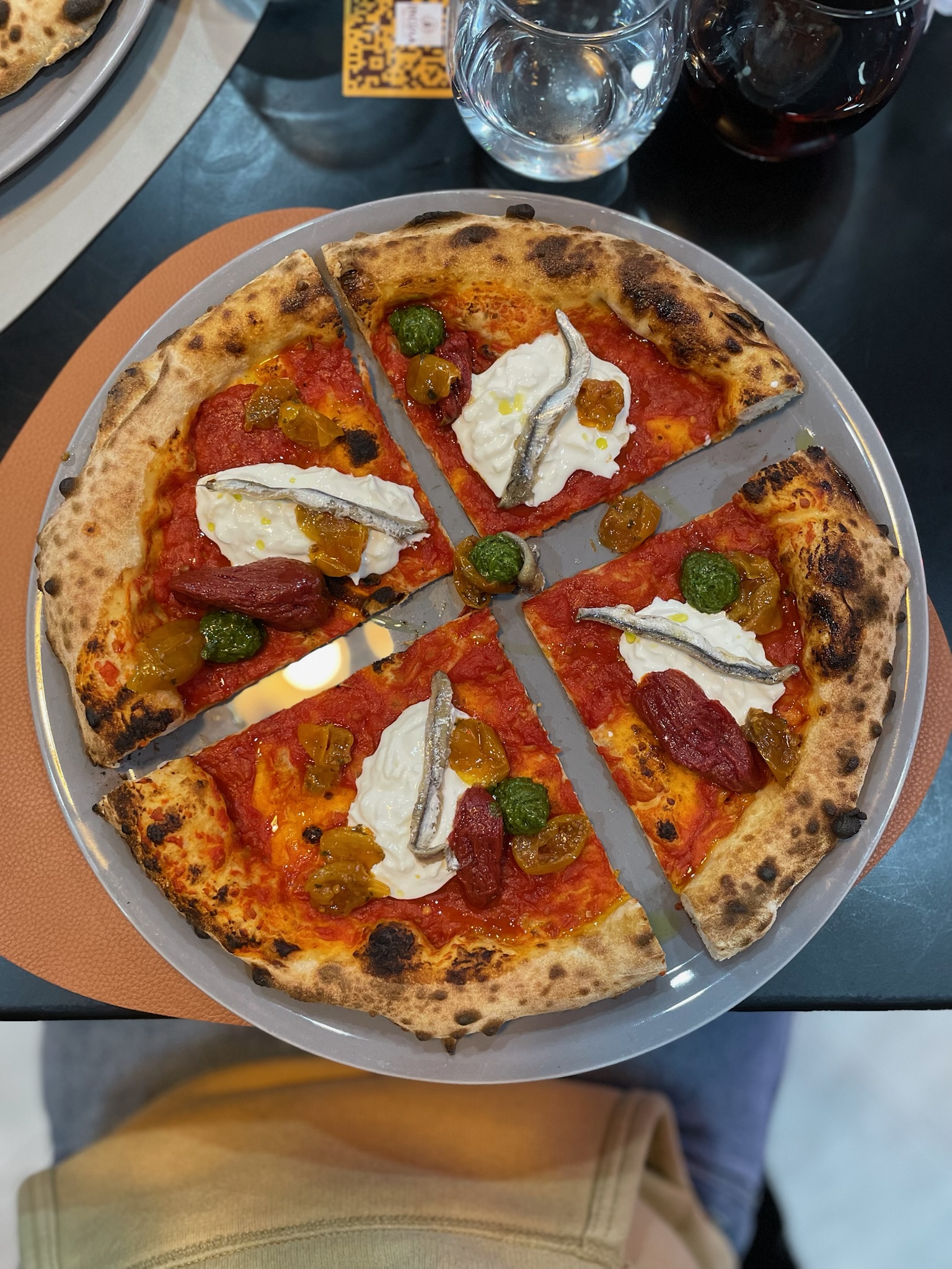 La proposta in menu si articola in antipasti, pizze classiche, stagionali e pizze innovative; tra le pizze classiche, oltre la Margherita fatta con mozzarella, pomodoro San Marzano, basilico e olio evo, c’è la Cilentana fatta con sugo di pomodorino cotto, origano, cacio ricotta di capra, basilico e olio evo; e il Ripieno fatto con mozzarella, pomodoro San Marzano, salame dolce, ricotta di bufala, pepe, basilico e olio evo. Tra le pizze innovative invece, degne di nota sono la Incusa, che porta il nome della pizzeria, fatta con focaccia, burro aromatizzato alla salvia, alici, lime e pomodorino giallo semidry; e la Donna France fatta con mozzarella, filetto di tonno, pomodorino semi dry, cipollotto in agrodolce, cenere d’olive, ravanello, erba cipollina e olio evo. Anche i fritti sono presenti, tra cui crocchè, arancini e frittatine in vari gusti.