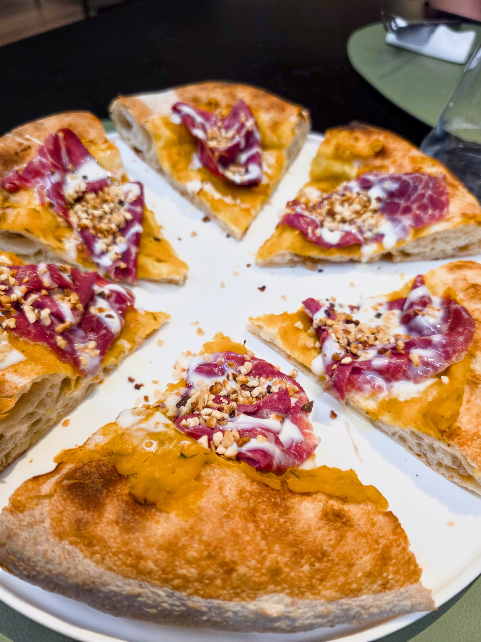 A Roseto Degli Abruzzi, non lontano dal Lungomare Roma, in Via Nazionale, si trova Quarantotto, una pizzeria giovane nata nel 2024. Il locale, dall’atmosfera elegante e innovativa, si sviluppa su due livelli e presenta un buon numero di coperti e una mise en place dei tavoli, minimale e funzionale.