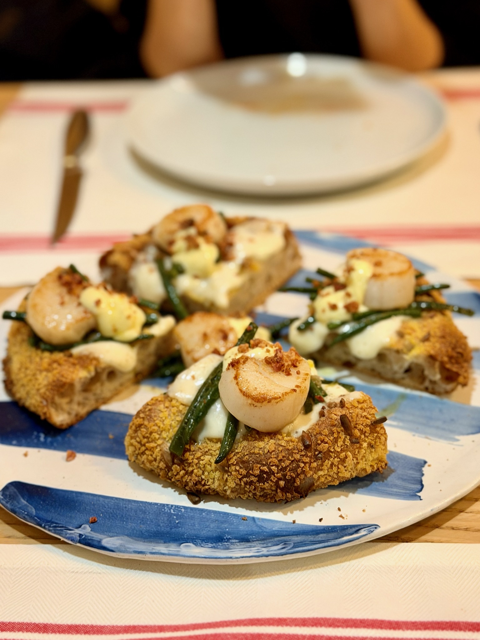 A impreziosire l’offerta ci pensano abbinamenti originali e studiati, fatti con ingredienti e materie prima di qualità sia di terra che di mare. La pizza viene vista quasi come una base da utilizzare per valorizzare i sapori, il gusto e le consistenze delle materie prime impiegate. Tra le pizze con abbinamenti classici, degna di nota è la Margherita che viene declinata in tre differenti combinazioni tra cui la Croccante fatta con pomodoro San Marzano e burrata e olio al basilico. Trovano spazio anche combinazioni peculiari come la Carbonara di Capasanta fatta con fiordilatte, fagiolini neri, zabaione salato e guanciale; e la Piccione al Forno fatta con fiordilatte, petto di piccione al forno a legna, carducci, coscia confit e fondo al campari. Per quanto riguarda la proposta dolce invece, spicca la Torta delle Rose, un lievitato realizzato partendo dalla ricetta di famiglia, servita con il gelato artigianale di produzioe propria.