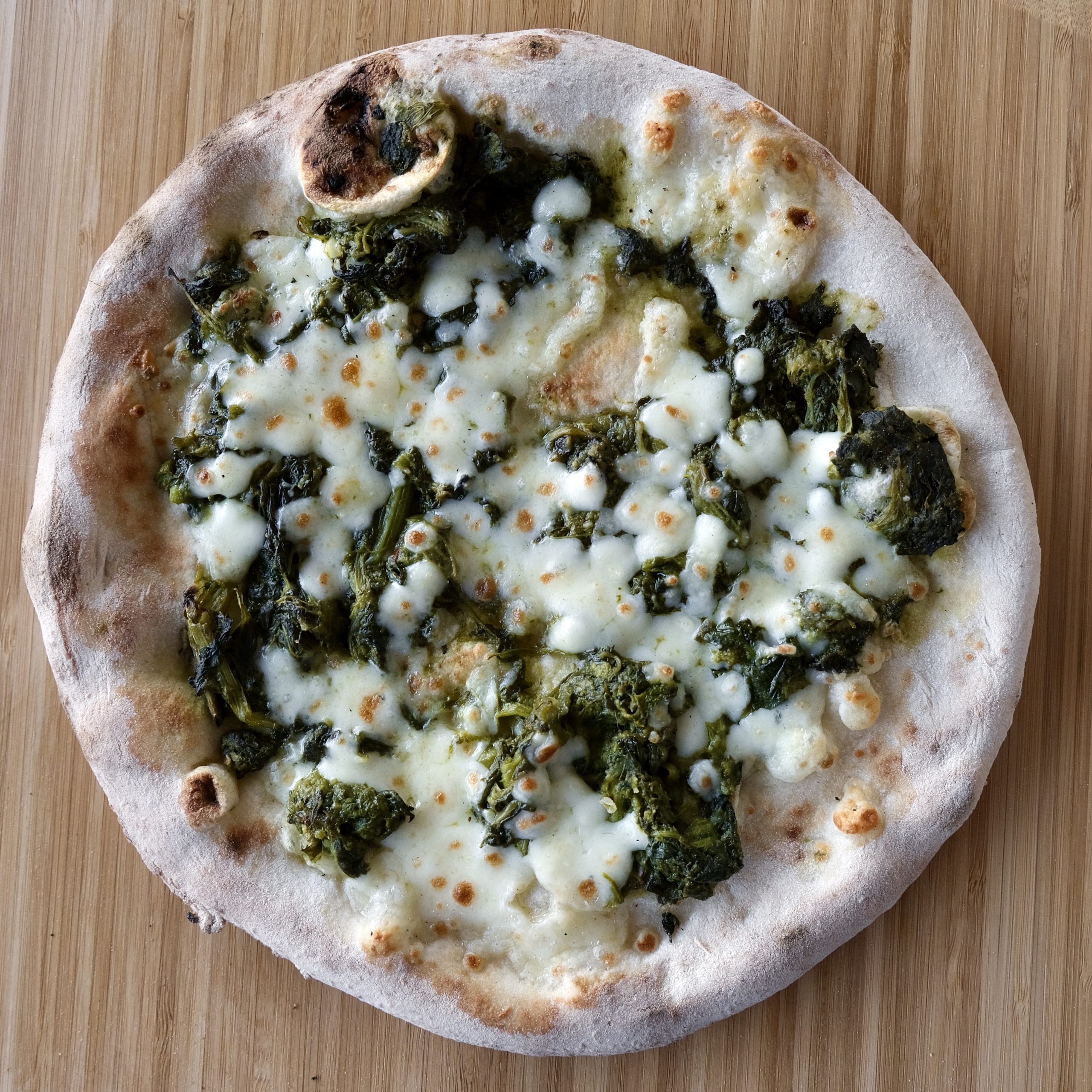 Questa è la Friariella, bianca con i friarielli (friggiarelli) napoletani: cottura standard, costo 8,30€. Il sapore è gradevole e percepibile.