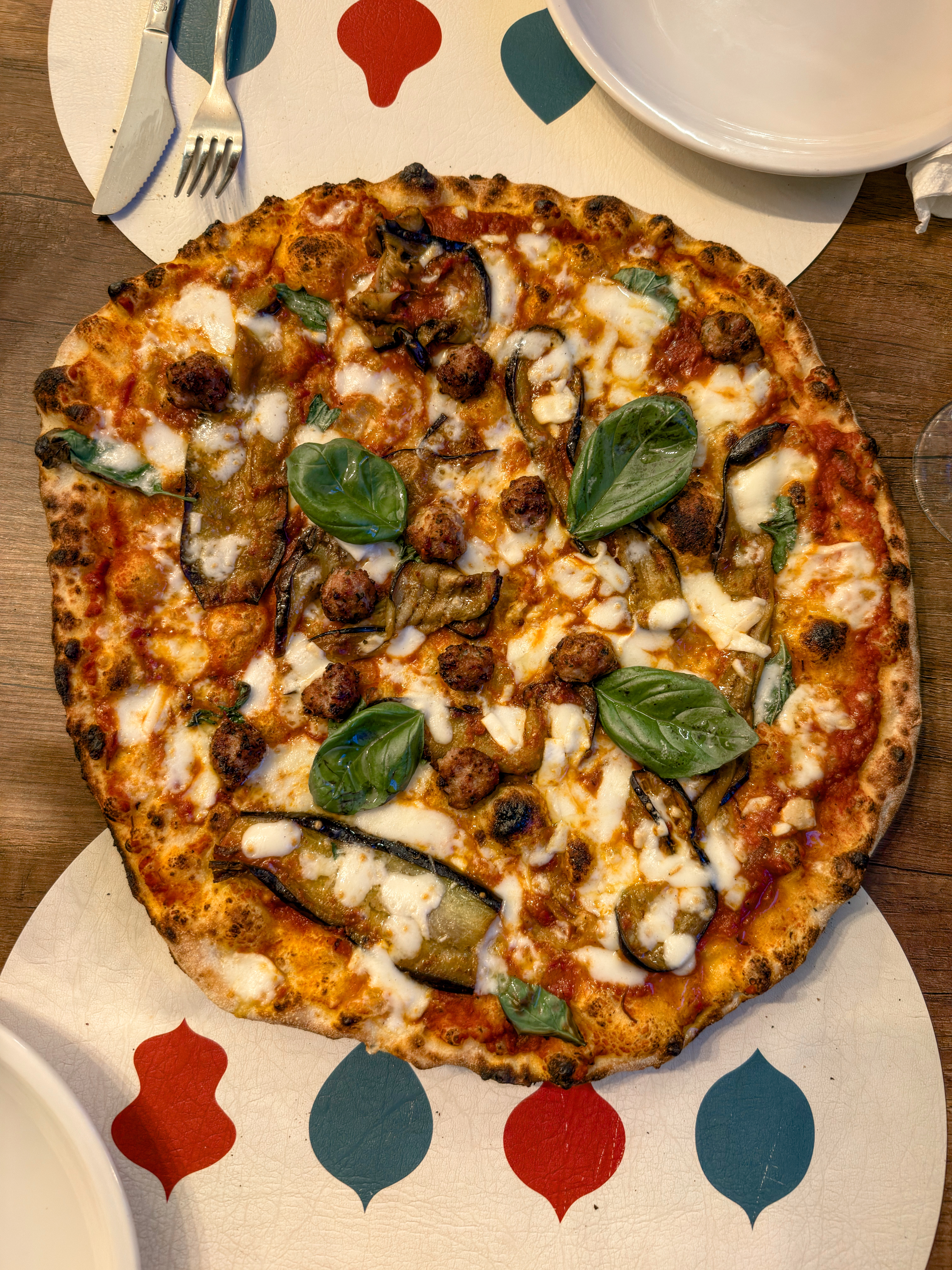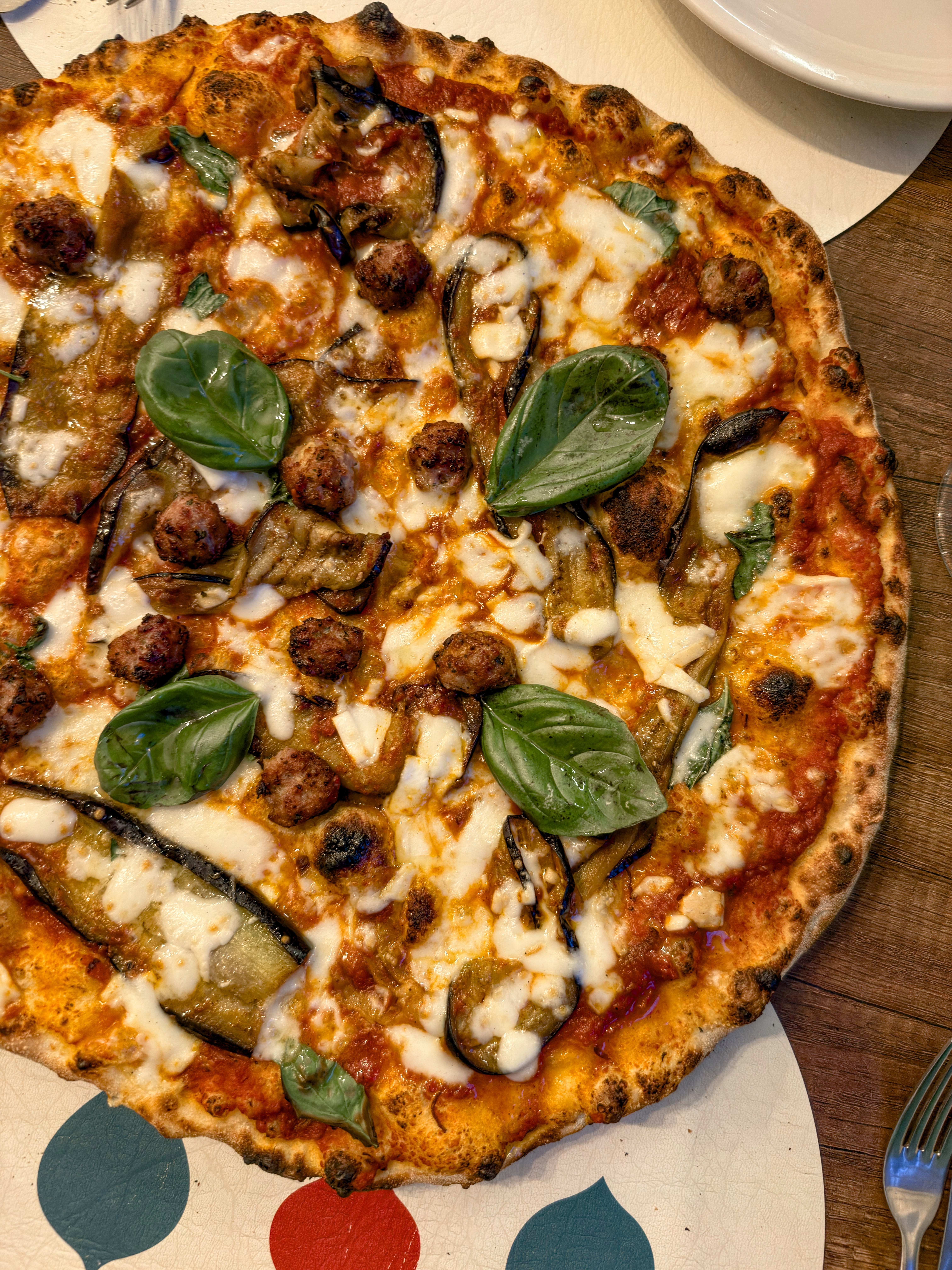 La nostra seconda scelta è virata in una delle pizze presenti nella sezione dedicata a Gaetano, la Boss delle Pizze (10€) realizzata con il ragù di Claudia, la parmigiana di melanzane, il fiordilatte campano, le polpettine di Scottona, il parmigiano reggiano 24 mesi e il basilico. Nonostante i numerosi ingredienti presenti, essendo ben distribuiti e nelle giuste quantità, la pizza risulta ben bilanciata e saporita. Il ragù, la parmigiana e le polpettine di Scottona si sentono in maniera distinta sia per il sapore che per la consistenza e si amalgamano ad ogni morso supportato da un impasto scioglievole e ben cotto.
