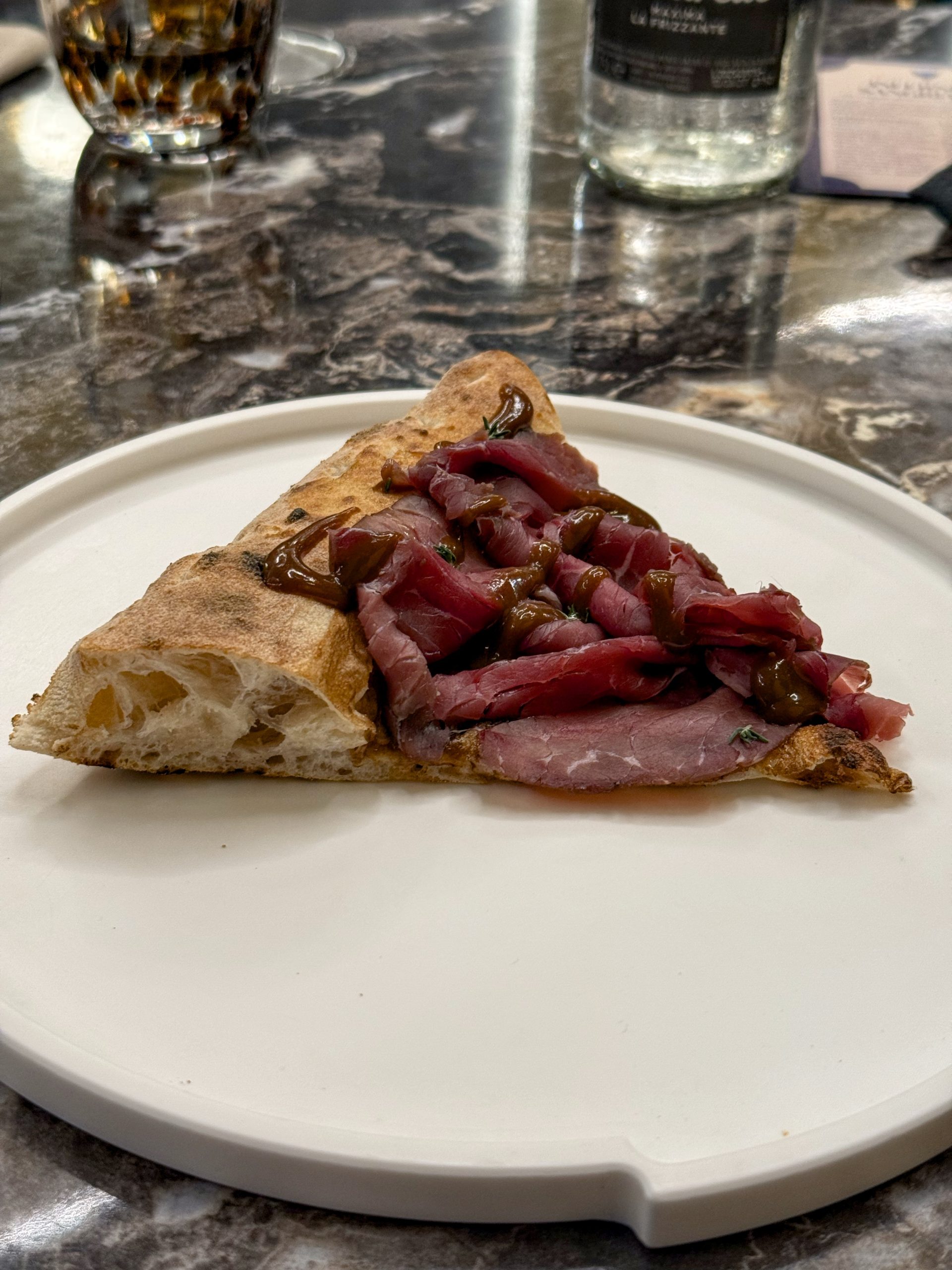 La realtà fondata da Marco Manzi, nato ad Ischia e trapiantato in Toscana da un bel po’ di anni, approfitta della sua posizione strategica per servire un gran numero di clienti senza sacrificare l’idea di offrire una pizza di qualità, come ho riscontrato, in un menu che spazia dai classici a diverse rivisitazioni e collaborazioni, qualche escursione in impasti alternativi e una proposta alcolica interessante per una pizzeria, legata soprattutto a vini e cocktail.