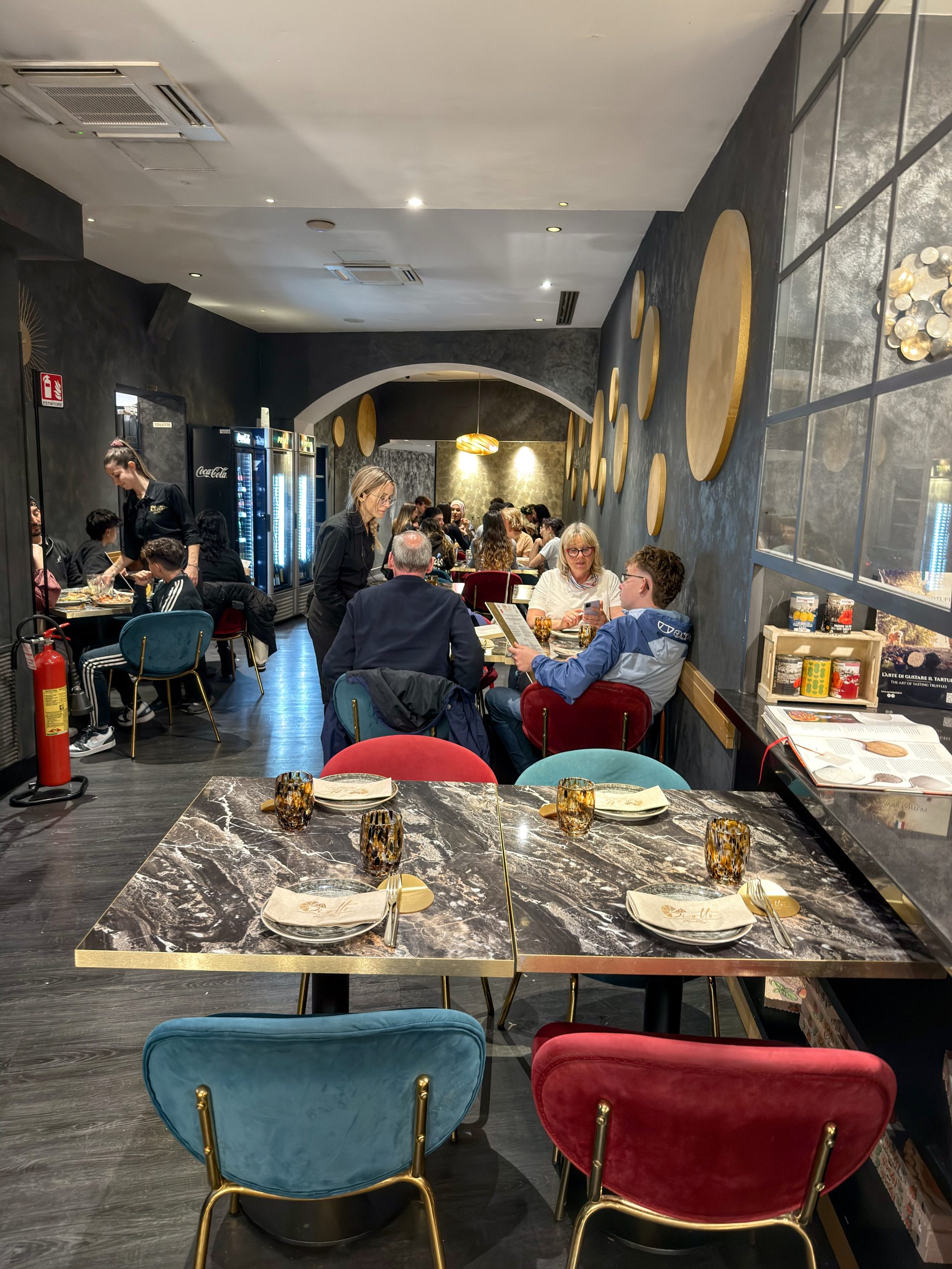 Il locale, nomen omen, rimanda ai cerchi perfetti senza compasso del pittore e architettto, restituendo linee pulite ed eleganti nelle quali si innestano due forni per la realizzazione delle pizze. La cucina si trova a parte ed è molto grande, gli spazi alternano aperture con sezioni più anguste, mentre ho trovato una rumorosità di fondo che andrebbe un po’ mitigata.
