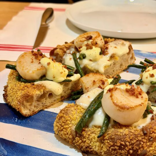 Poi la Carbonara di Capasanta (29€-48€), realizzata con fior di latte, fagiolini neri, zabaione salato e guanciale, saliamo di giri prepotentemente. L’impasto con mais dona una croccantezza ancora più goduriosa, sorretta dalla stessa eccellente struttura che sorregge un abbinamento sorprendente per intensità, qualità degli ingredienti e capacità di abbracciare tutti i ricettori del palato. Eccezionale.