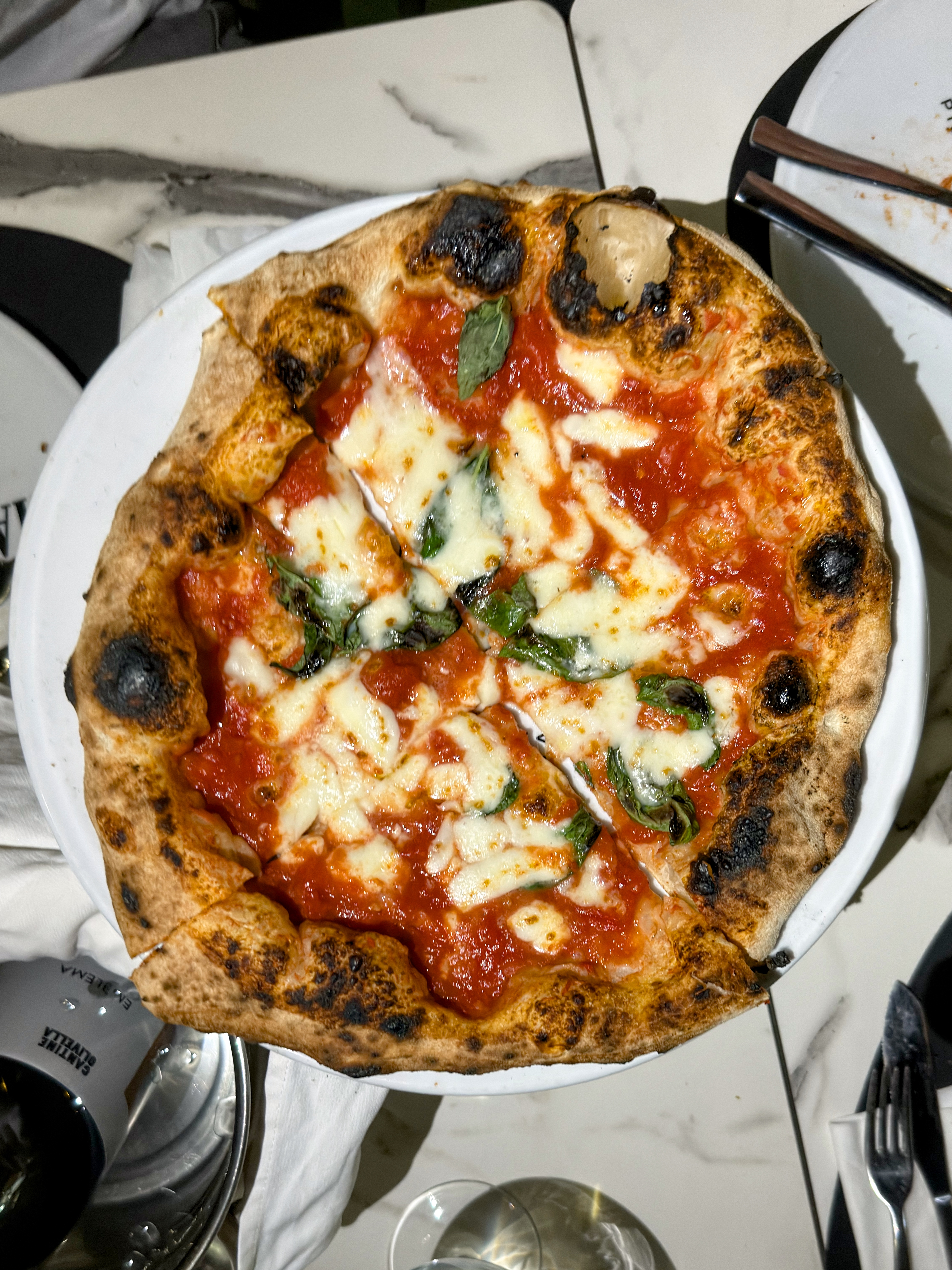E ancora, la Ciummo – 12.50€ per peperoncini verdi saltati con pomodorino rosso, salsiccia, provola, caciocavallo all’uscita – e infine l’immancabile Margherita, realizzata per 7€ con pomodoro San Marzano Dop, fior di latte, basilico, olio di Caiazzo.