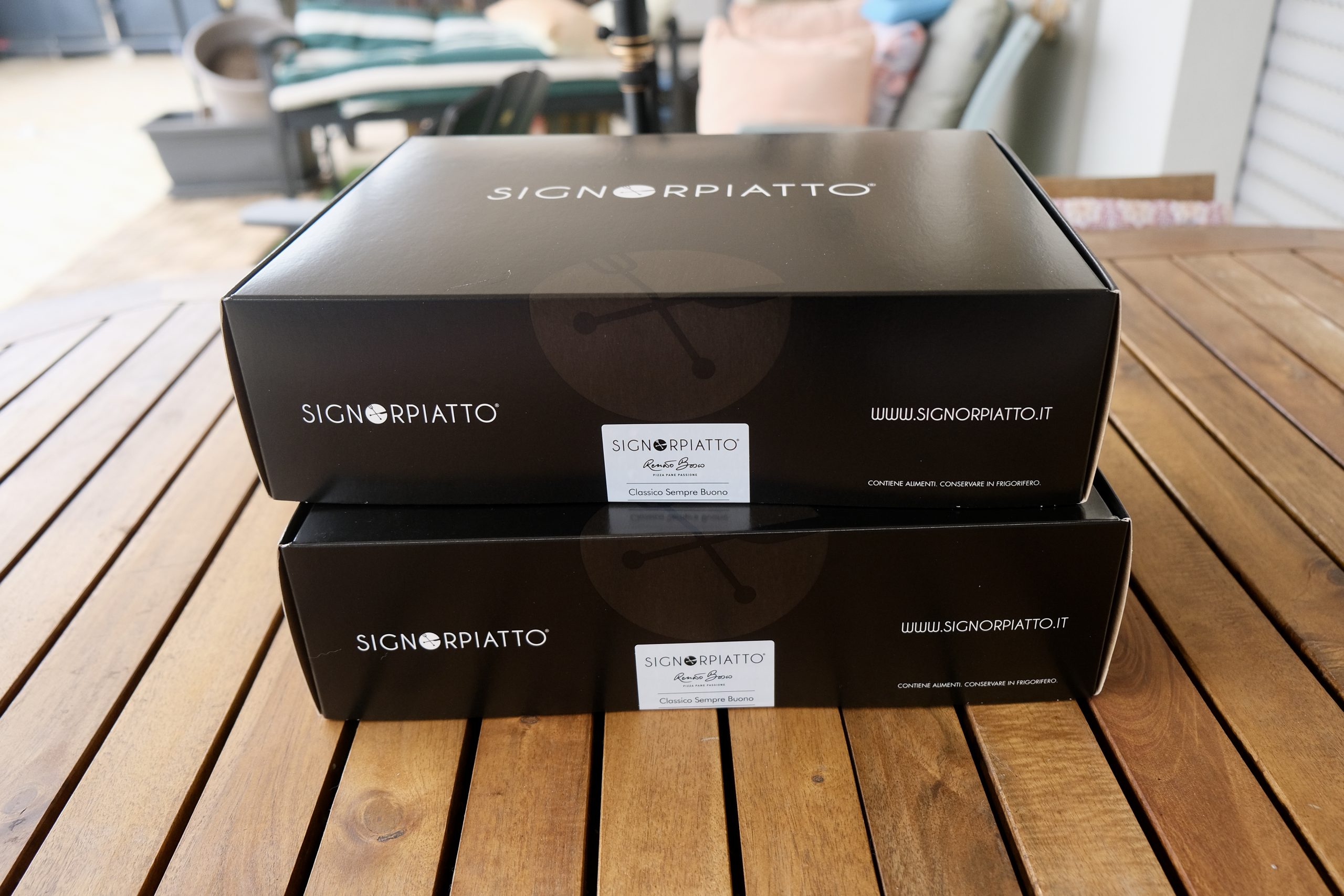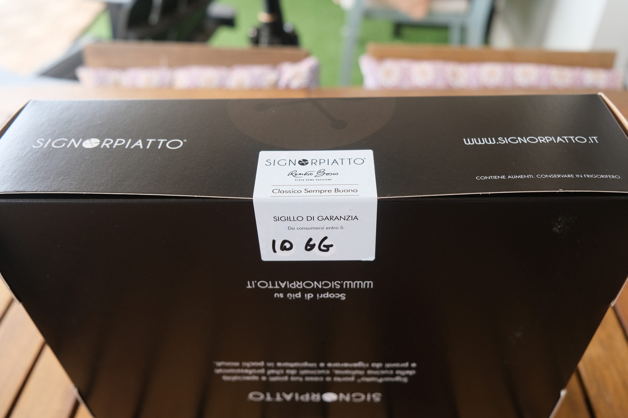 Grazie alla collaborazione con l’azienda veneta SignorPiatto, oggi è possibile ordinare in tre Pizza Box differenti, le cui basi vanno rigenerate nel forno e gli ingredienti assemblati in cottura e in uscita, con un procedimento non molto dissimile da quello che avviene in pizzeria.