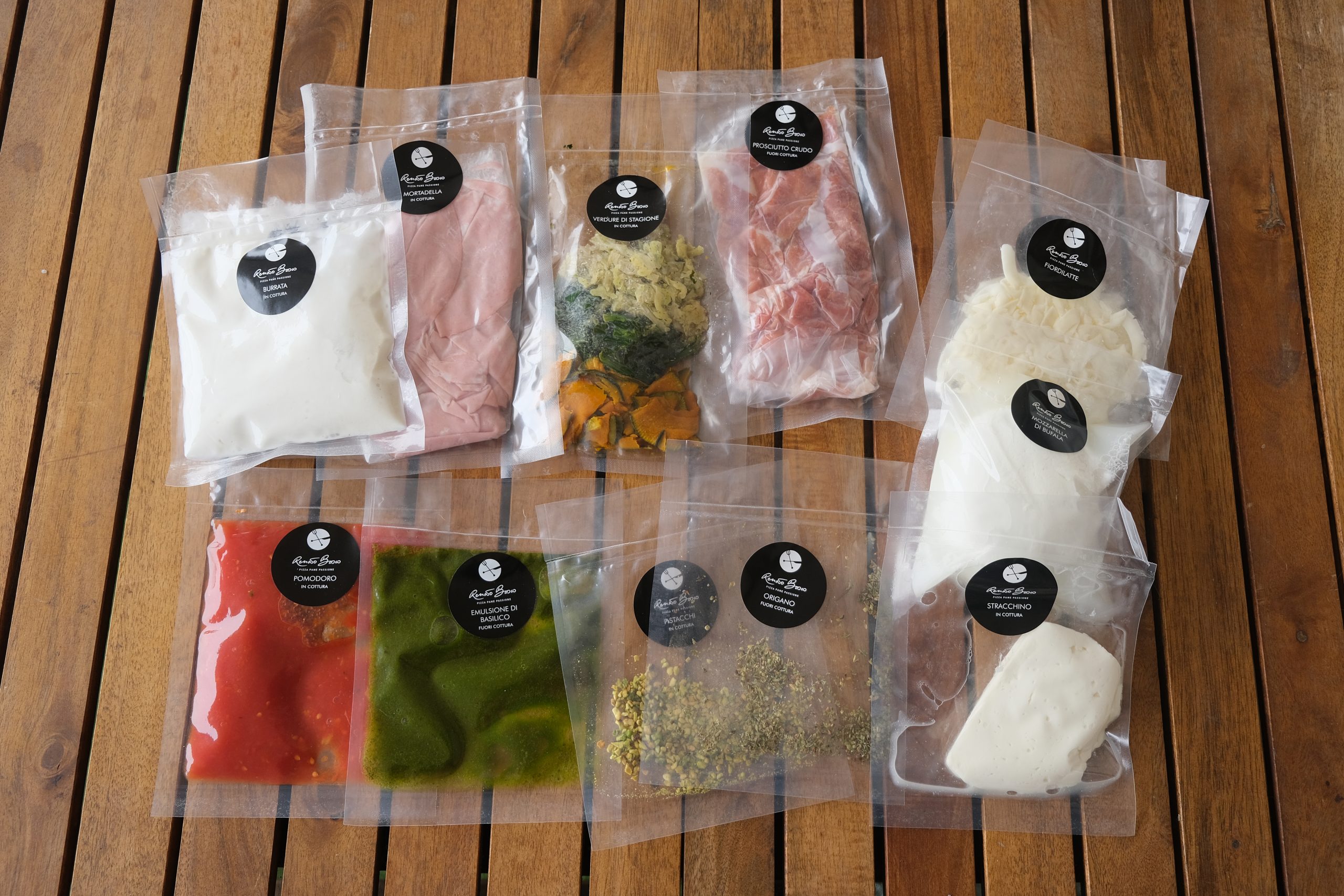 Anche gli ingredienti, freschi all’origine, sono sigillati sottovuoto singolarmente. La scadenza, indicata dall’apposito sigillo, è di 10 giorni, la conservazione deve avvenire in frigo.