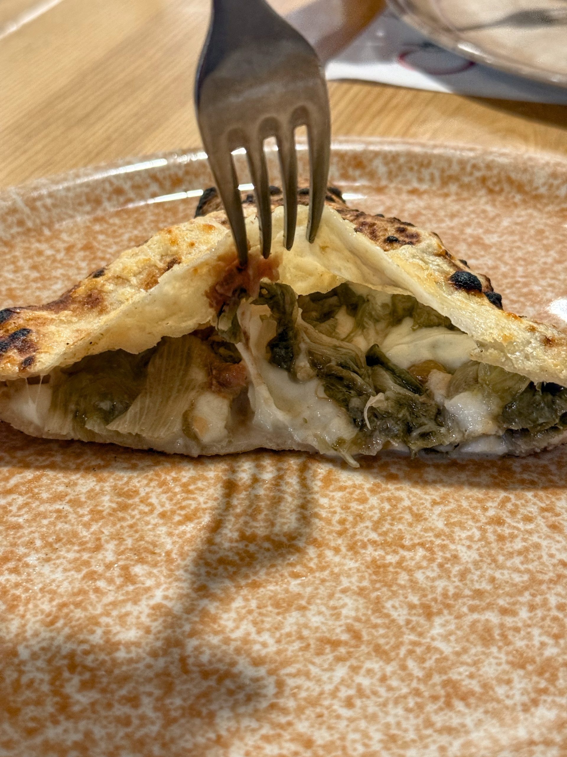 Il secondo giro è stato dedicato al Calzone Maritato, che per 10€ si tratta di un ripieno con provola di Agerola, scarola, acciughe del Mar Cantabrico, capperi di Pantelleria, olive nere aitane e crosta di Parmigiano Reggiano24 mesi vacca frisona.