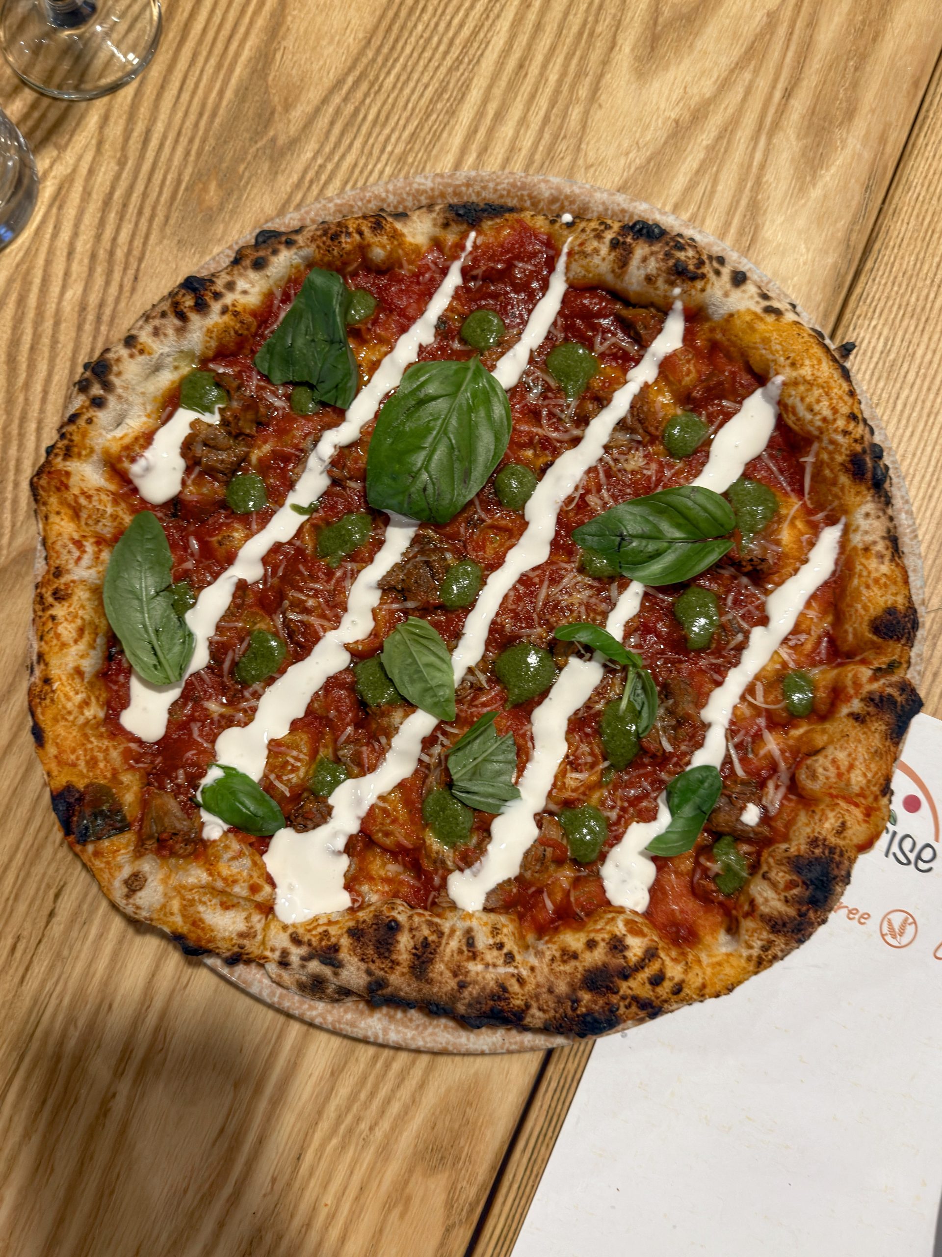 L’ultimo assaggio di pizza è stato dedicato alla Margherita Senza Glutine con mozzarella vegana (9€ + 3€ per la mozzarella), realizzata con tutti i crismi del caso per quanto riguarda la parte tecnica, ma meno impressionante come sapore e masticazione in relazione ad altre pizze senza glutine che ho mangiato in tempi recenti